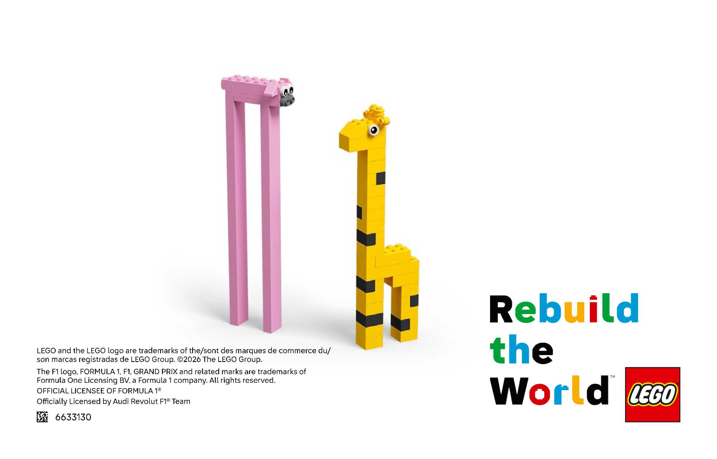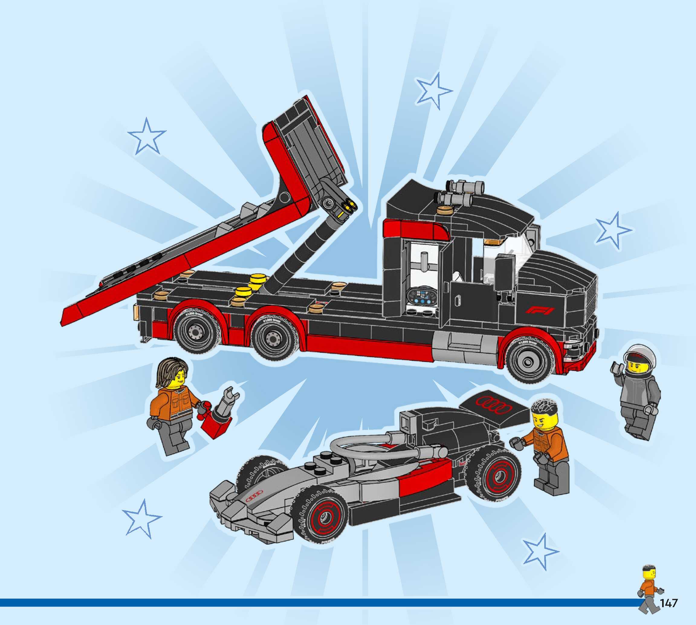 On this page you can find the original construction manual for the LEGO 60493 set. With the assembly manual you can easily learn how to build the F1® Display Truck with Audi F1® Race Car step by step. The set was released in 2026.