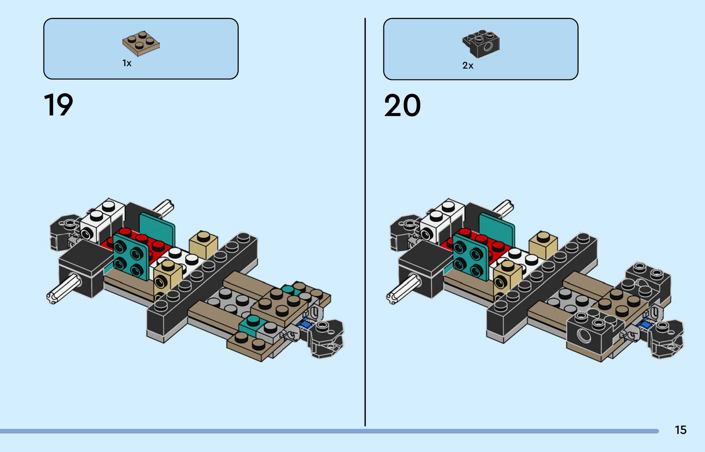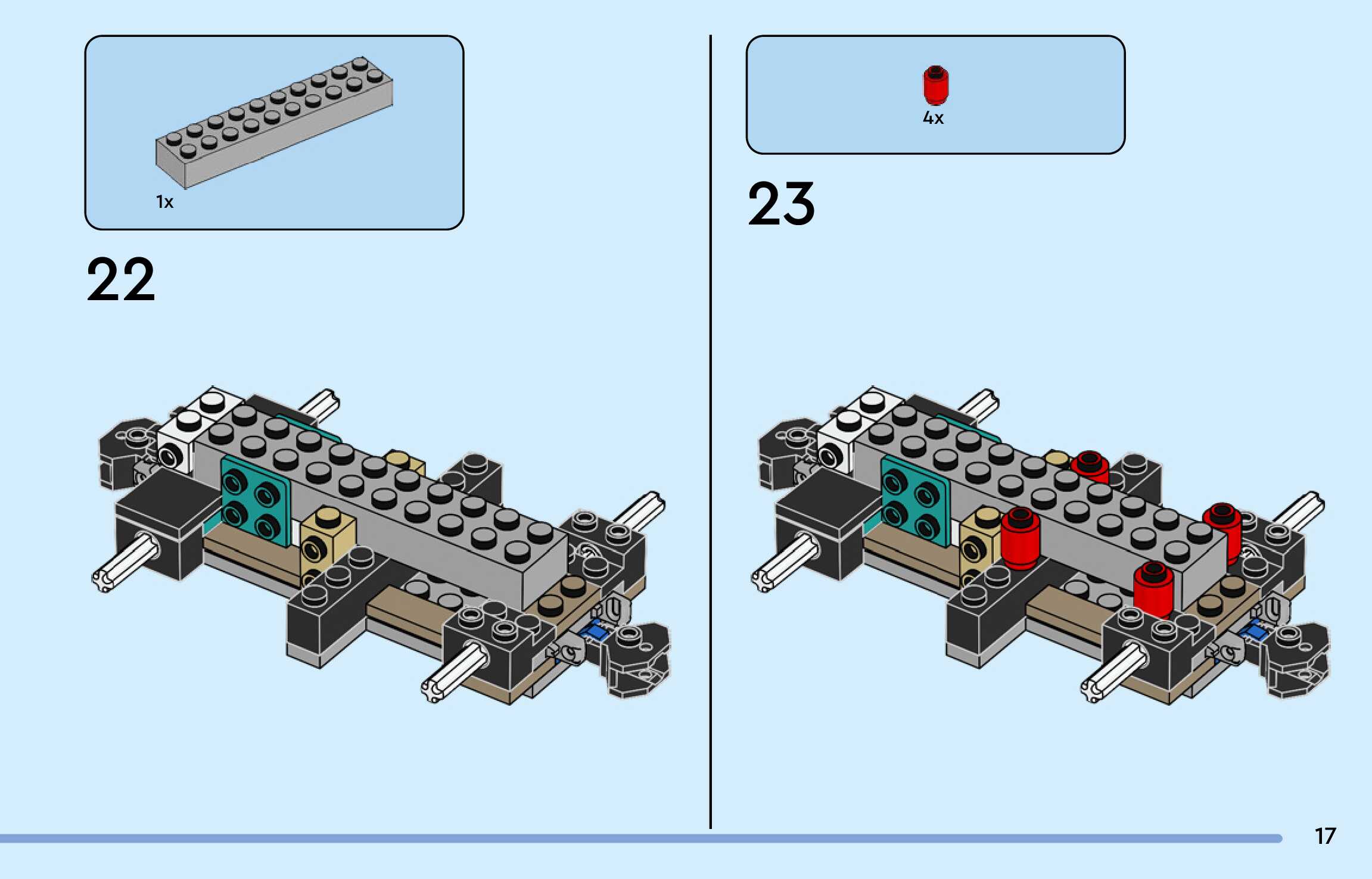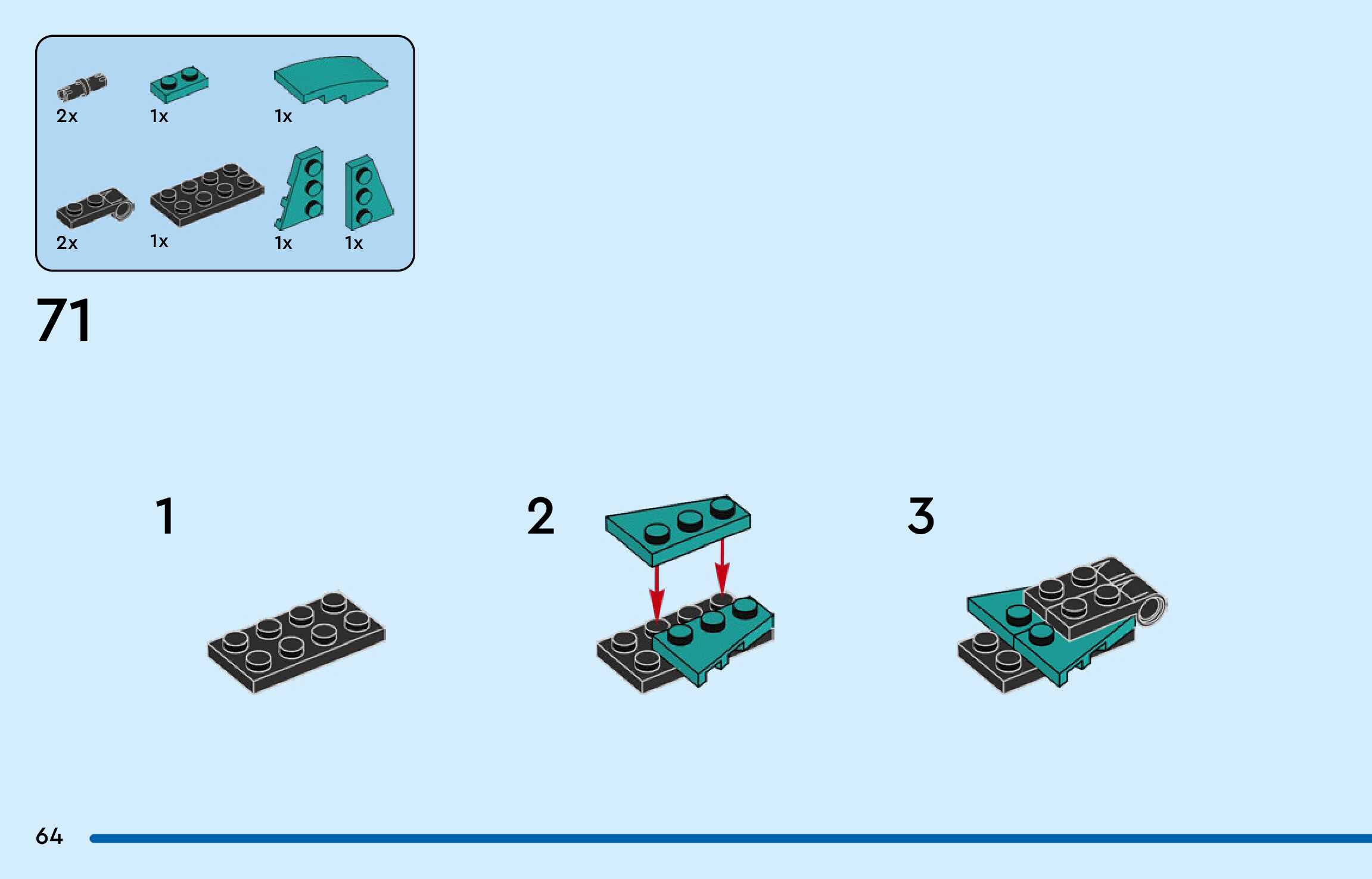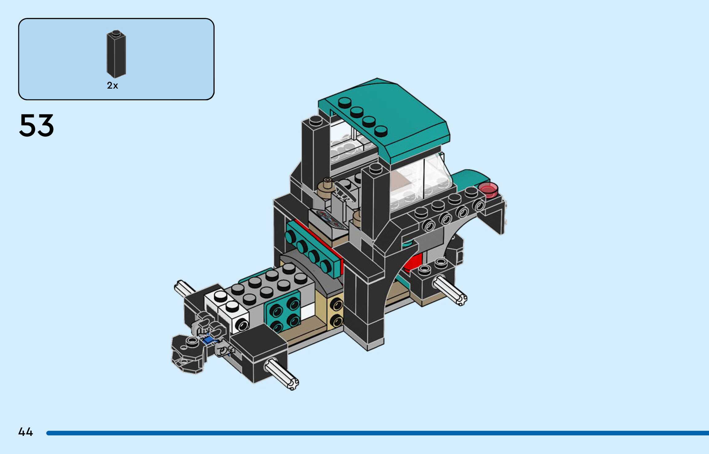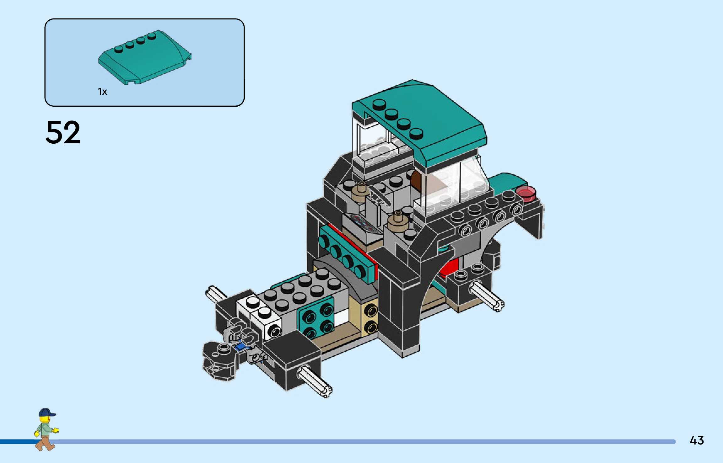 The assembly guide is prepared in a very understandable way for children and adult LEGO enthusiasts. A total of 84 picture galleries are shown, explaining the step-by-step construction stages for 1 different structures.