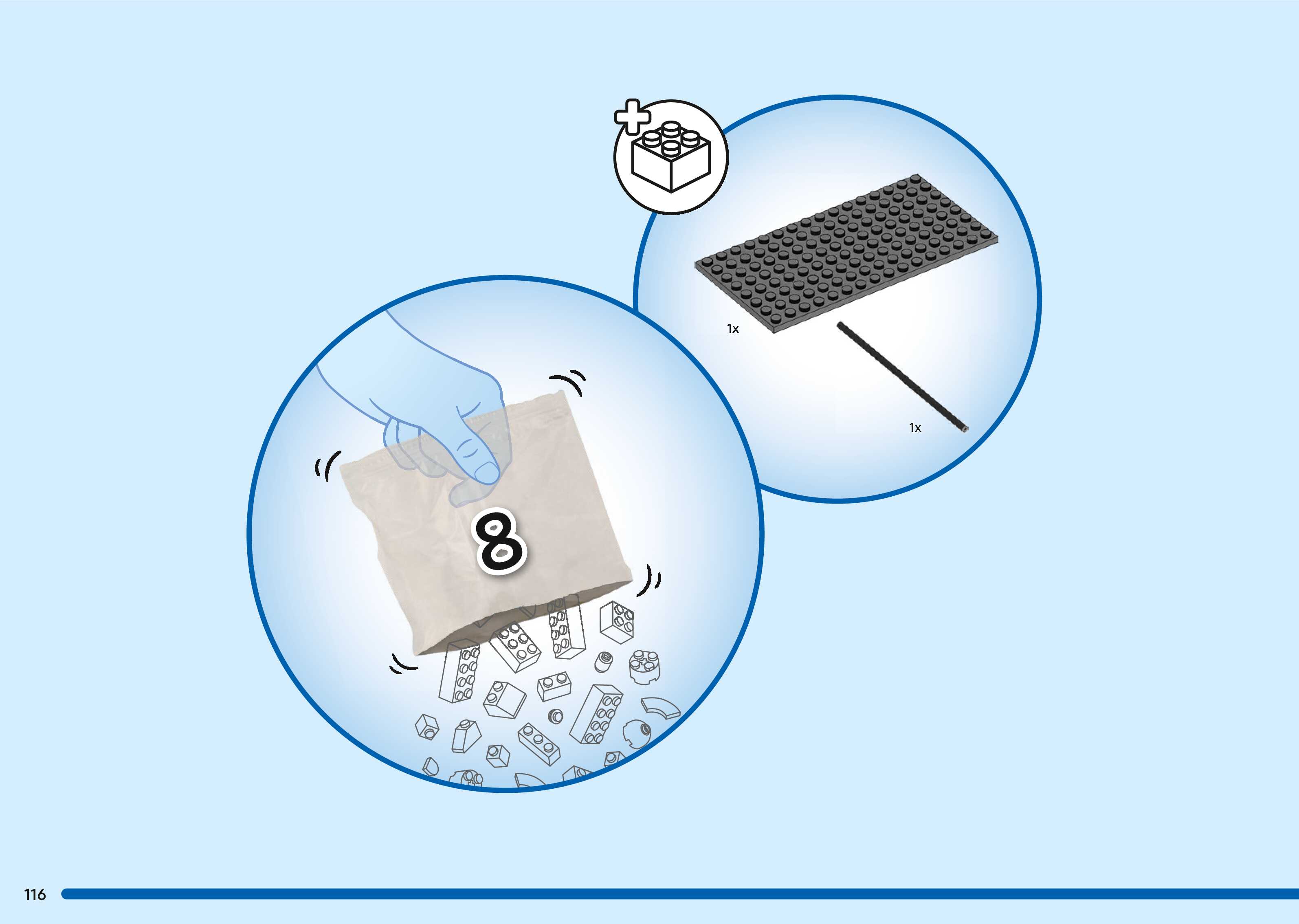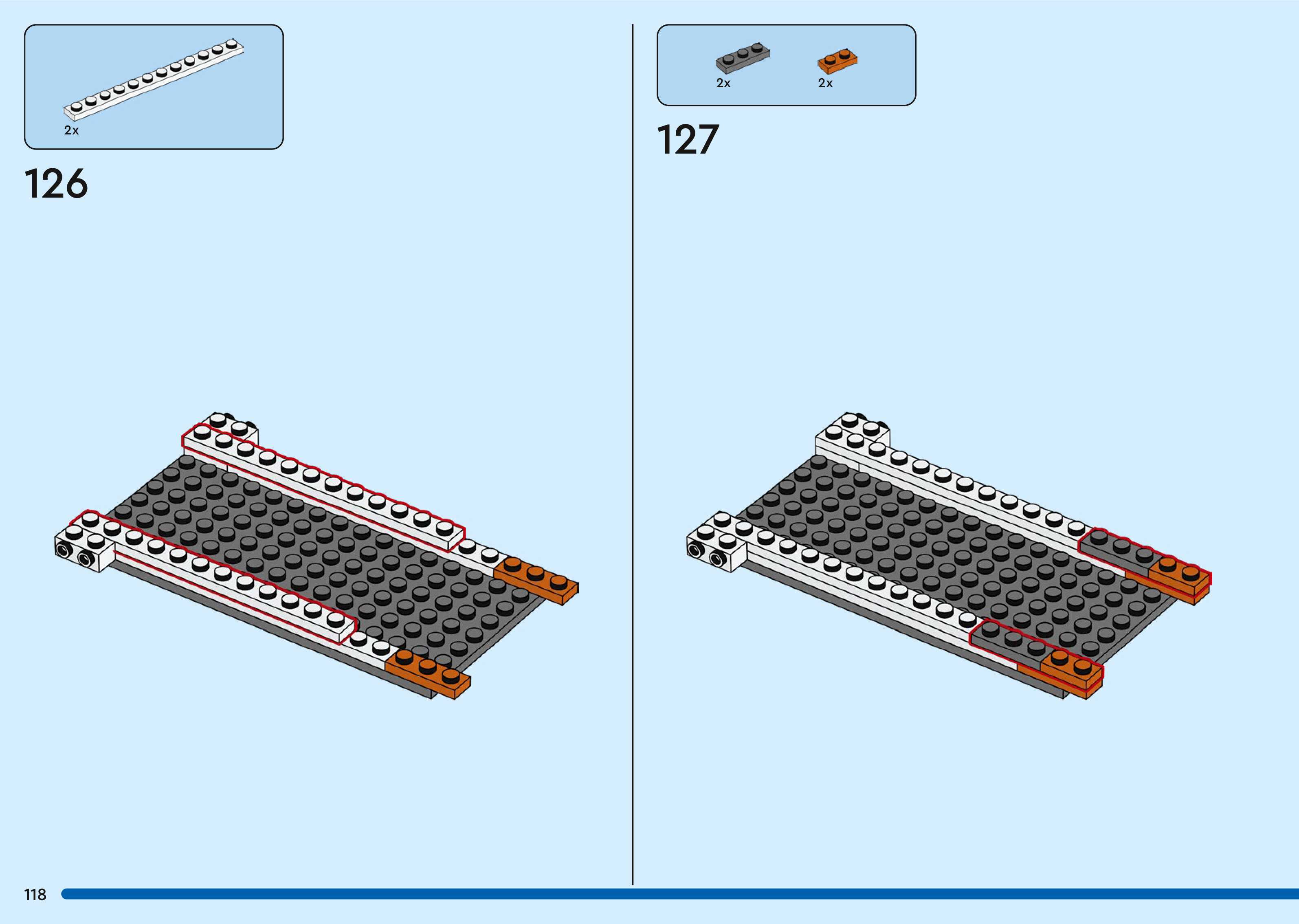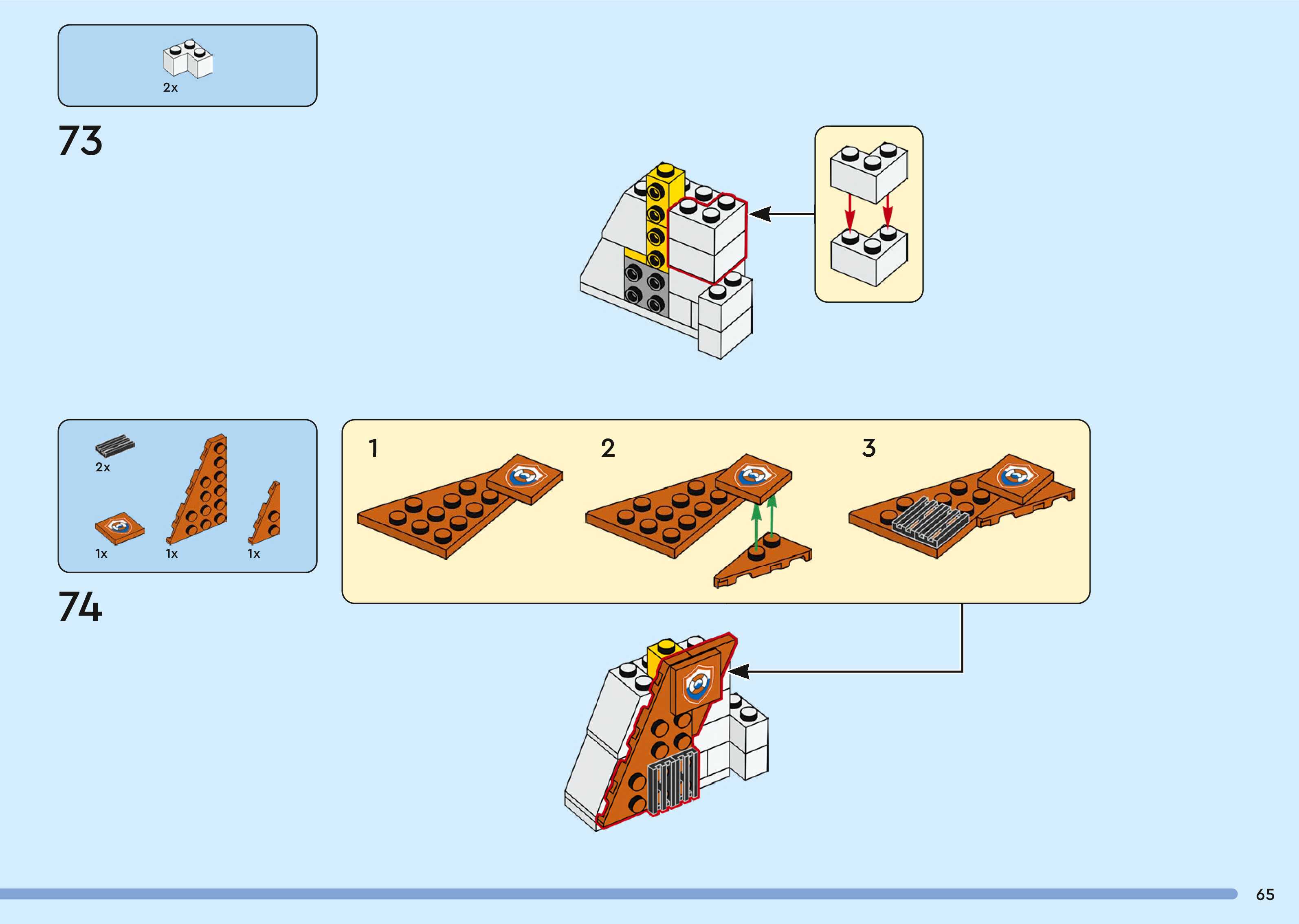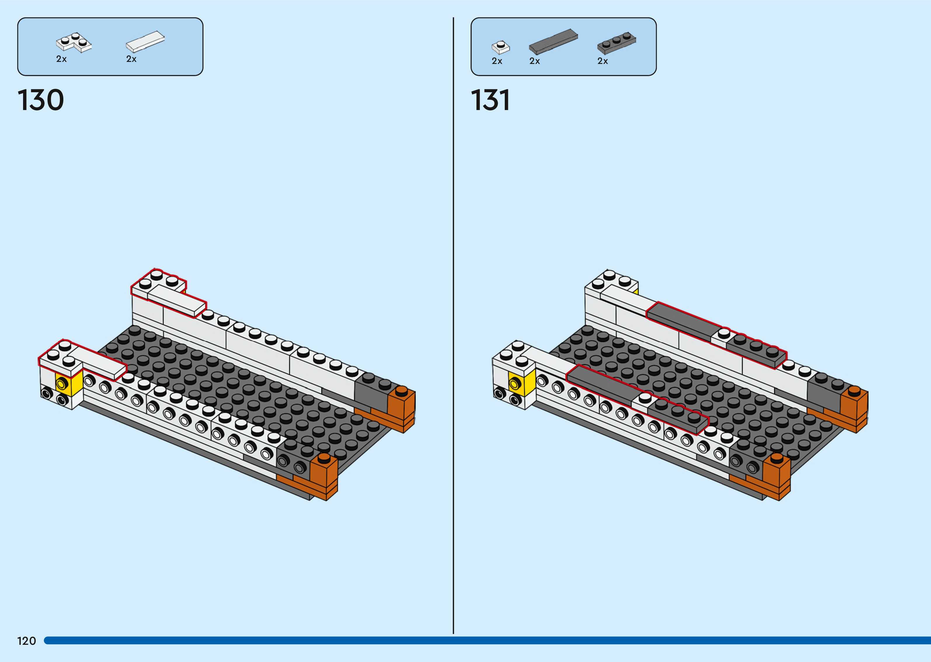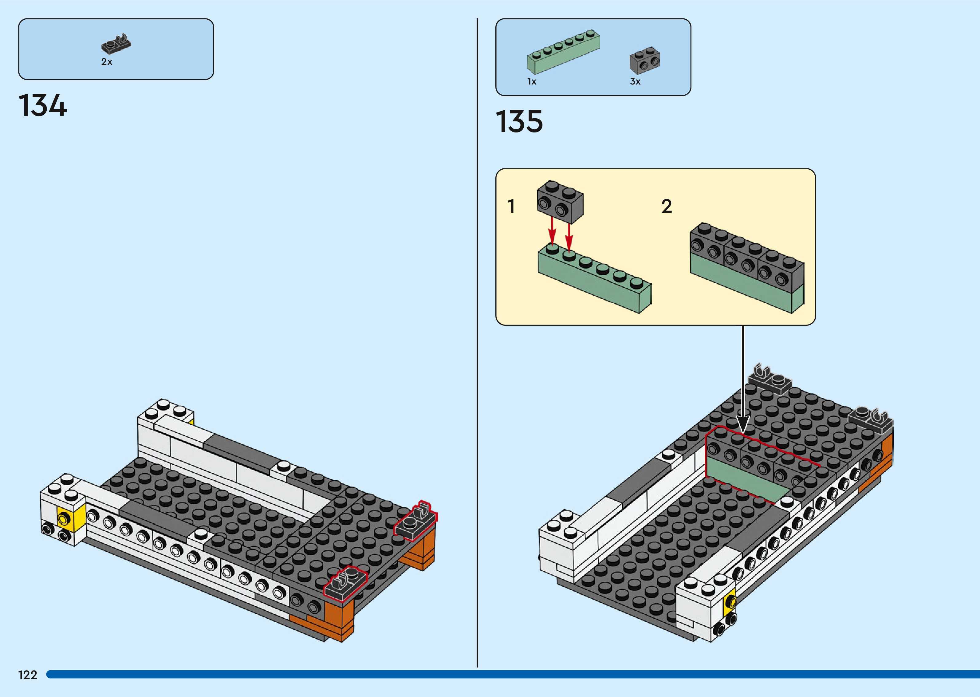 The assembly guide is prepared in a very understandable way for children and adult LEGO enthusiasts. A total of 216 picture galleries are shown, explaining the step-by-step construction stages for 2 different structures.