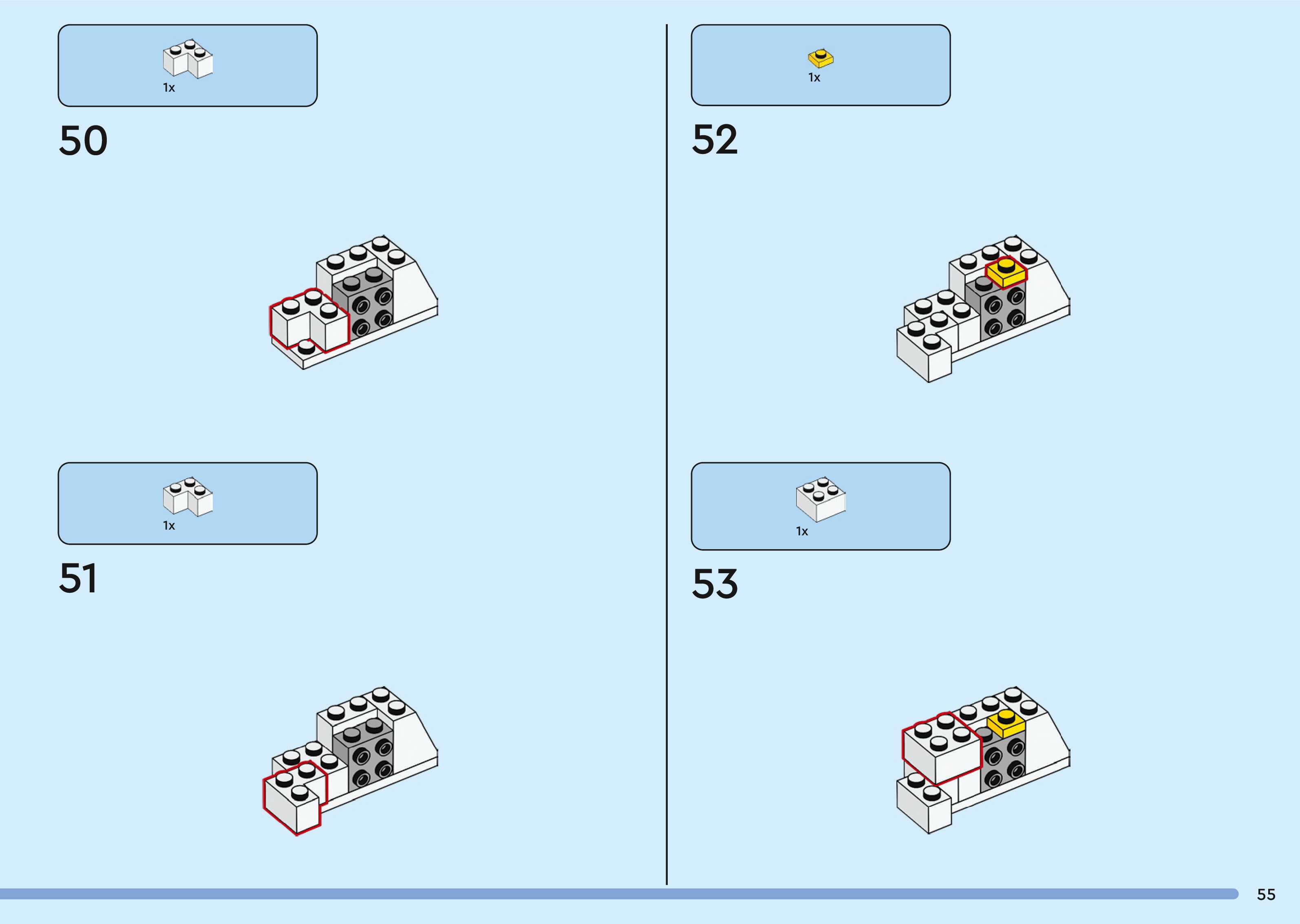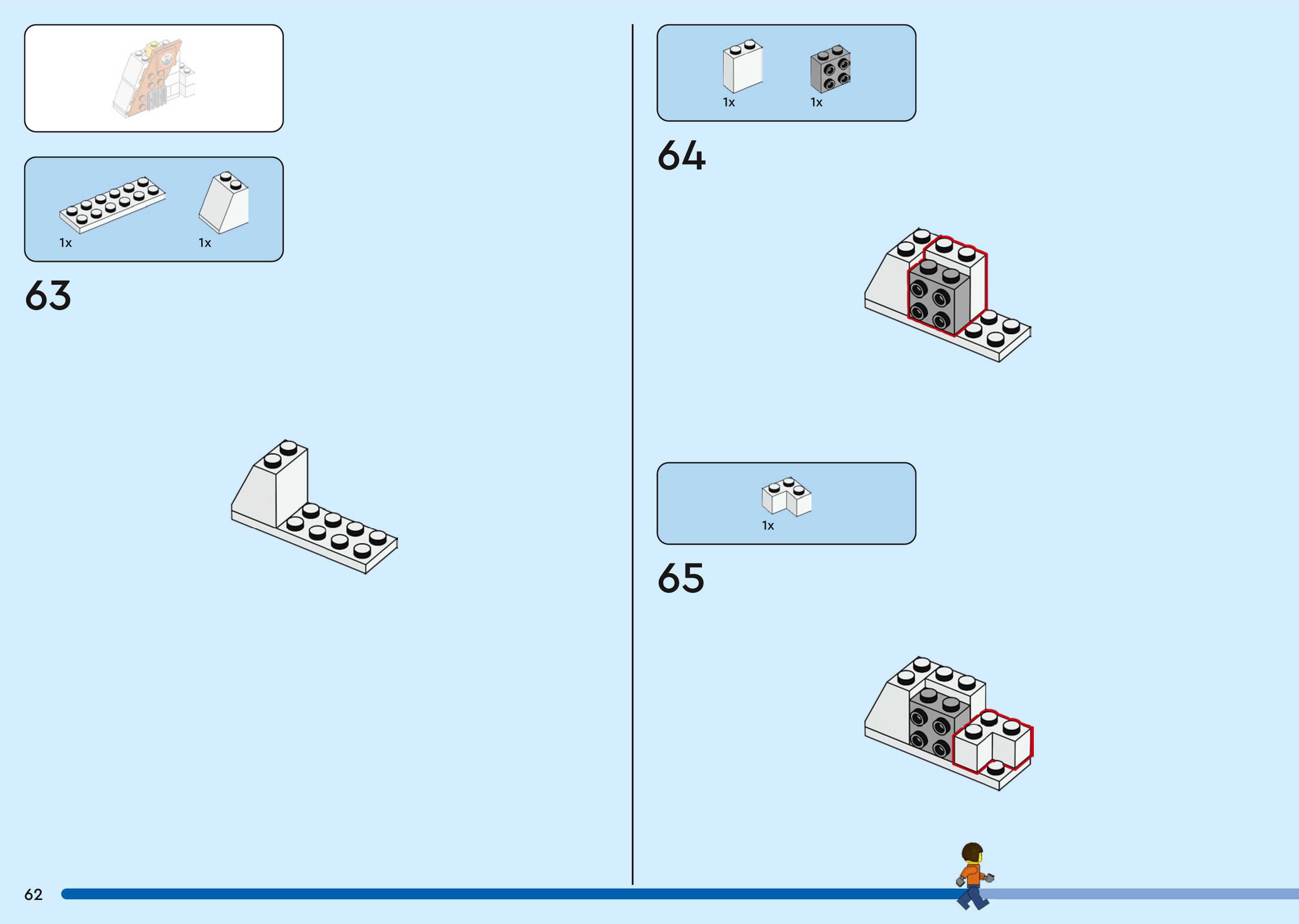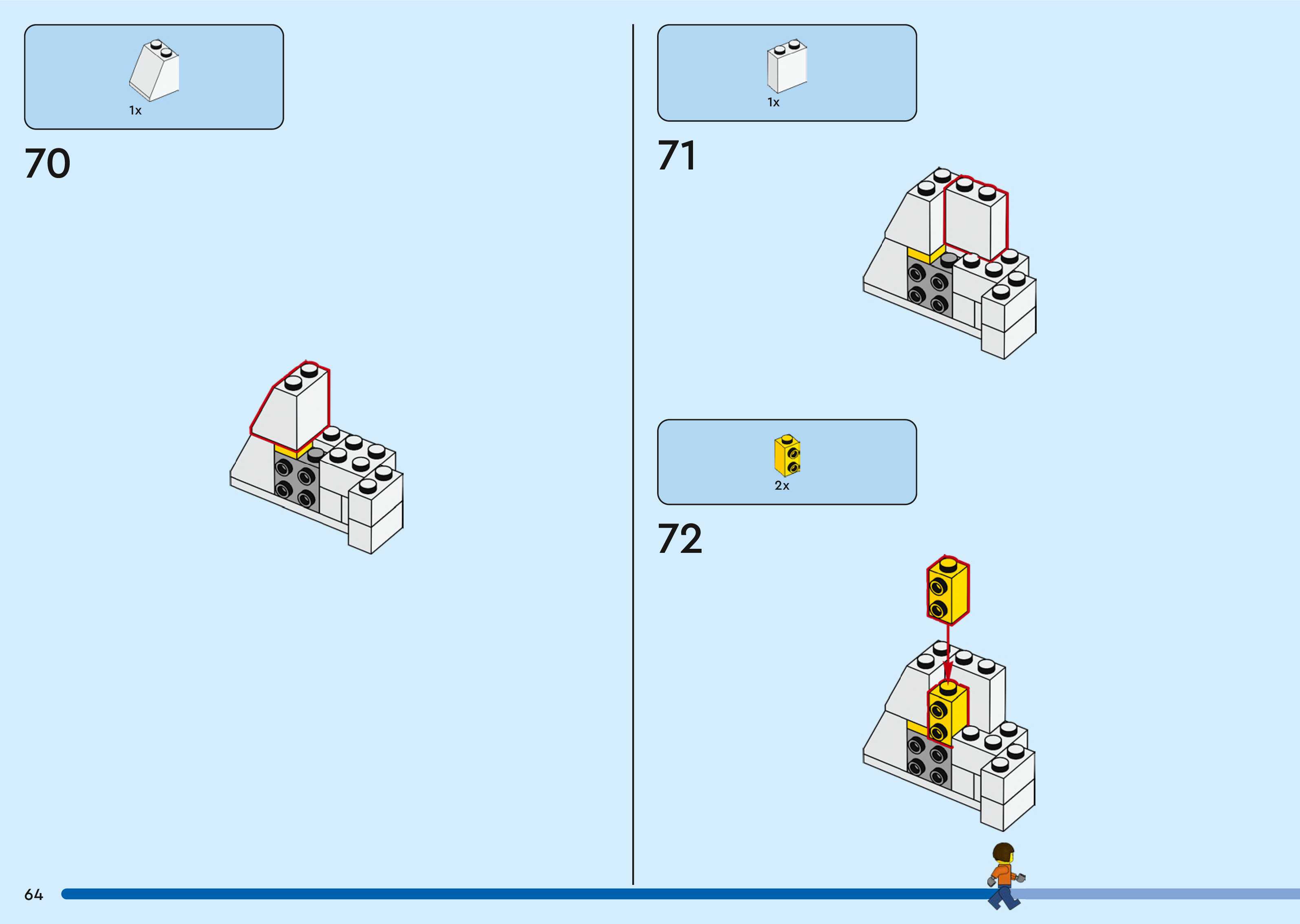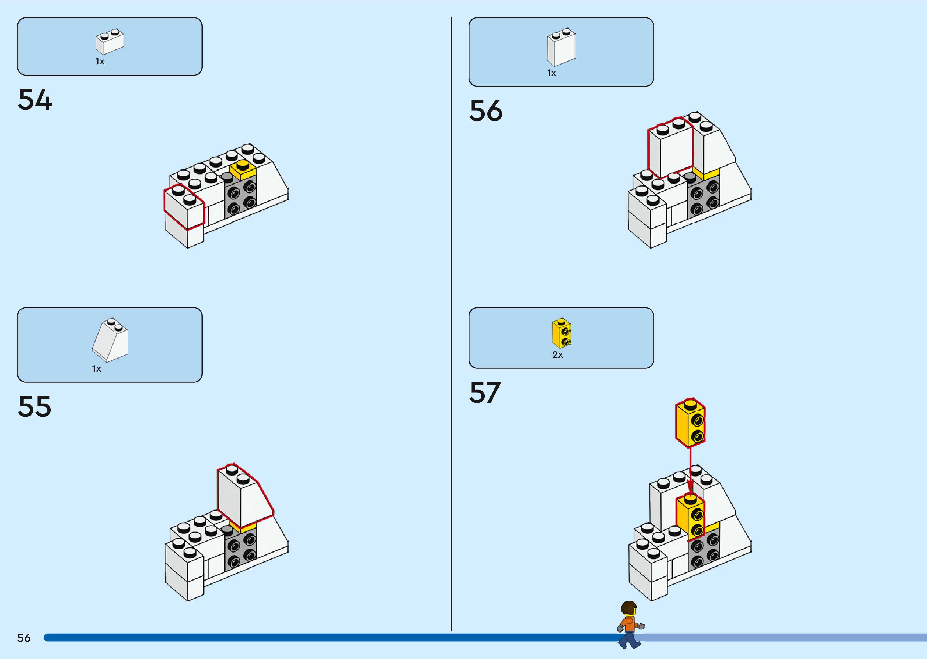 The assembly guide is prepared in a very understandable way for children and adult LEGO enthusiasts. A total of 216 picture galleries are shown, explaining the step-by-step construction stages for 2 different structures.