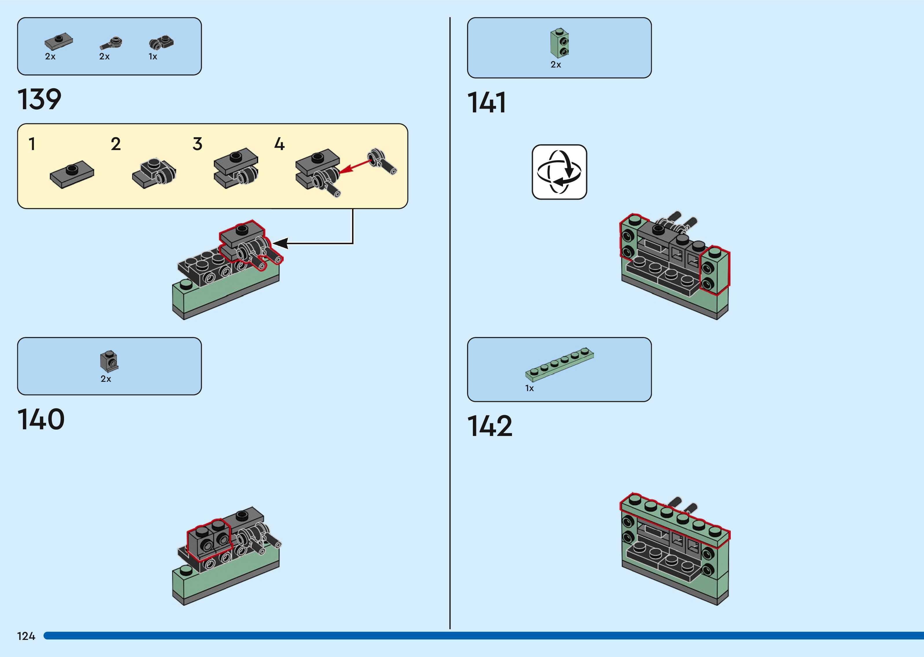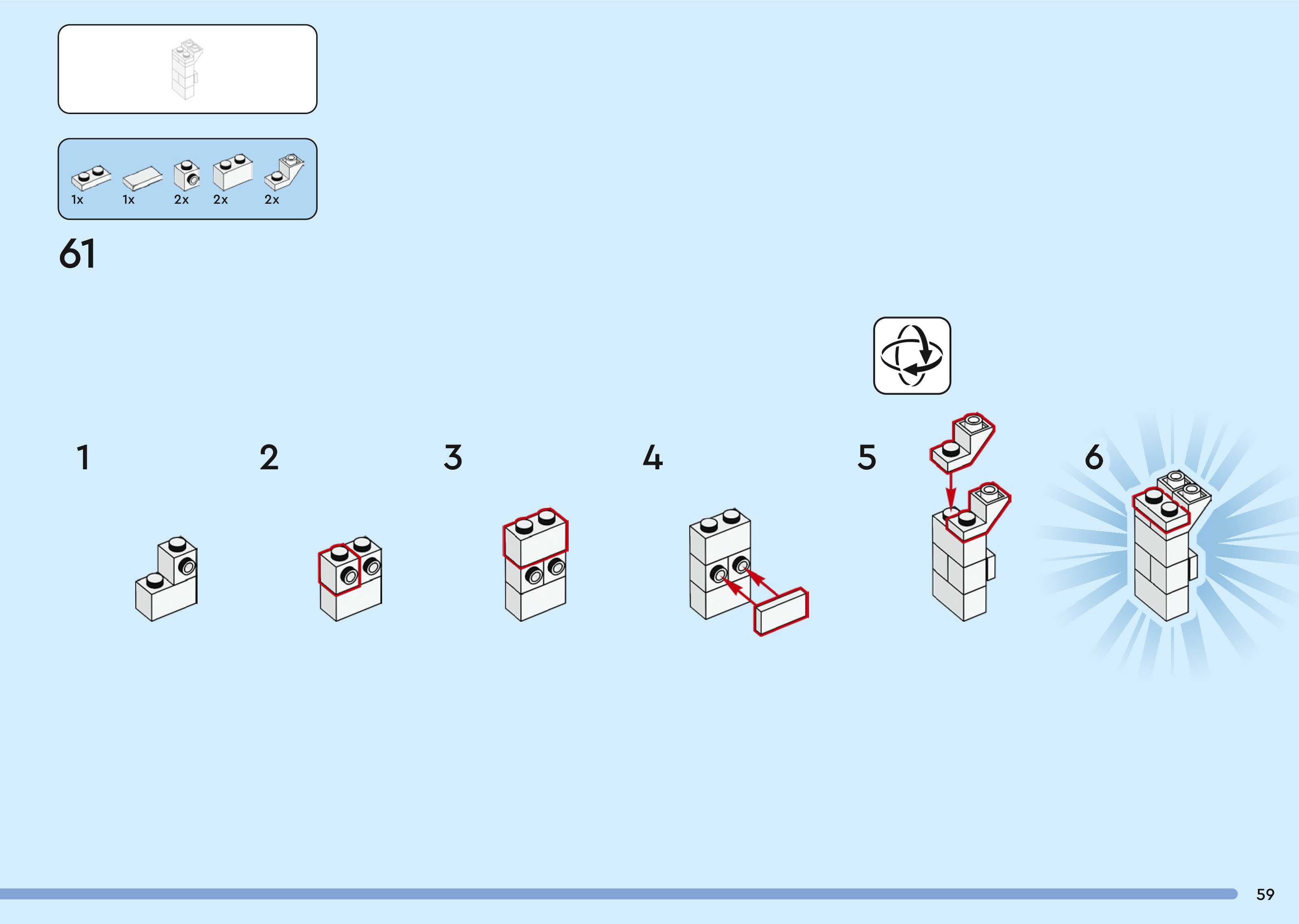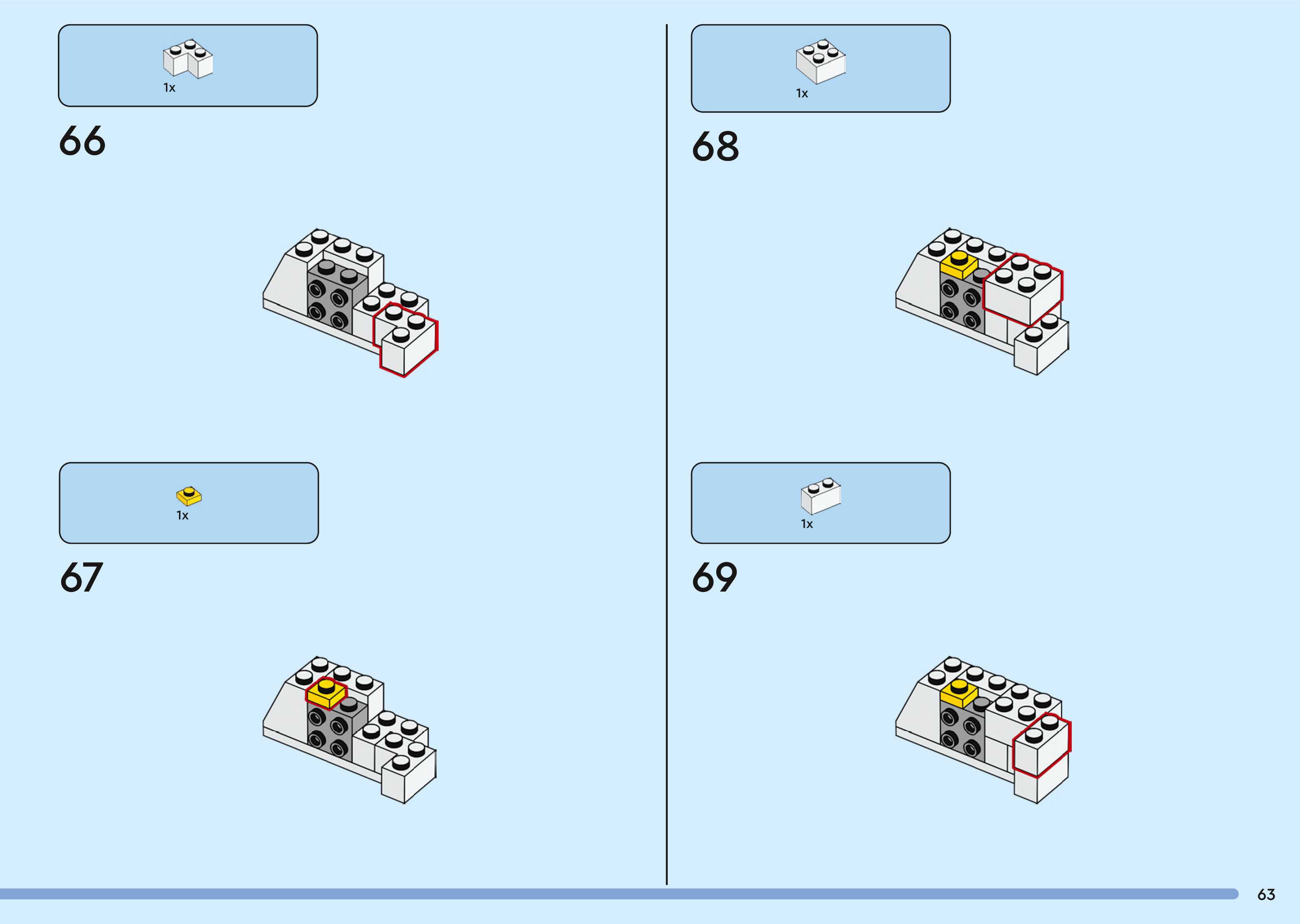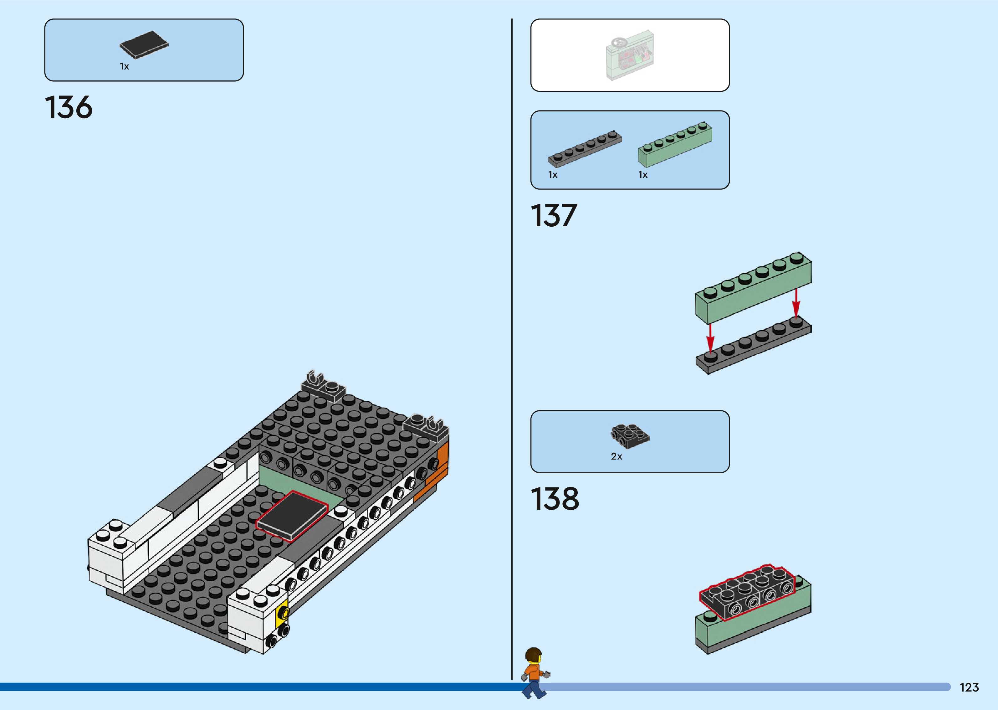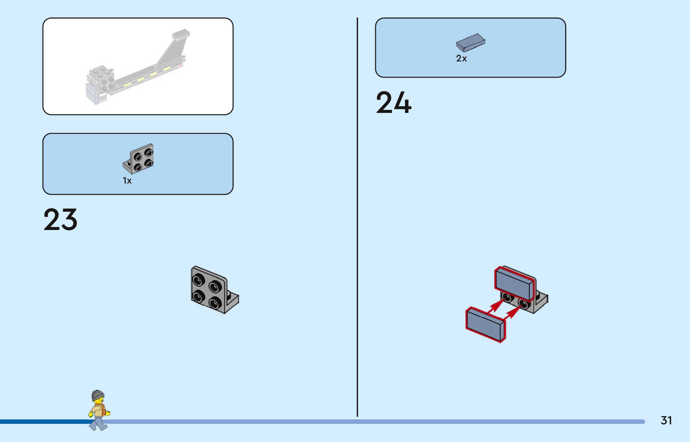 The assembly guide is prepared in a very understandable way for children and adult LEGO enthusiasts. A total of 216 picture galleries are shown, explaining the step-by-step construction stages for 2 different structures.