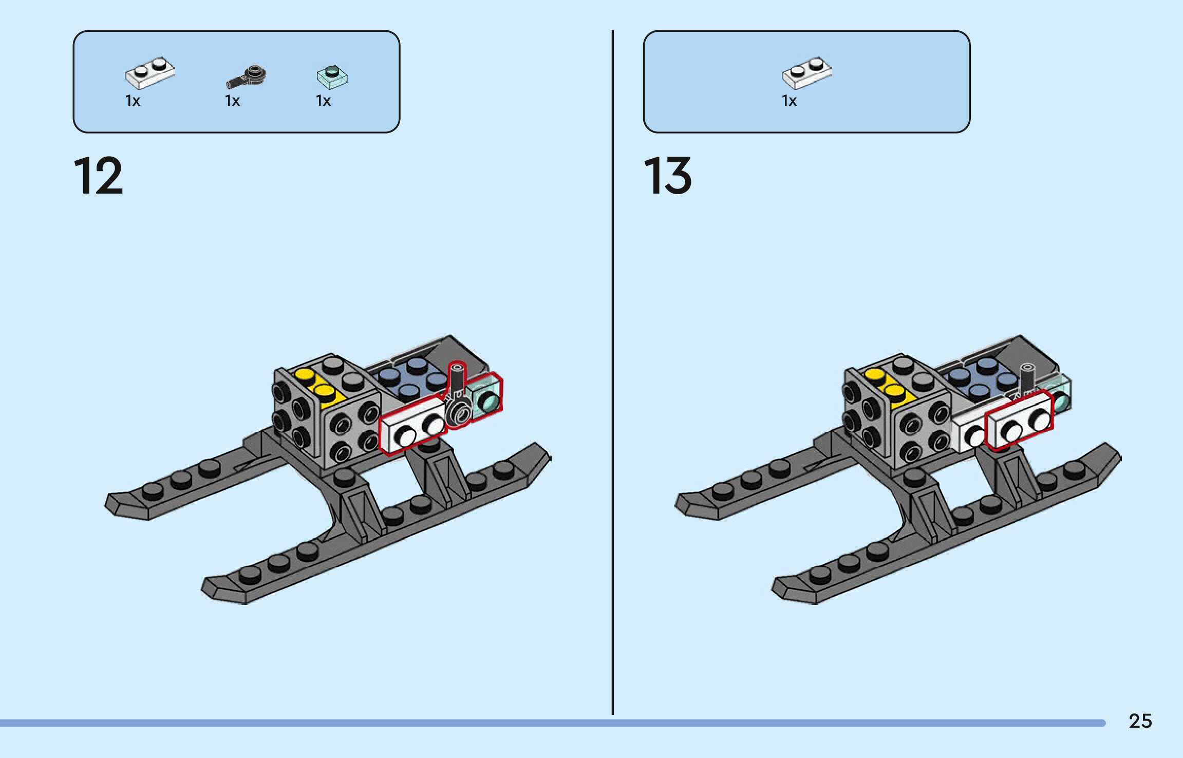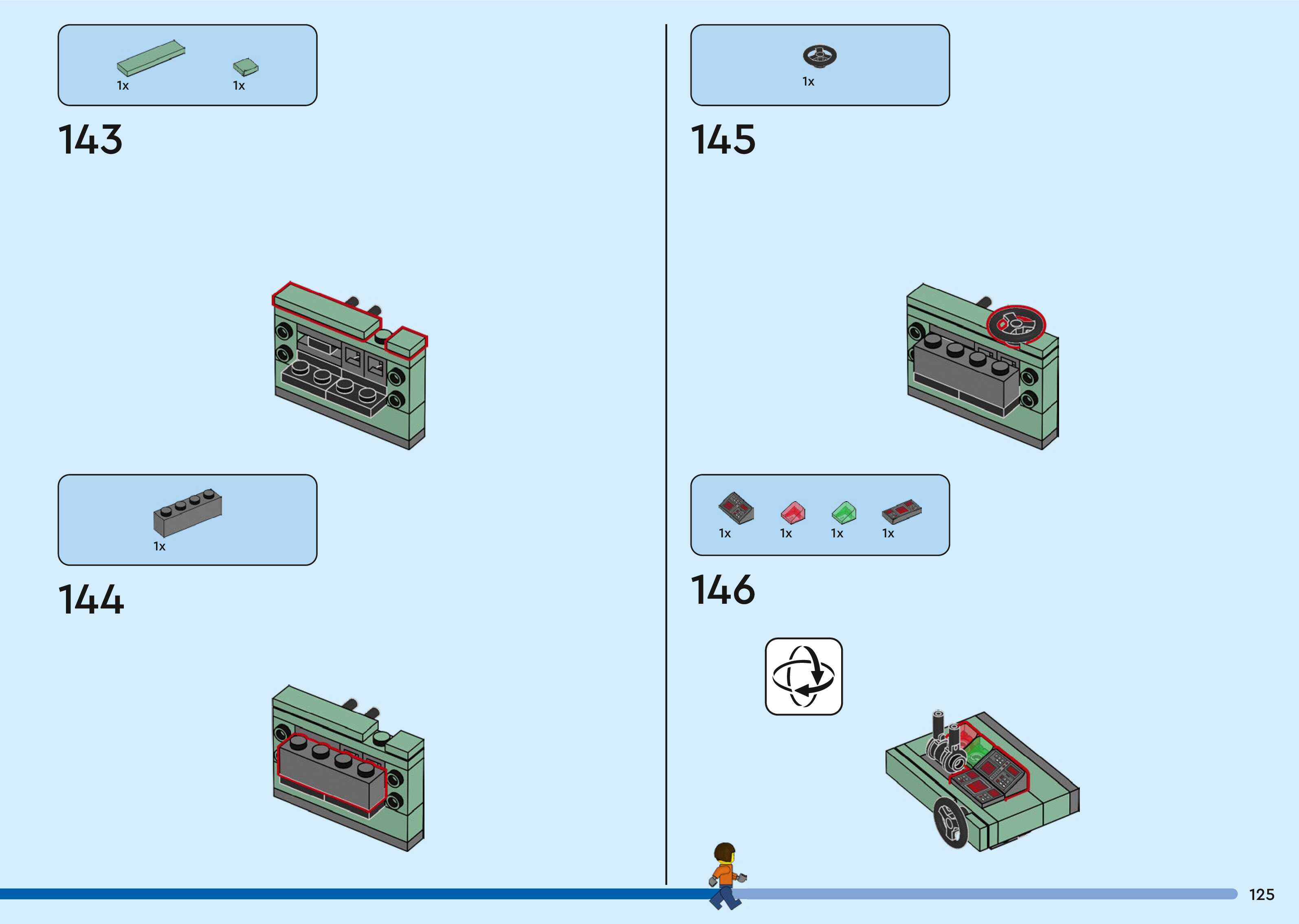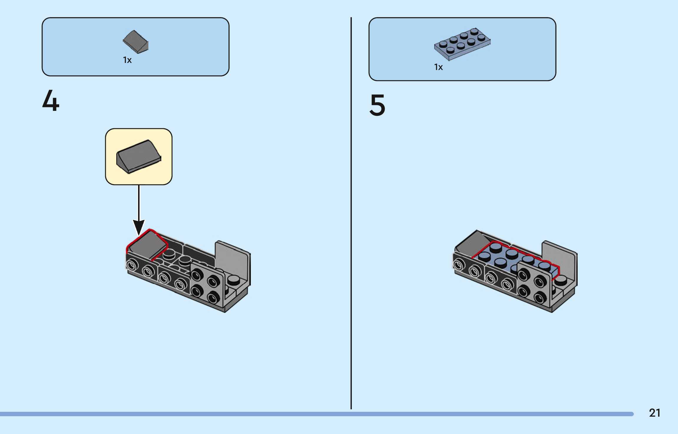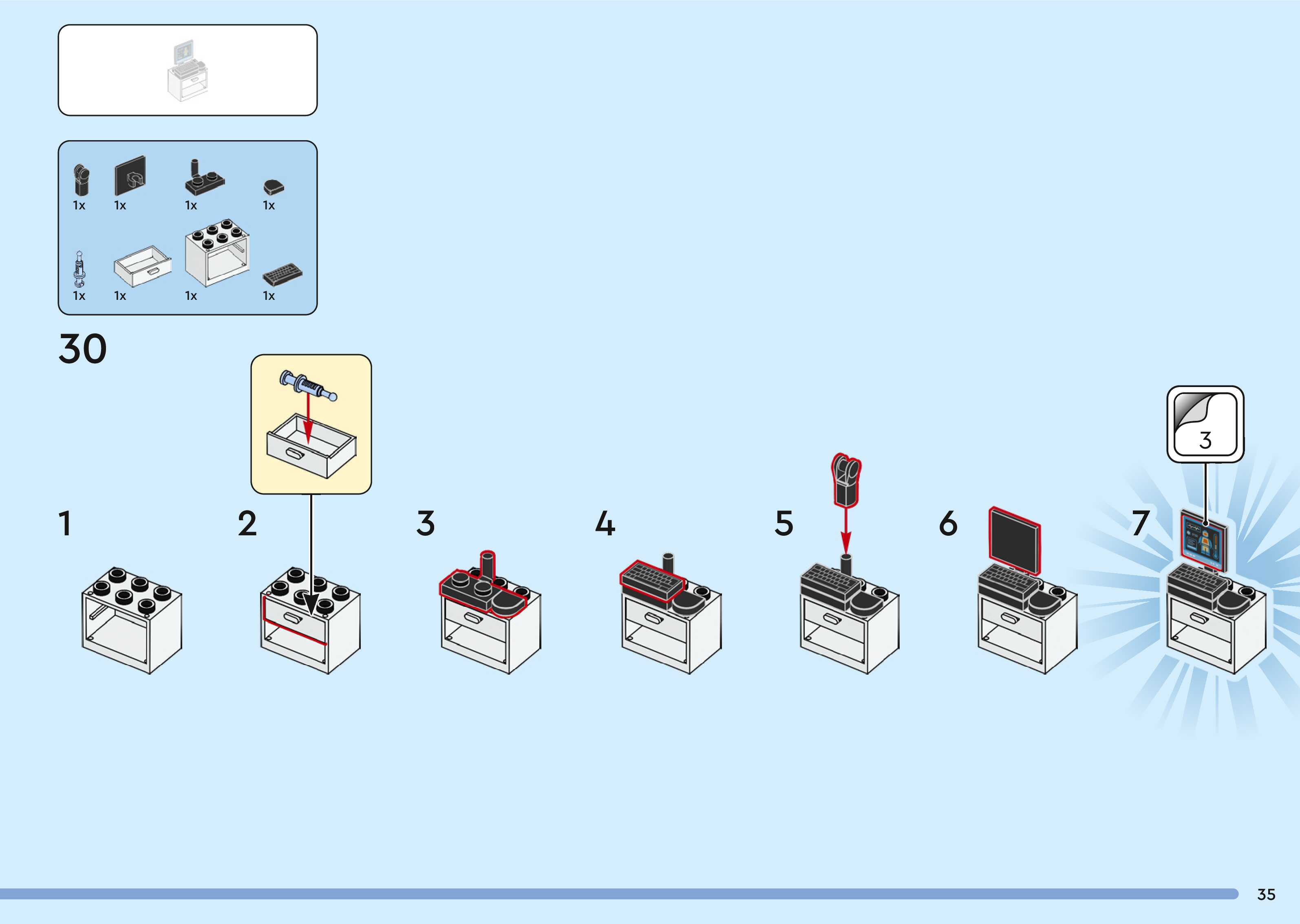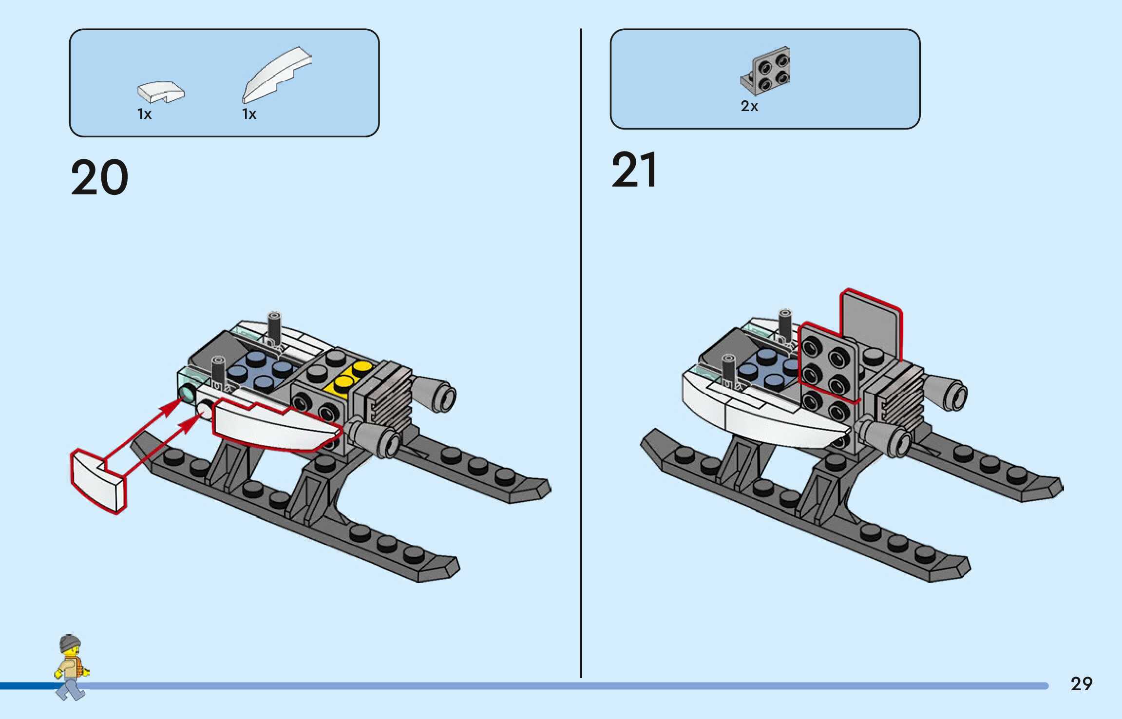 The assembly guide is prepared in a very understandable way for children and adult LEGO enthusiasts. A total of 216 picture galleries are shown, explaining the step-by-step construction stages for 2 different structures.
