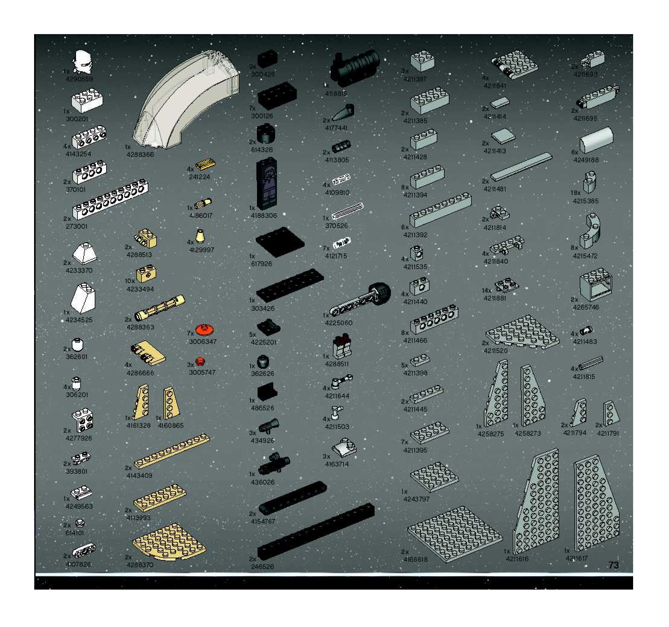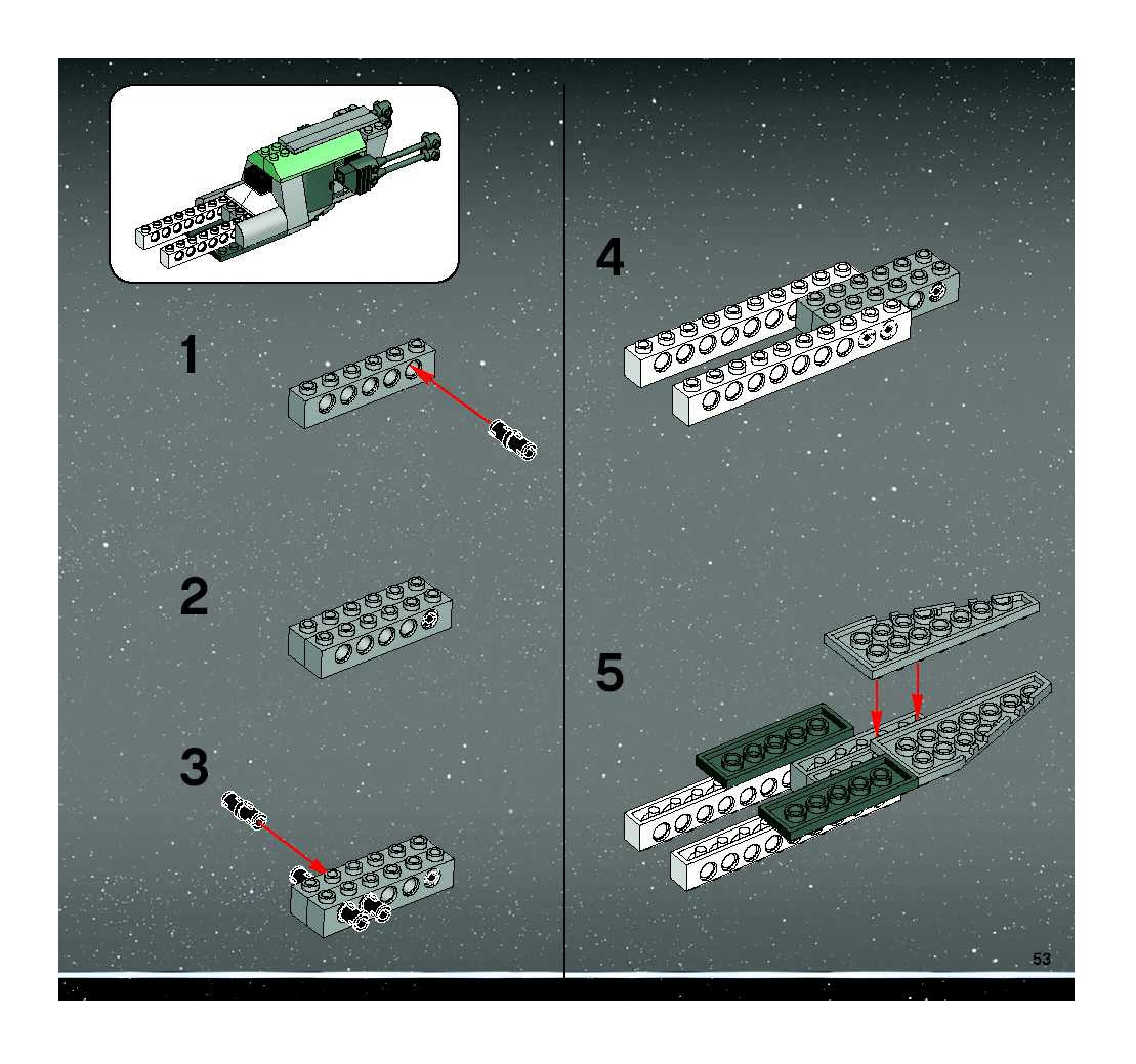 The assembly guide is prepared in a very understandable way for children and adult LEGO enthusiasts. A total of 76 picture galleries are shown, explaining the step-by-step construction stages for 1 different structures.
