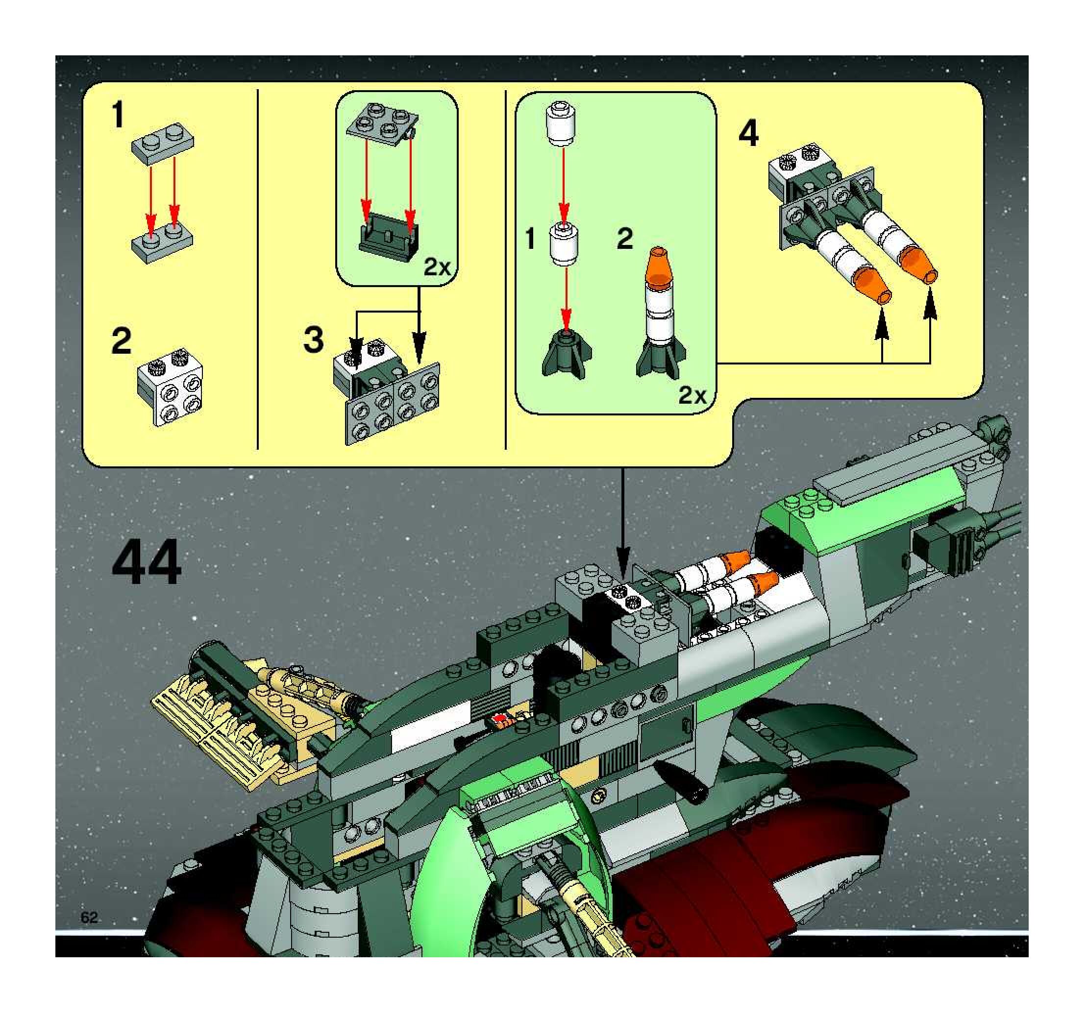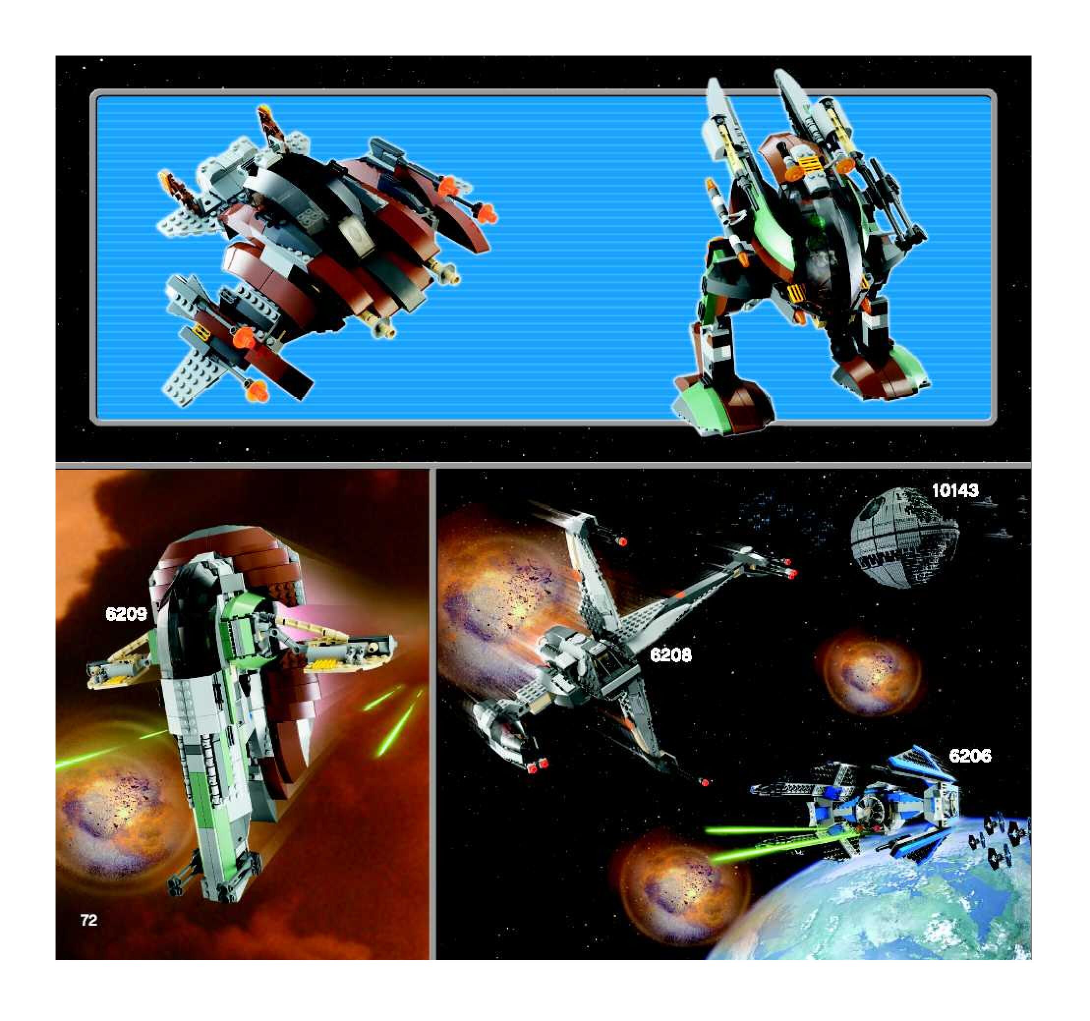 This page shares information about LEGO 6209 Slave I manual, LEGO 6209 PDF instructions, LEGO 6209 Slave I building guide online, How to build 6209 Slave I LEGO.