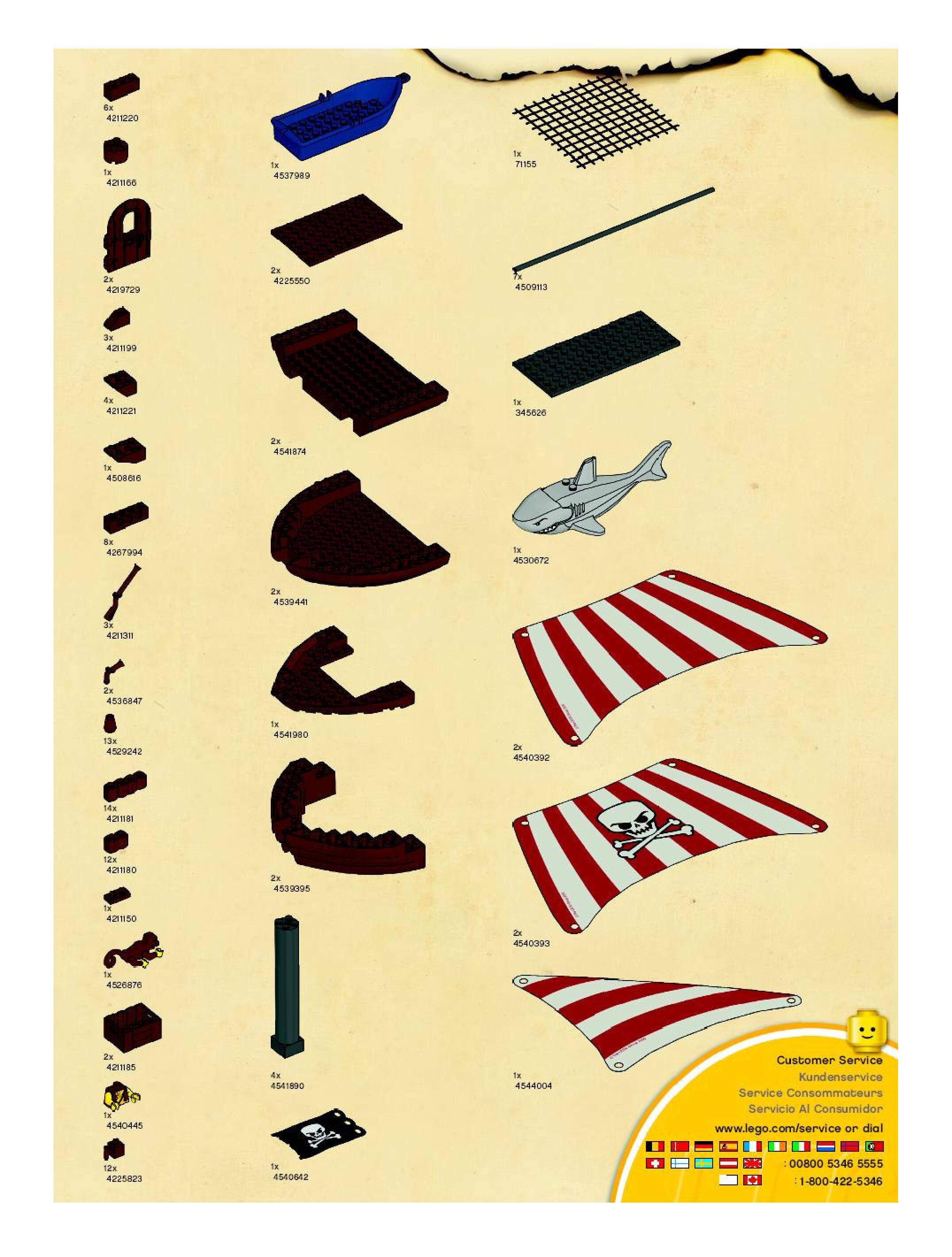 On this page you can find the original construction manual for the LEGO 6243 set. With the assembly manual you can easily learn how to build the 6243 Brickbeard’s Bounty step by step. The set was released in 2008.
