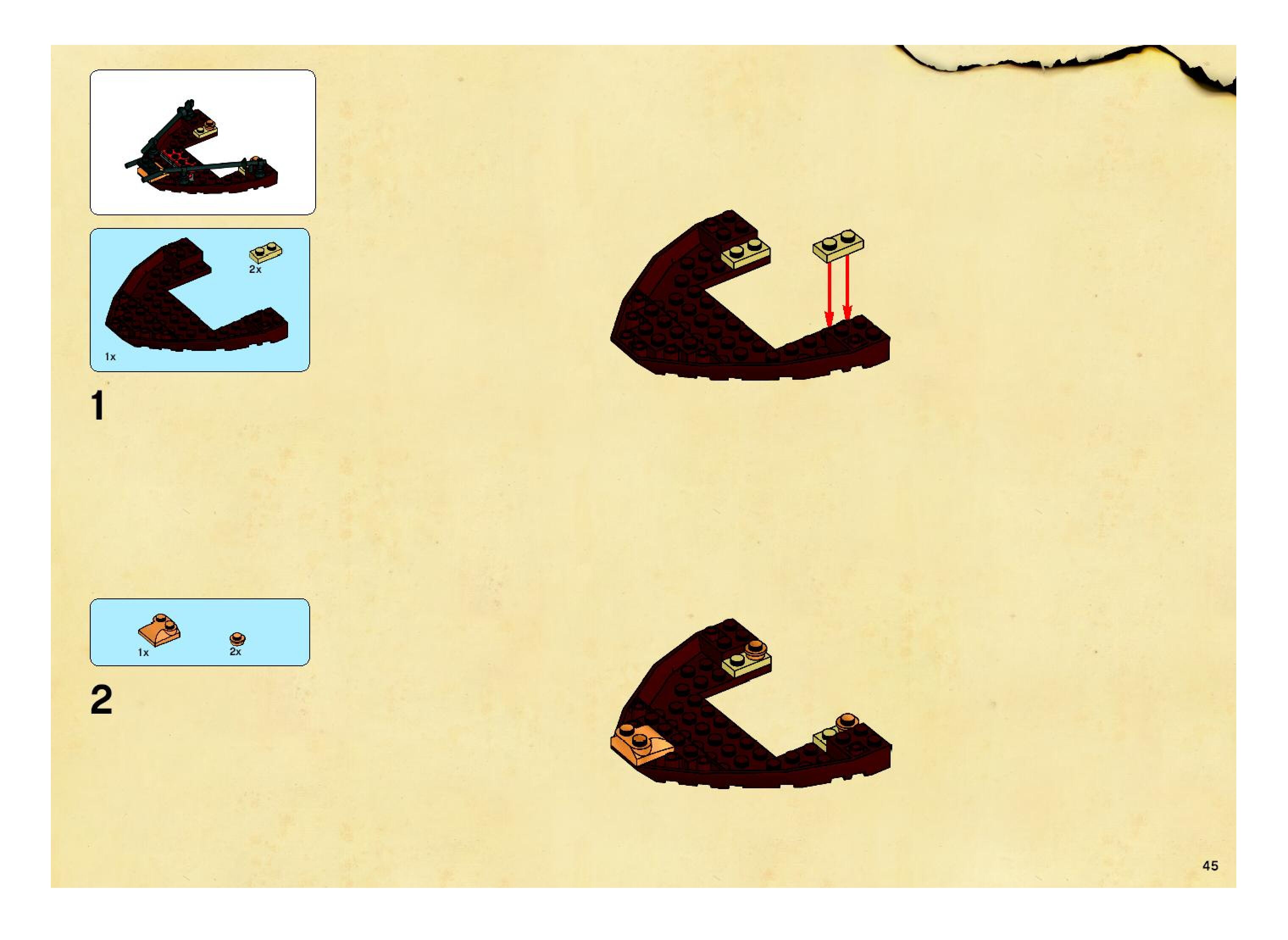 The assembly guide is prepared in a very understandable way for children and adult LEGO enthusiasts. A total of 132 picture galleries are shown, explaining the step-by-step construction stages for 2 different structures.
