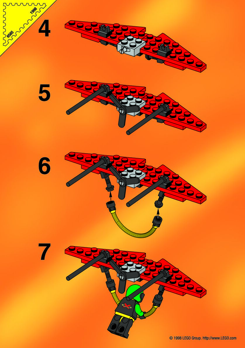 On this page you can find the original construction manual for the LEGO 6585 set. With the assembly manual you can easily learn how to build the 6585 Hang Glider step by step. The set was released in 1998.