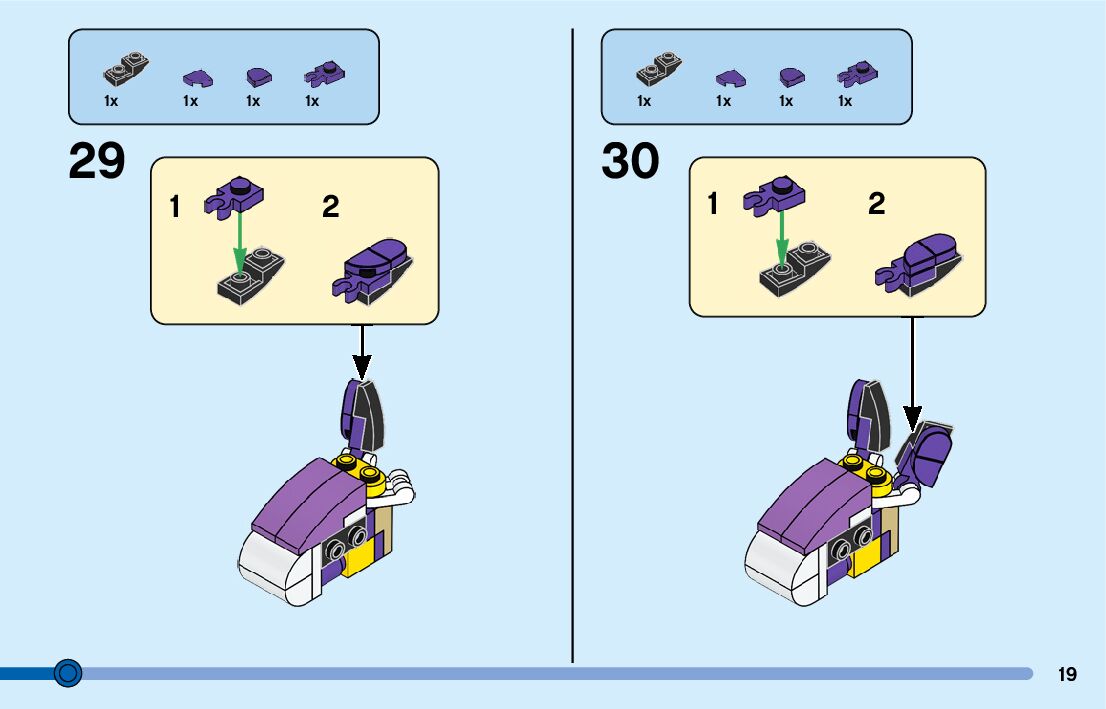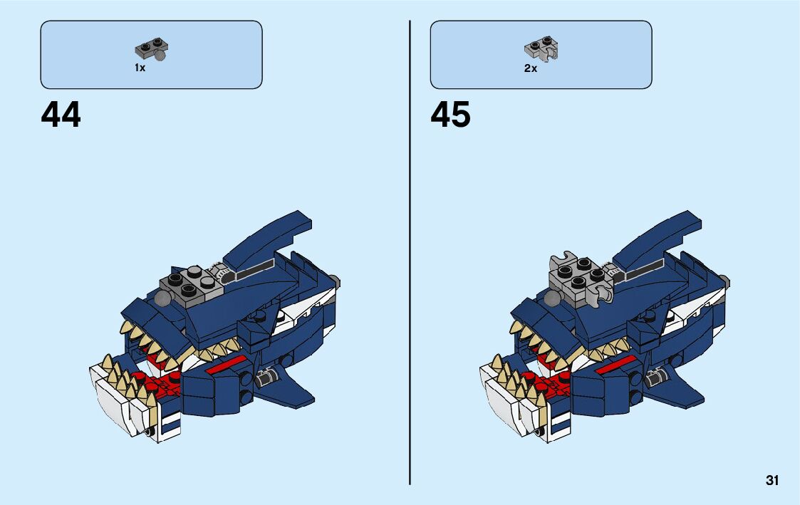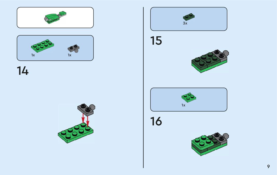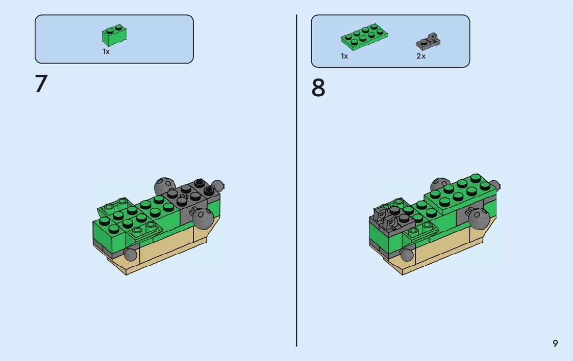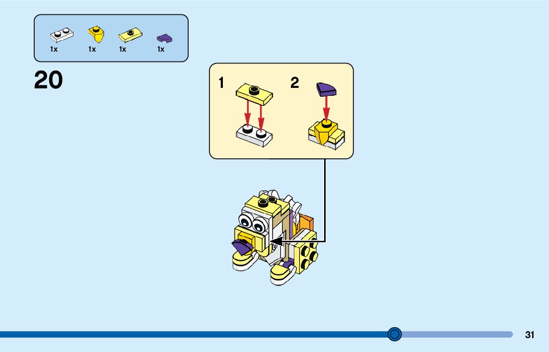 The assembly guide is prepared in a very understandable way for children and adult LEGO enthusiasts. A total of 360 picture galleries are shown, explaining the step-by-step construction stages for 9 different structures.