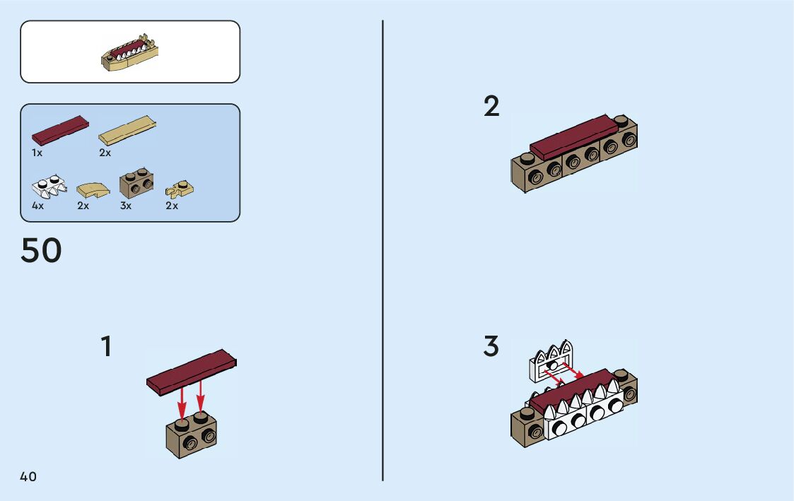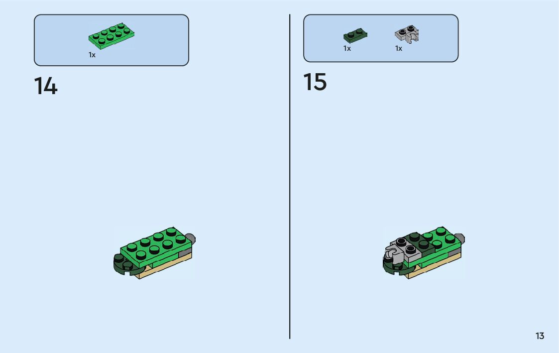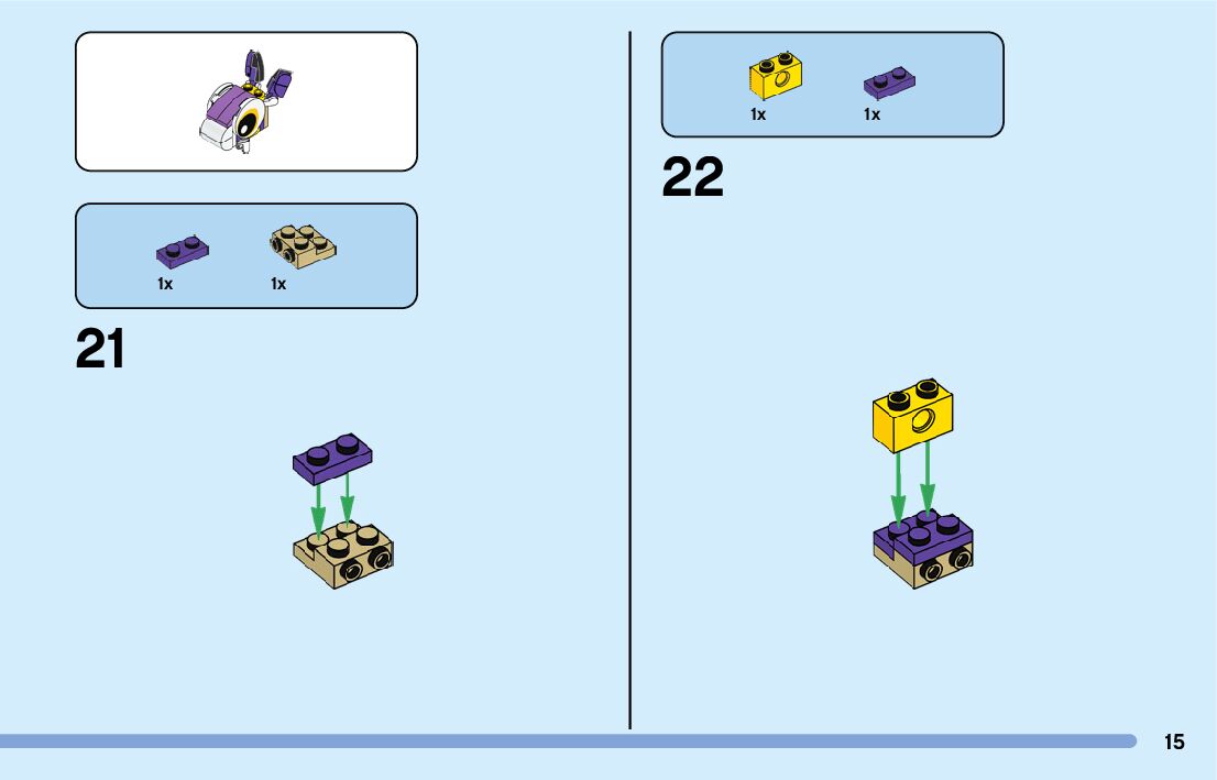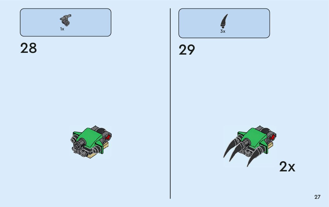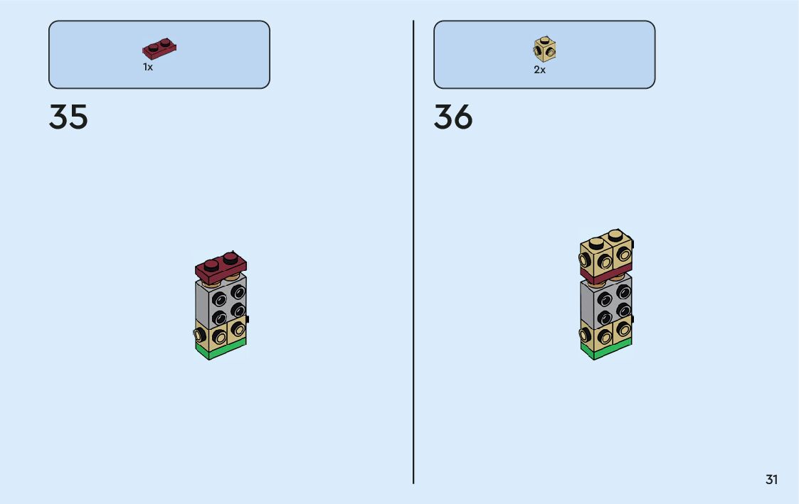 The assembly guide is prepared in a very understandable way for children and adult LEGO enthusiasts. A total of 360 picture galleries are shown, explaining the step-by-step construction stages for 9 different structures.