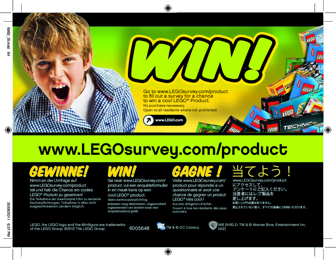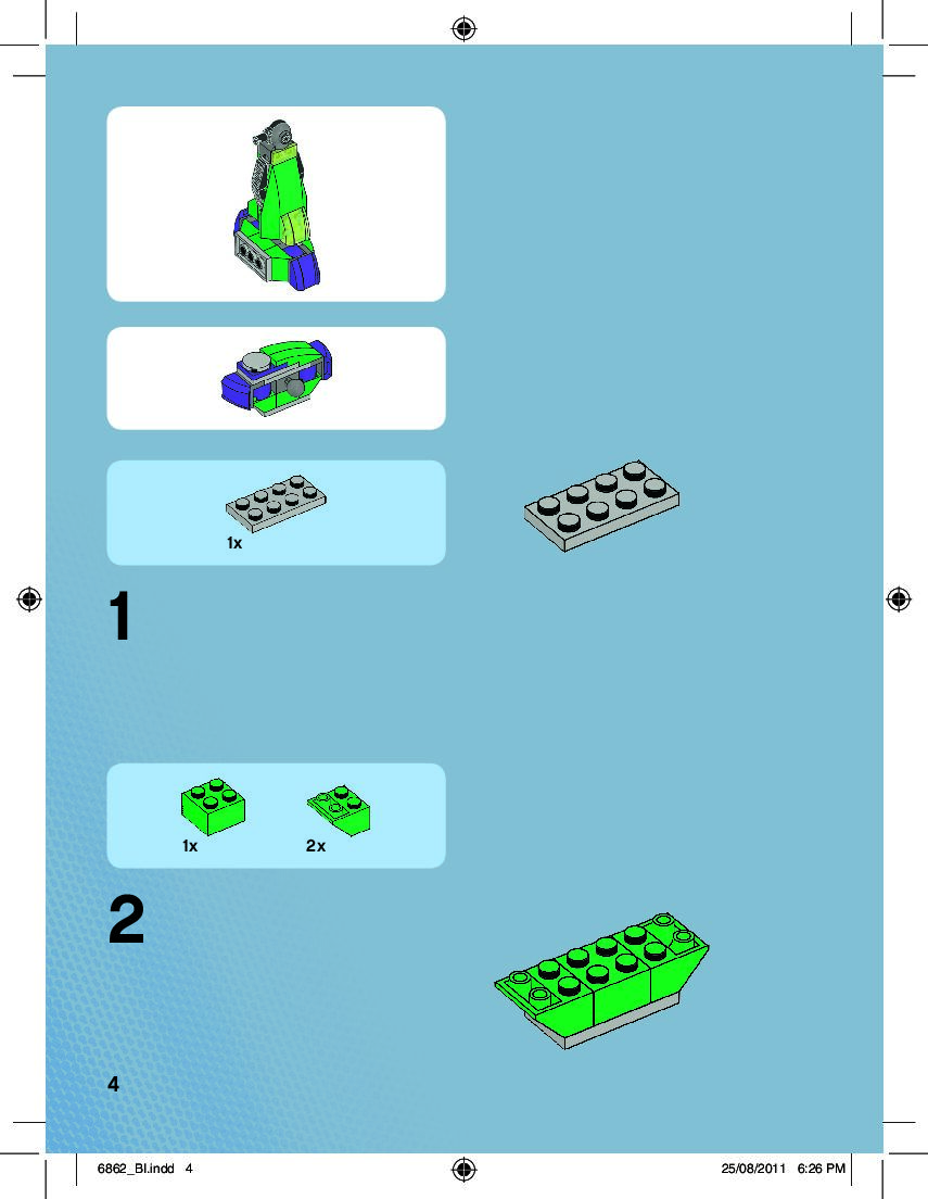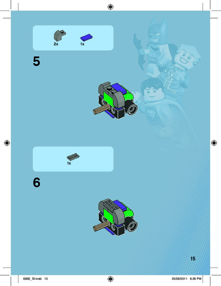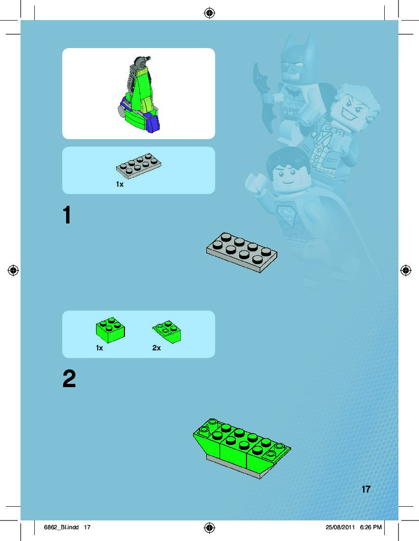 On this page you can find the original construction manual for the LEGO 6862 set. With the assembly manual you can easily learn how to build the 6862 Superman vs. Power Armour Lex step by step. The set was released in 2012.