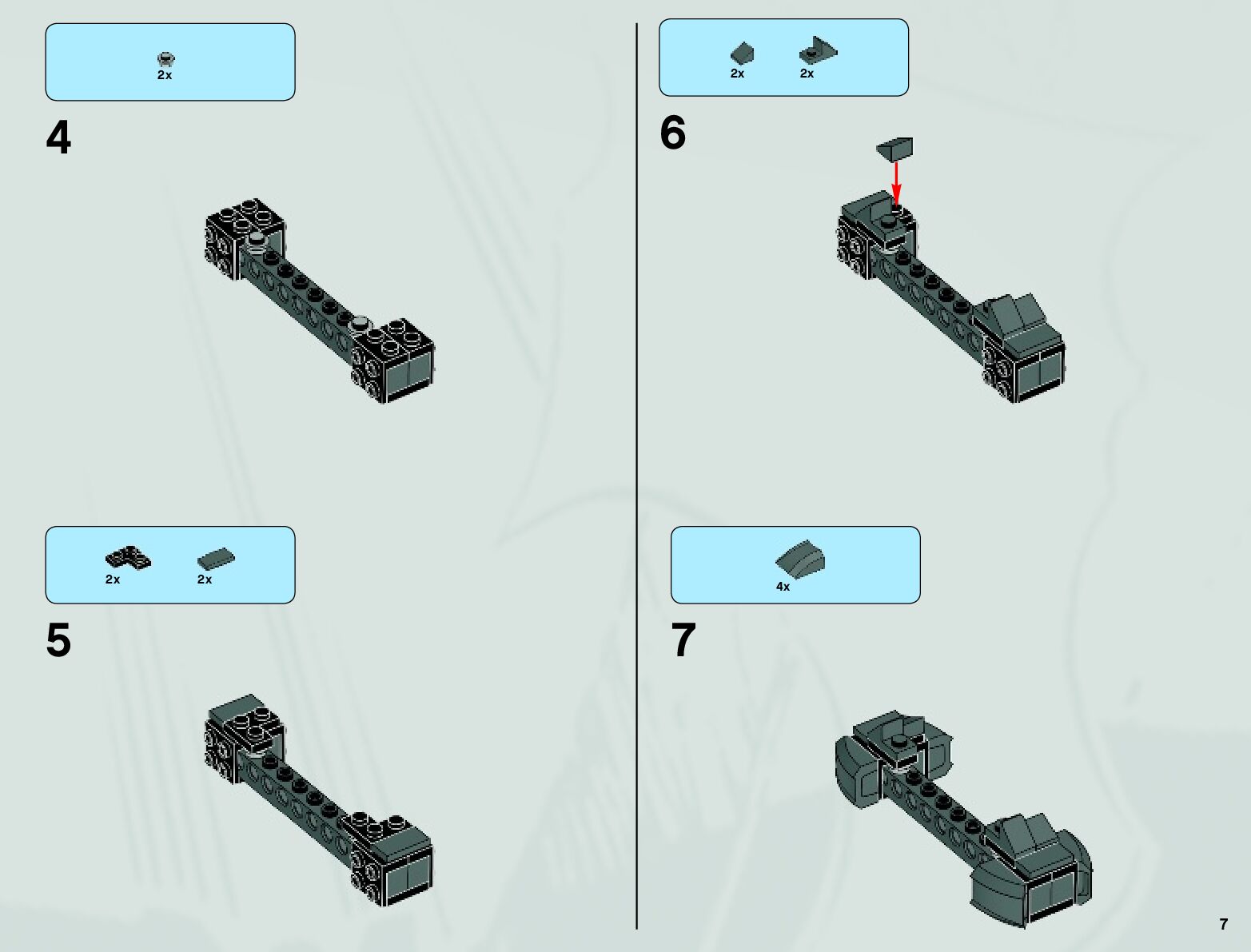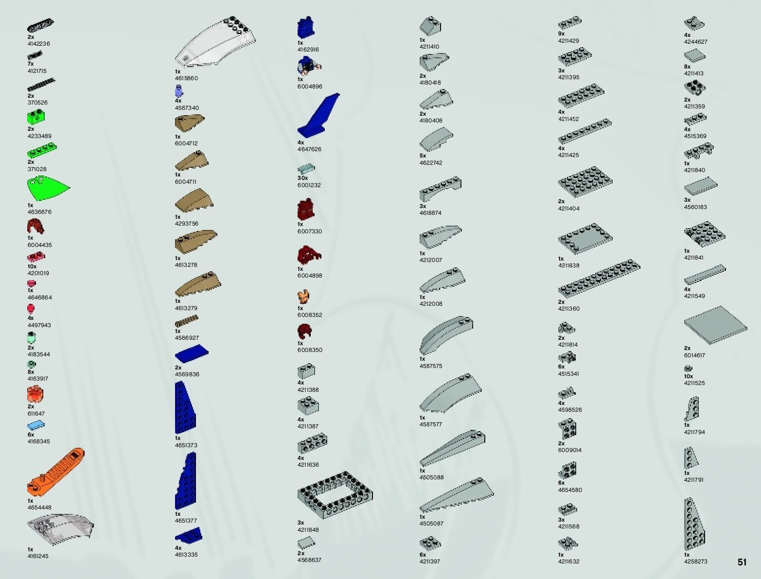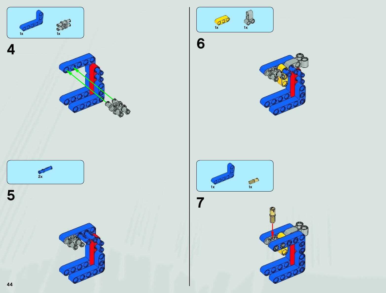 The assembly guide is prepared in a very understandable way for children and adult LEGO enthusiasts. A total of 152 picture galleries are shown, explaining the step-by-step construction stages for 4 different structures.