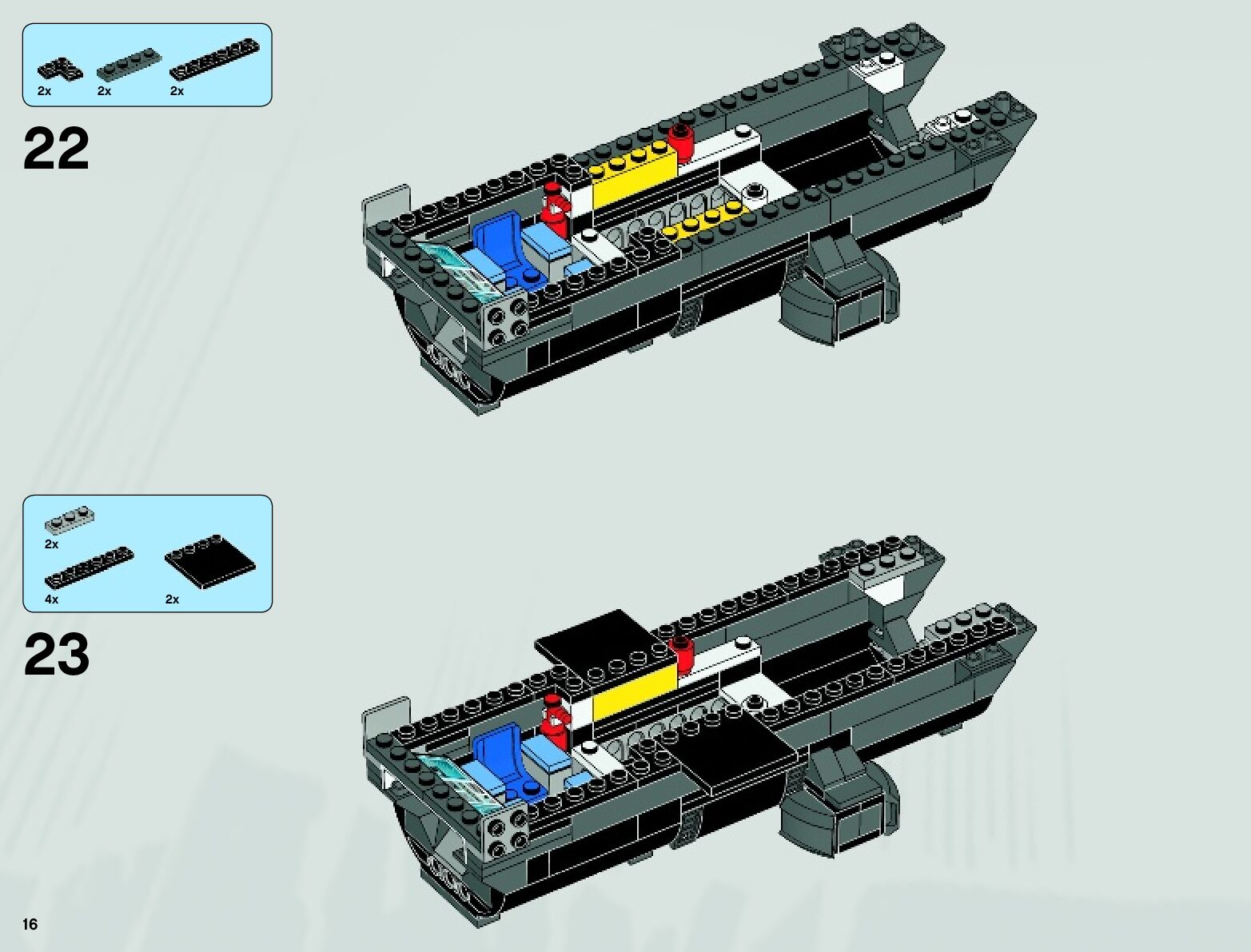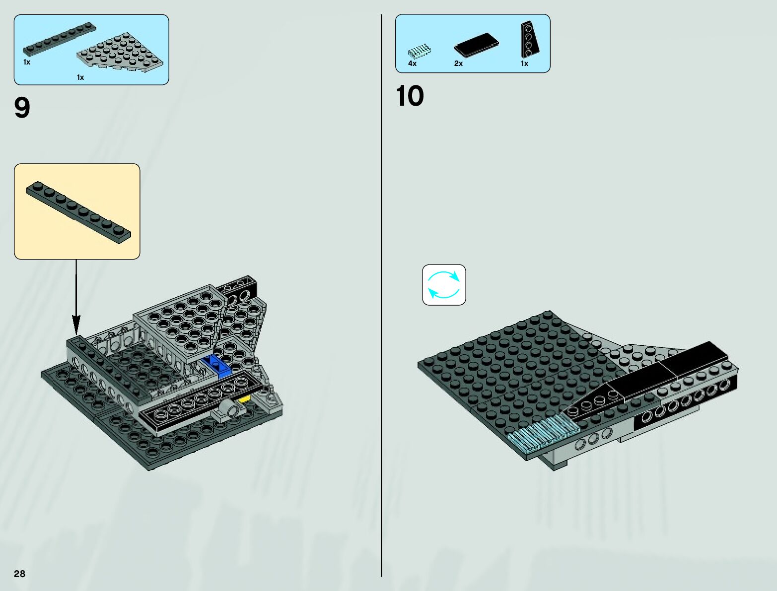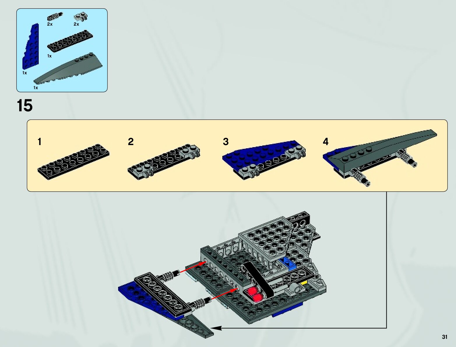 The assembly guide is prepared in a very understandable way for children and adult LEGO enthusiasts. A total of 152 picture galleries are shown, explaining the step-by-step construction stages for 4 different structures.