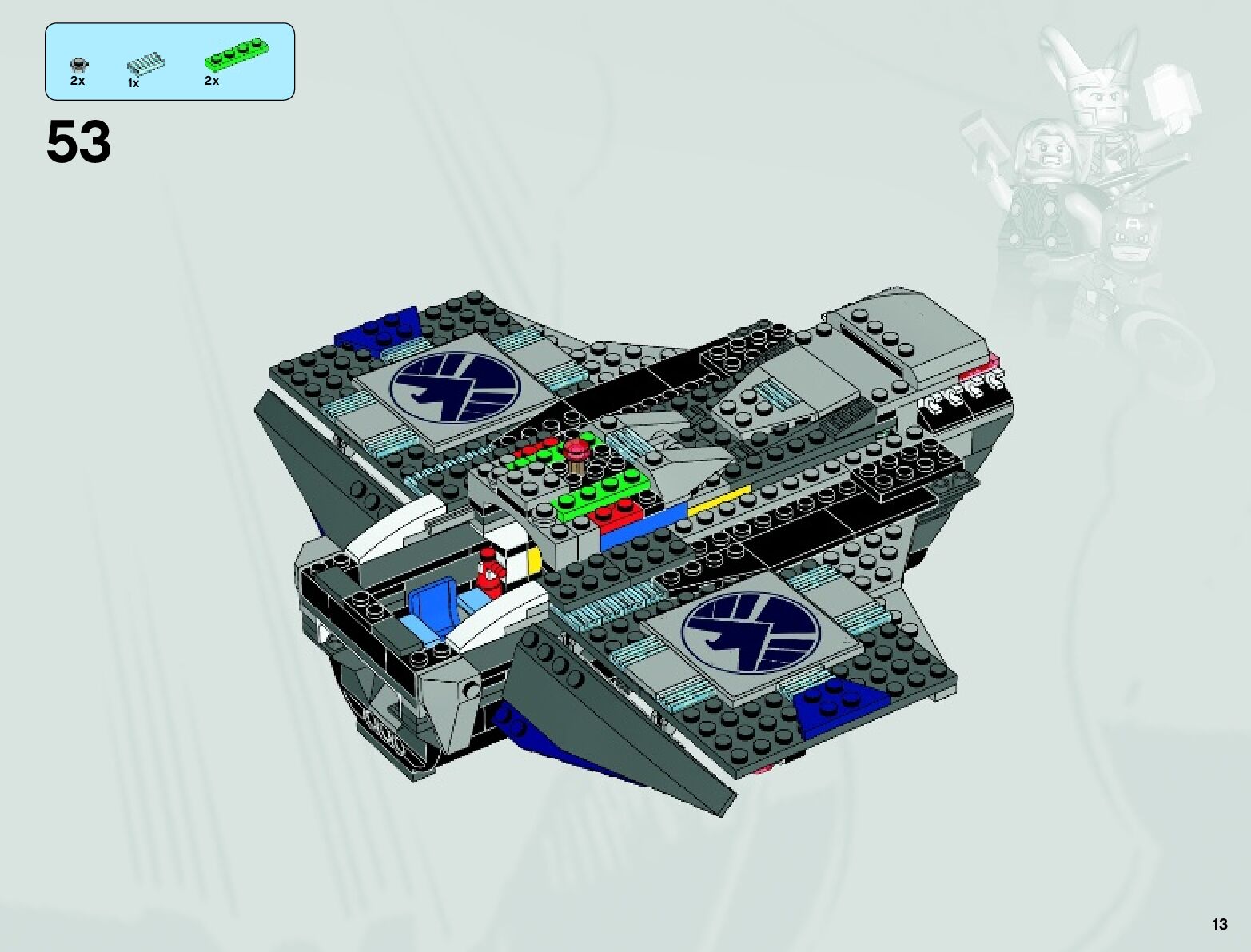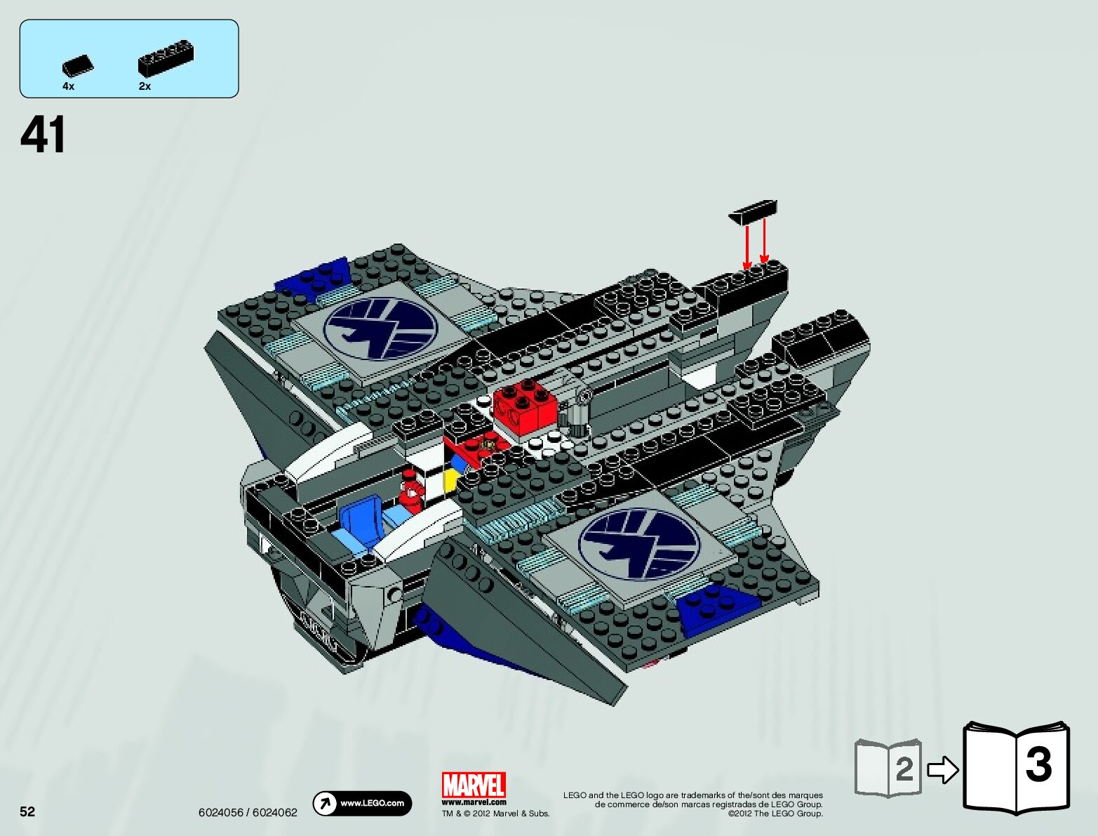 On this page you can find the original construction manual for the LEGO 6869 set. With the assembly manual you can easily learn how to build the 6869 Quinjet Aerial Battle step by step. The set was released in 2012.
