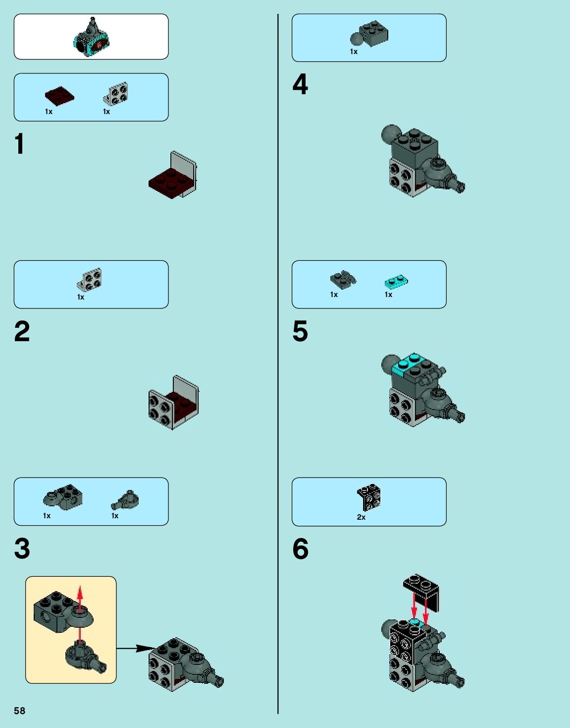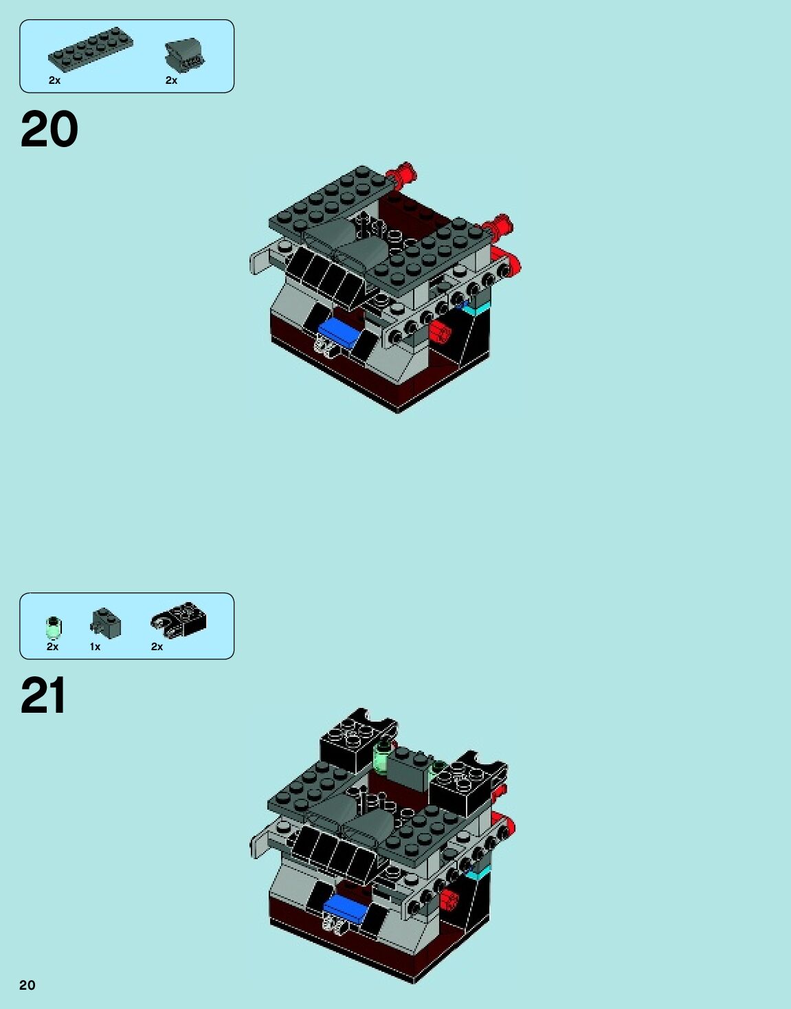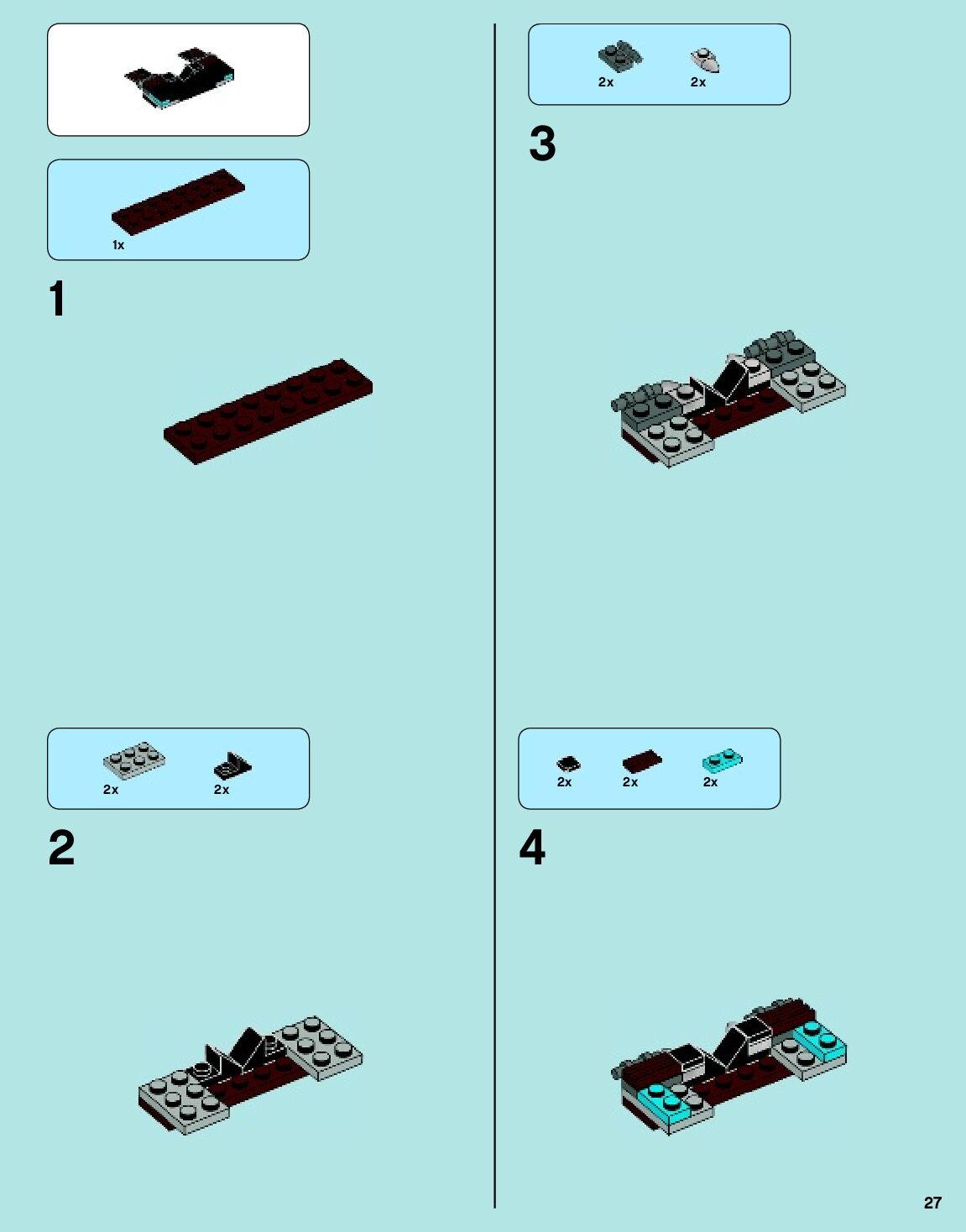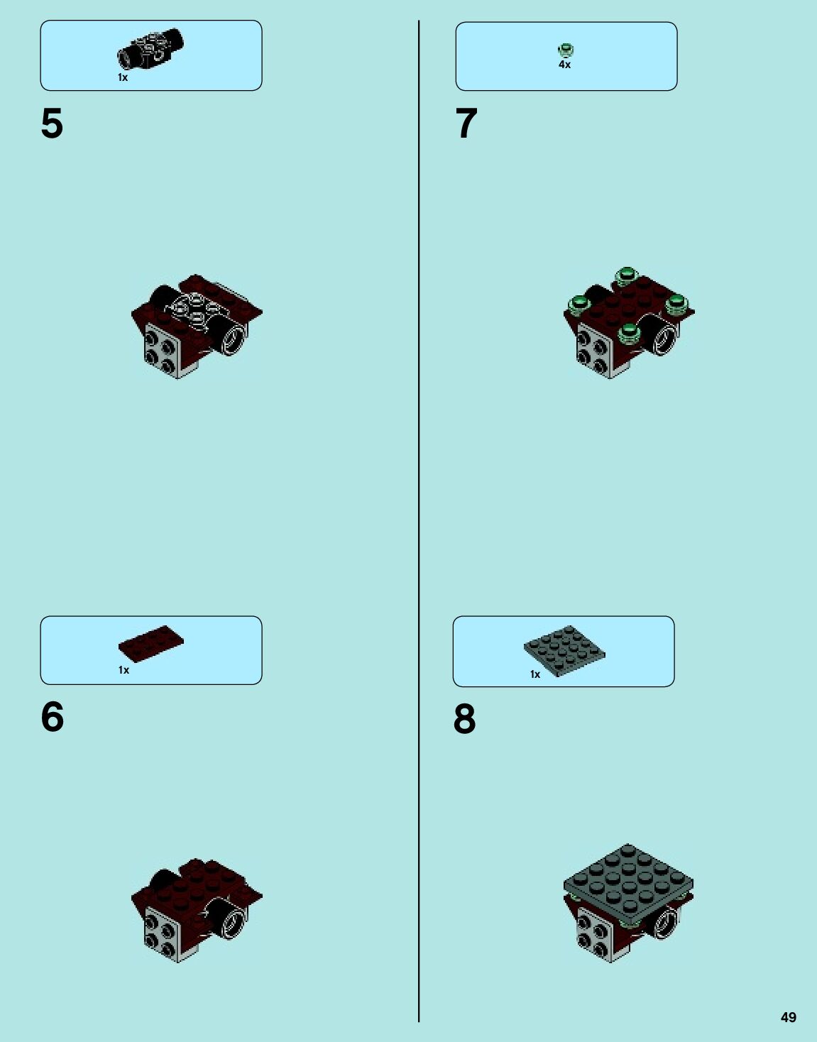 The assembly guide is prepared in a very understandable way for children and adult LEGO enthusiasts. A total of 68 picture galleries are shown, explaining the step-by-step construction stages for 1 different structures.