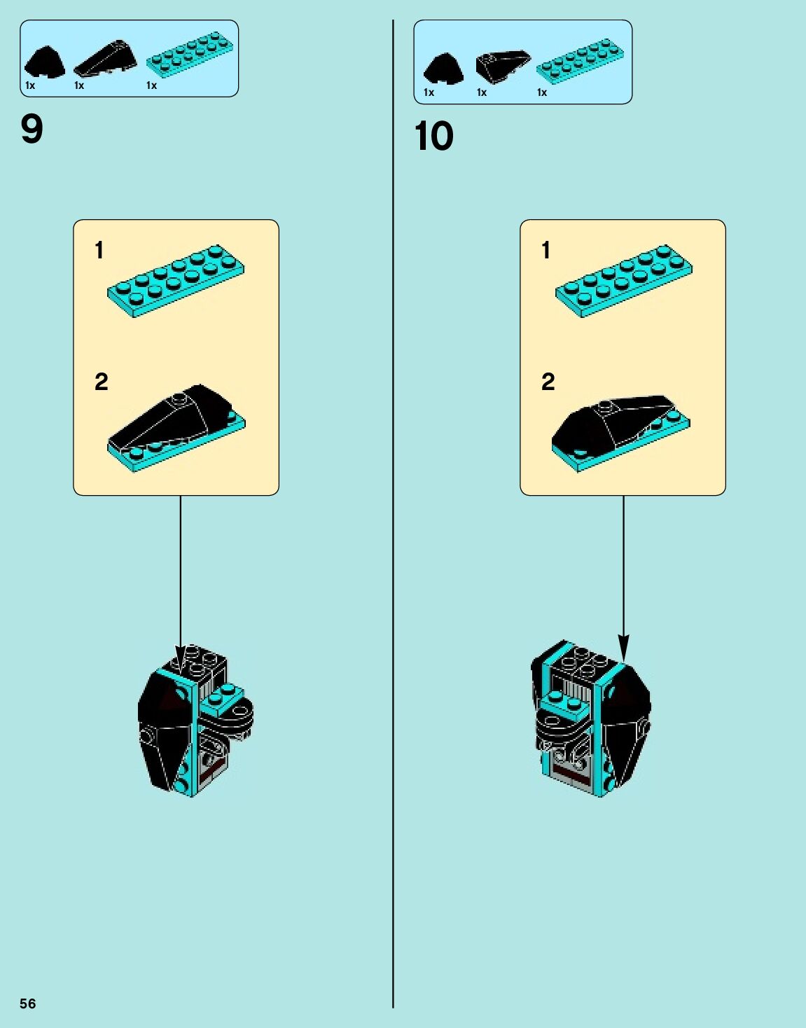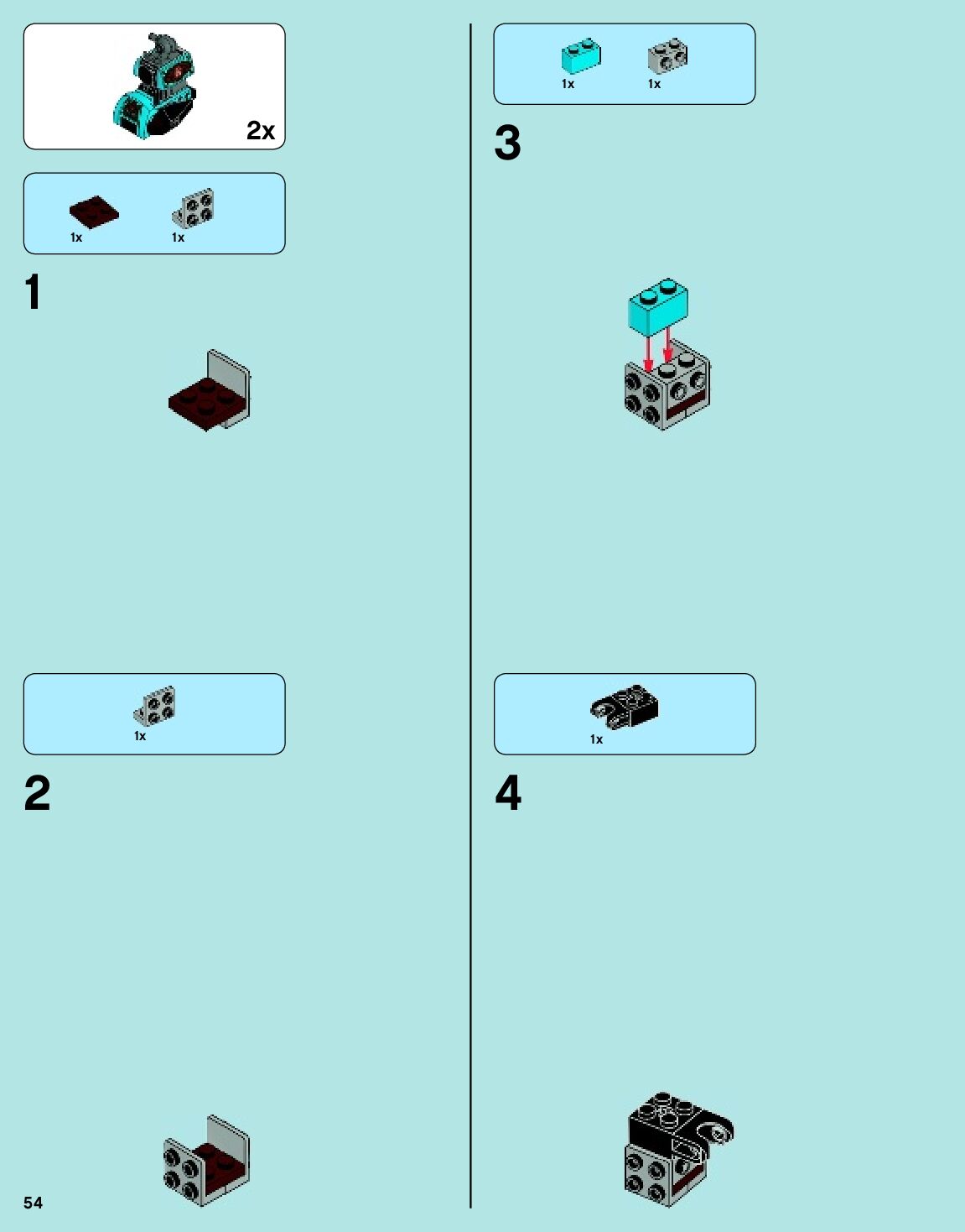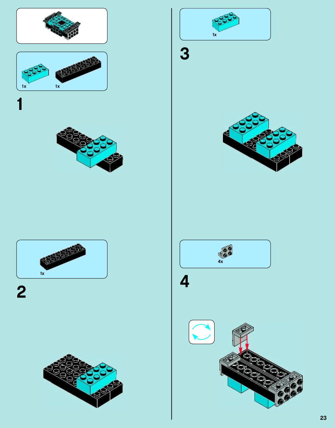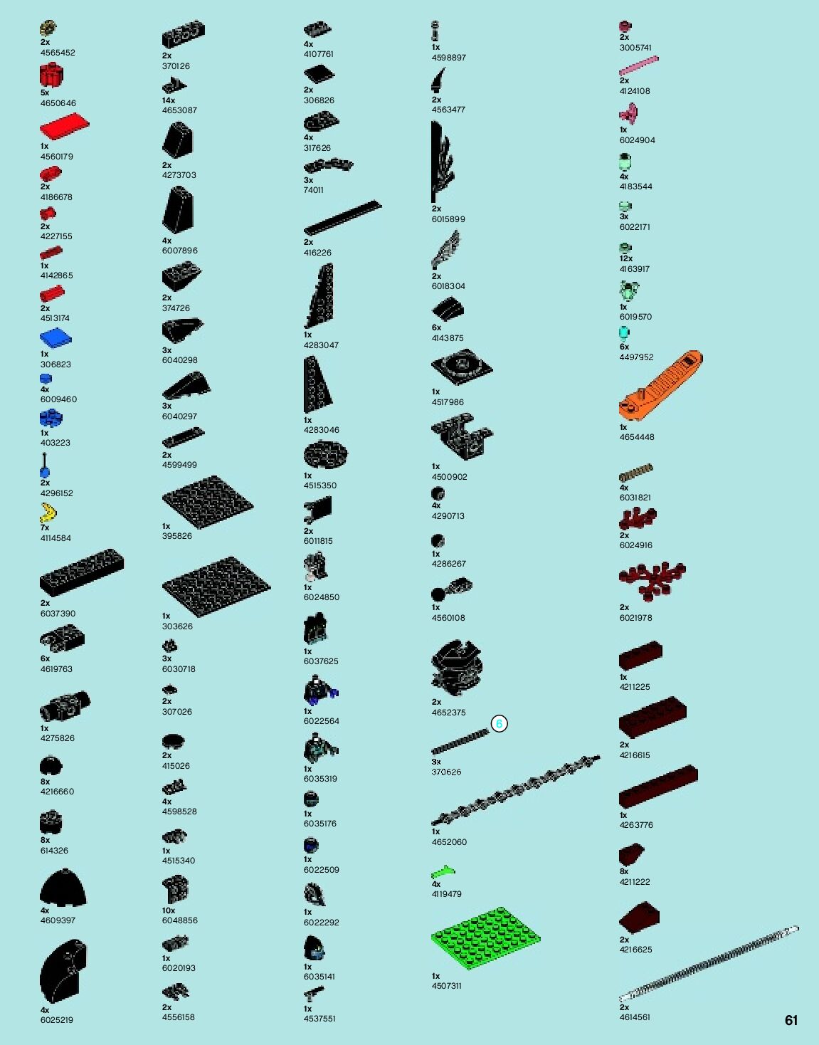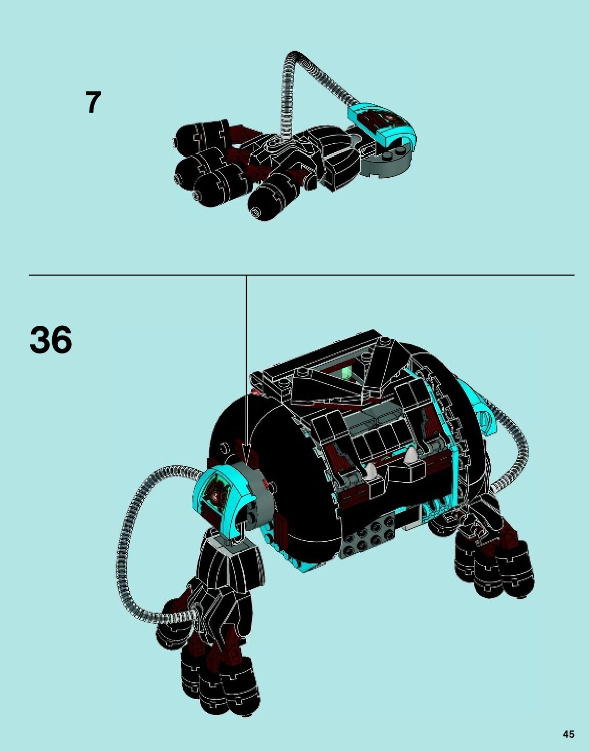 The assembly guide is prepared in a very understandable way for children and adult LEGO enthusiasts. A total of 68 picture galleries are shown, explaining the step-by-step construction stages for 1 different structures.