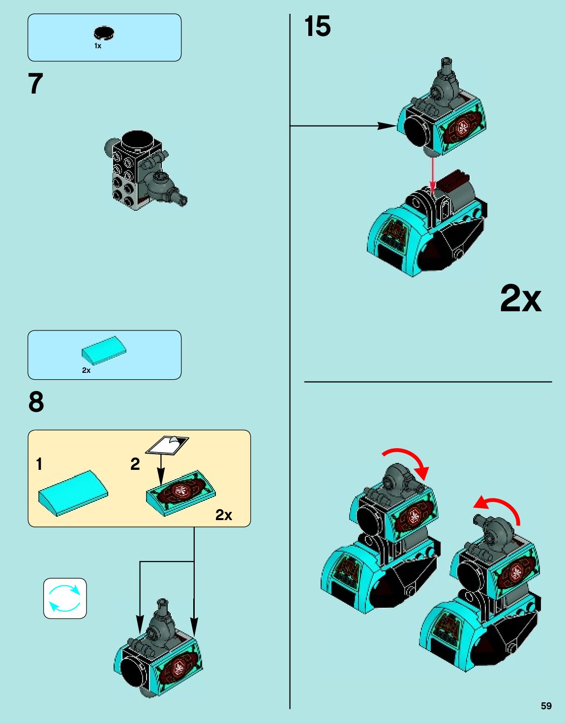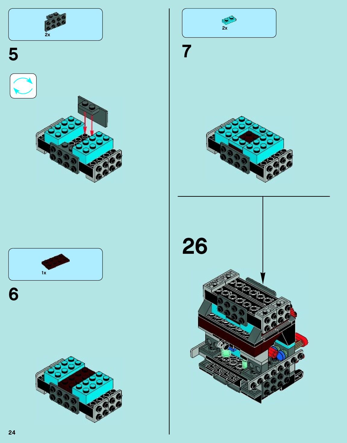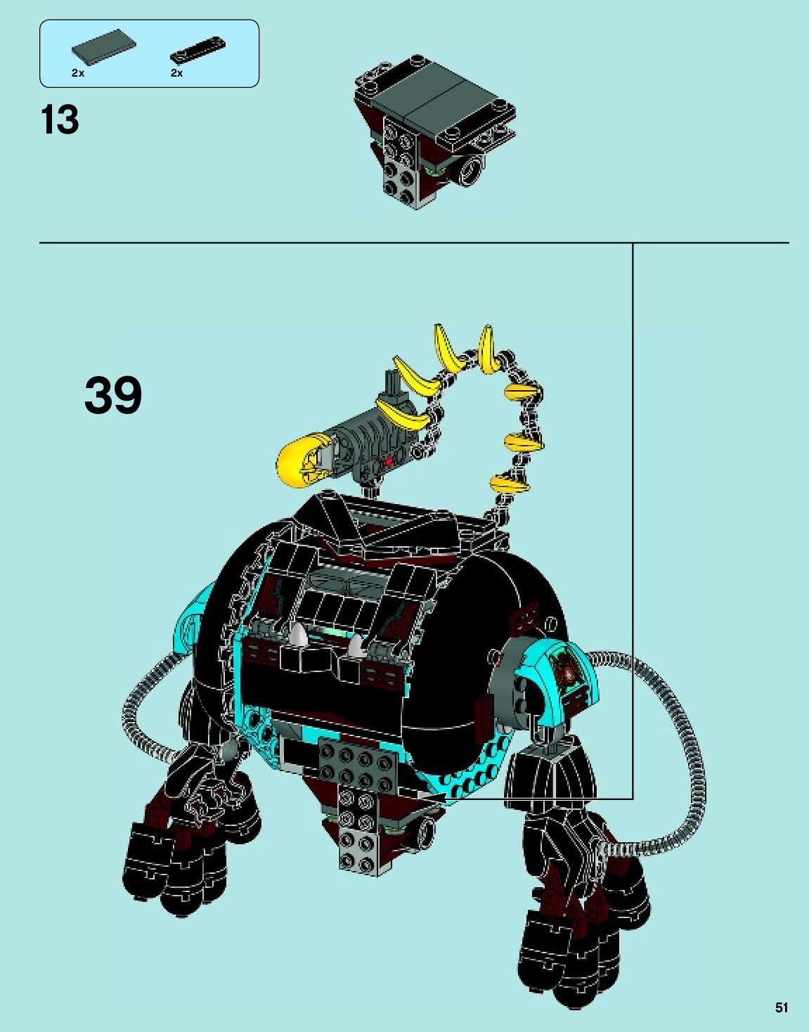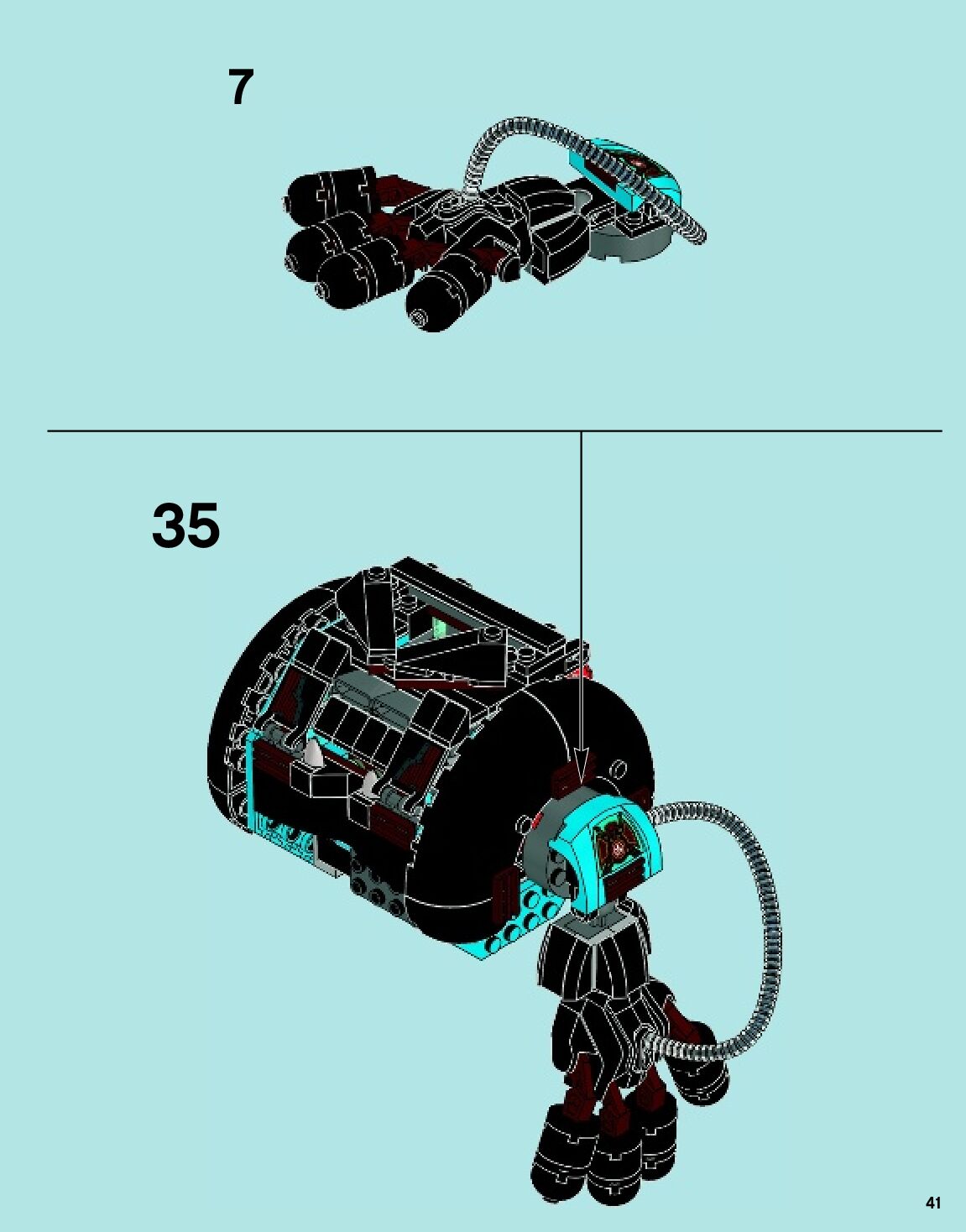 The assembly guide is prepared in a very understandable way for children and adult LEGO enthusiasts. A total of 68 picture galleries are shown, explaining the step-by-step construction stages for 1 different structures.