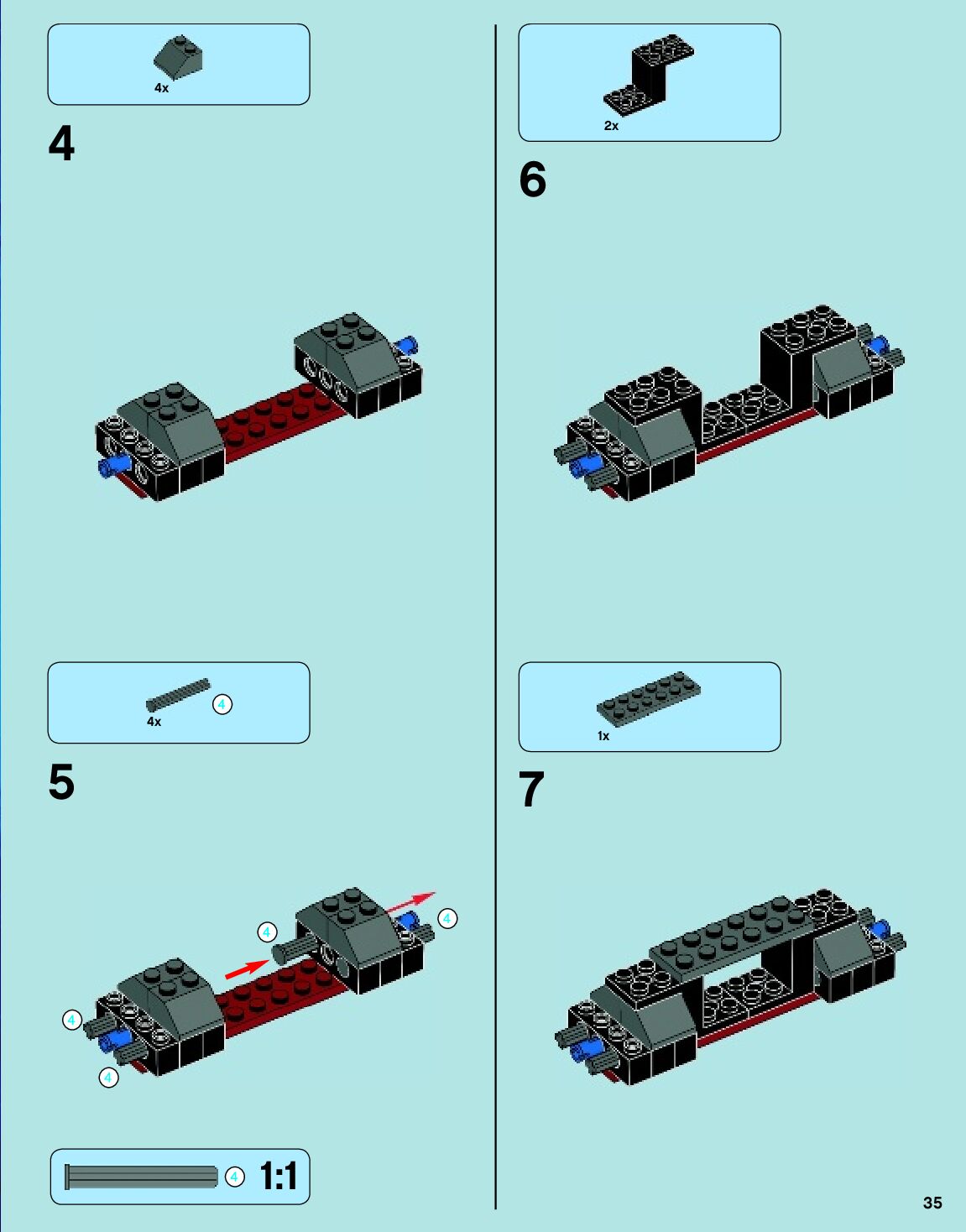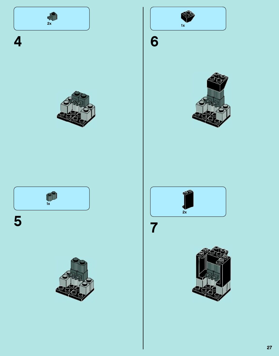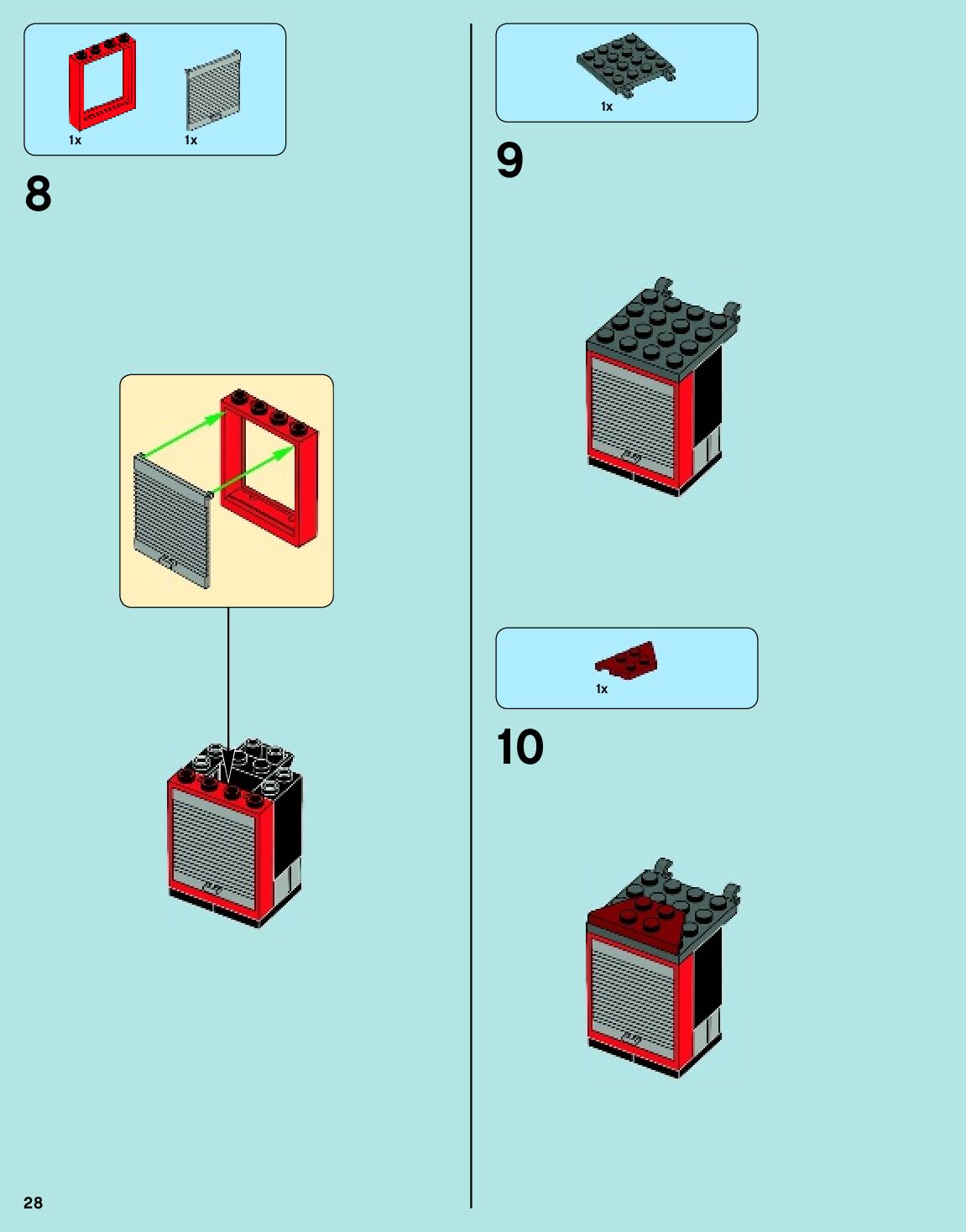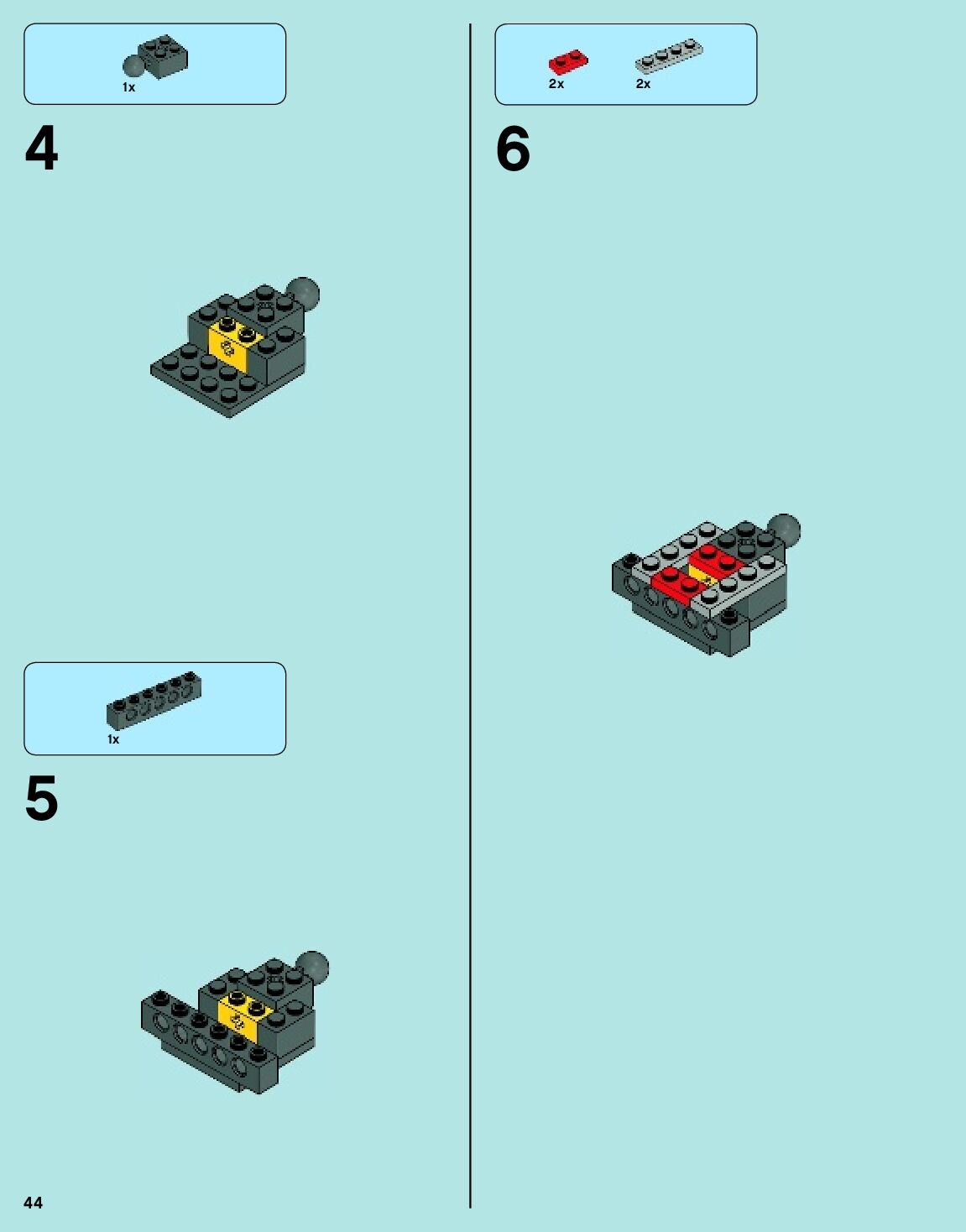 The assembly guide is prepared in a very understandable way for children and adult LEGO enthusiasts. A total of 820 picture galleries are shown, explaining the step-by-step construction stages for 3 different structures.