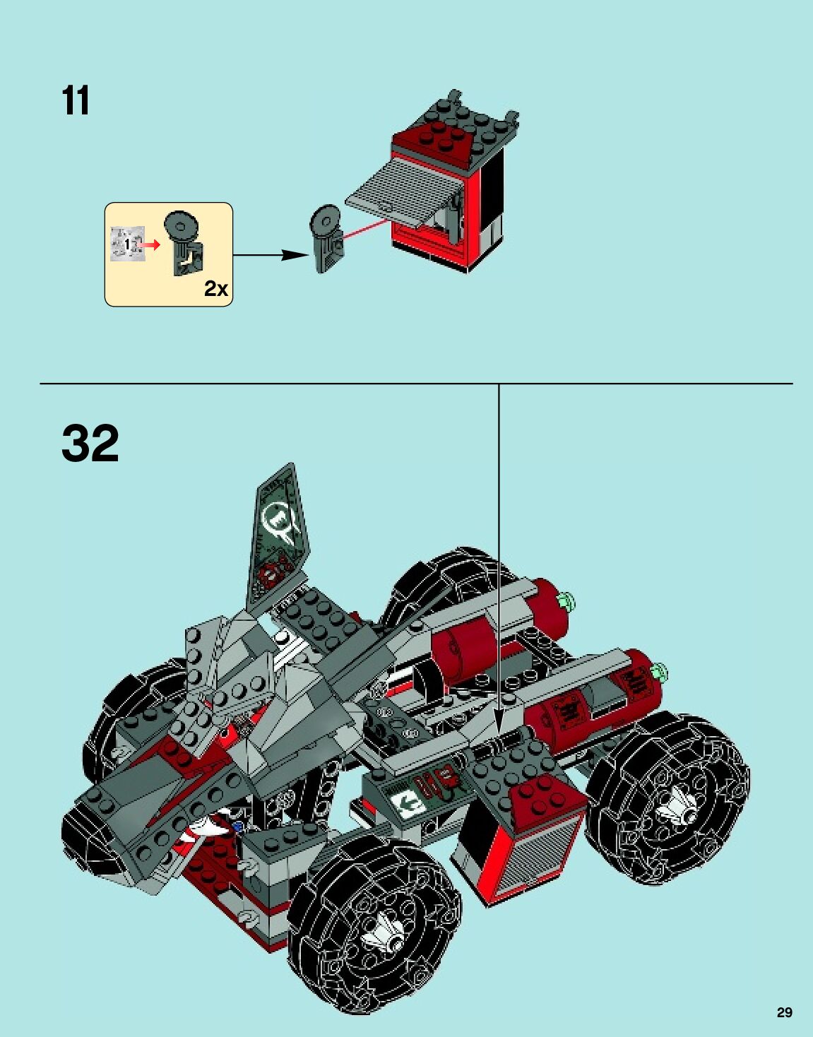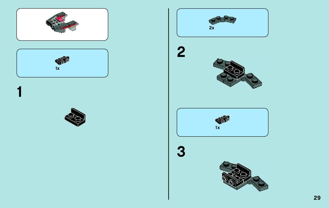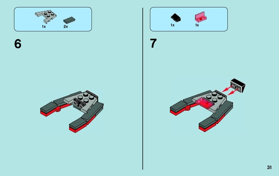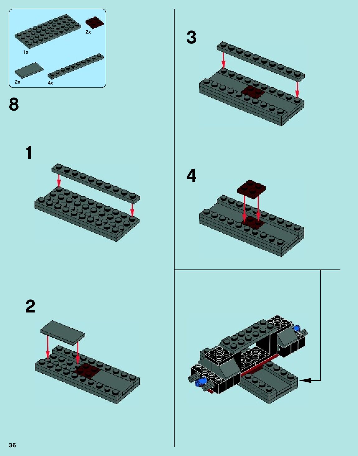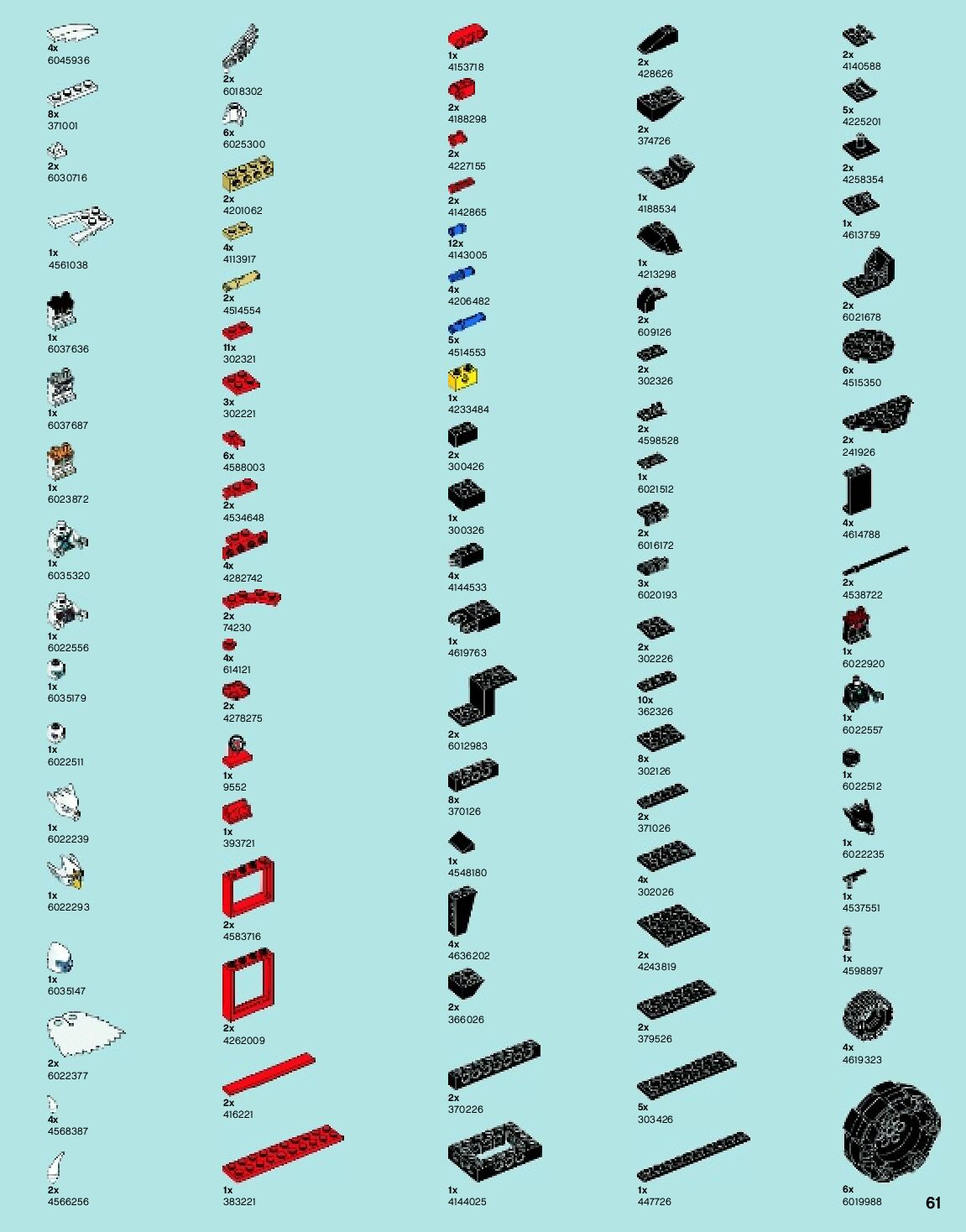 The assembly guide is prepared in a very understandable way for children and adult LEGO enthusiasts. A total of 820 picture galleries are shown, explaining the step-by-step construction stages for 3 different structures.