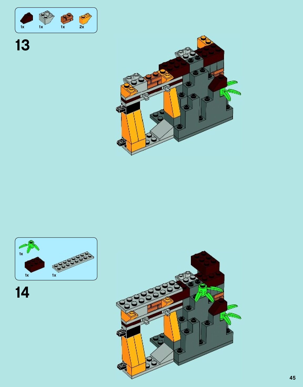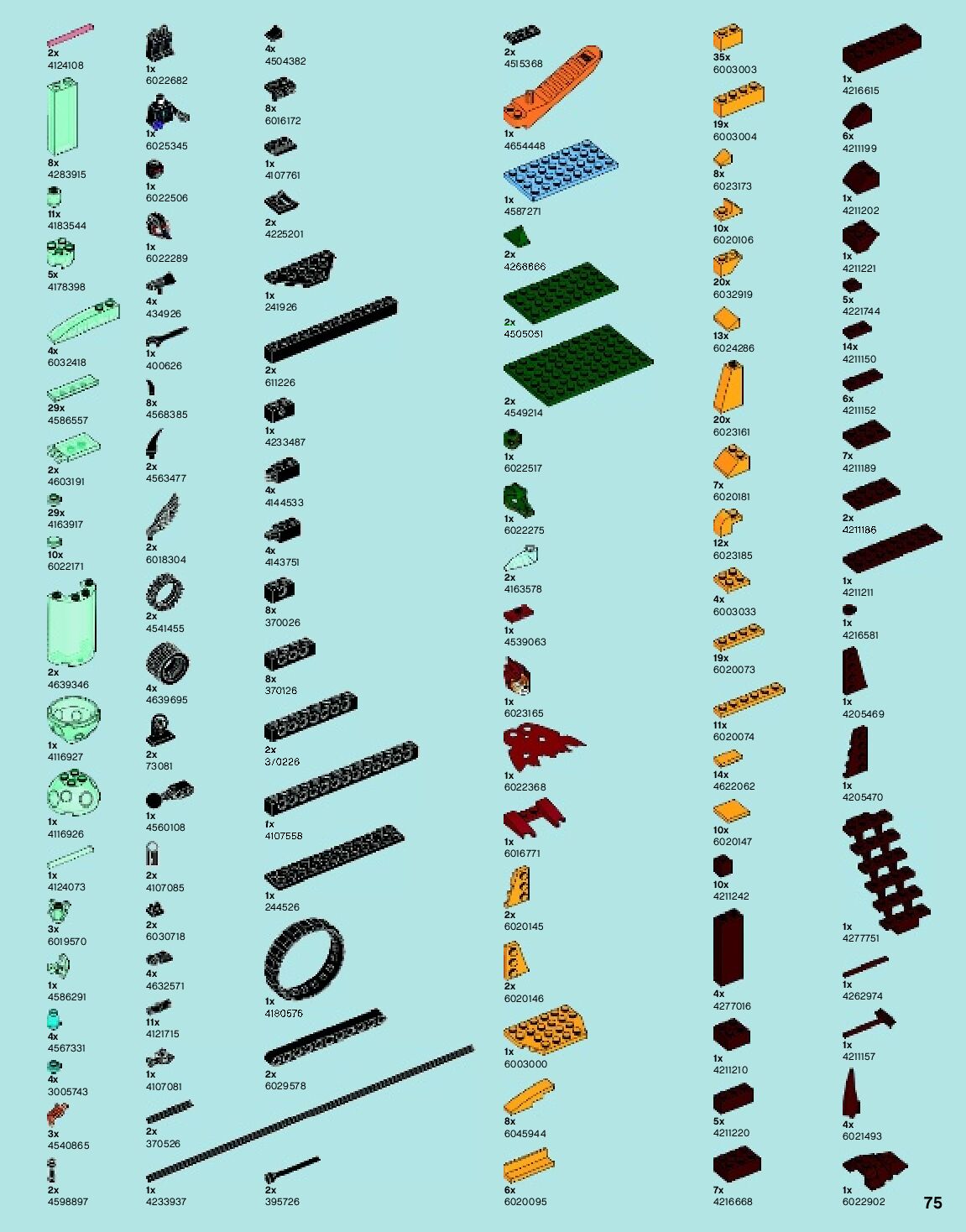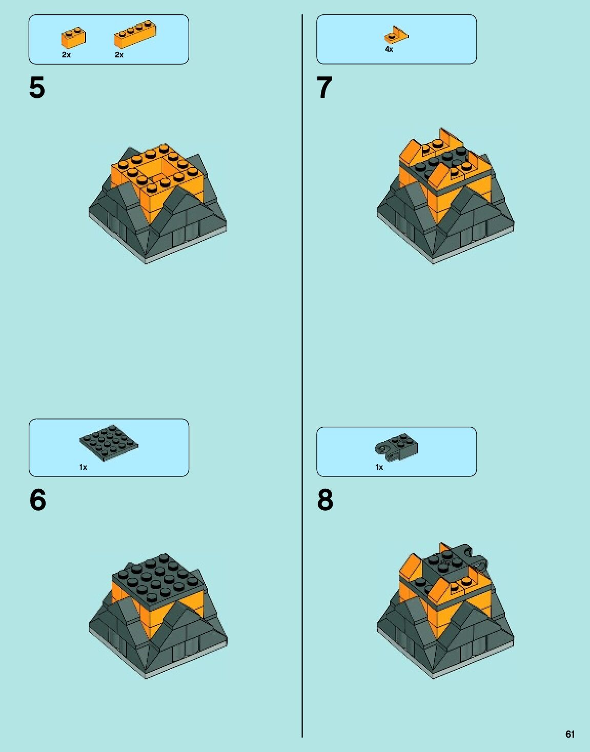 The assembly guide is prepared in a very understandable way for children and adult LEGO enthusiasts. A total of 848 picture galleries are shown, explaining the step-by-step construction stages for 3 different structures.