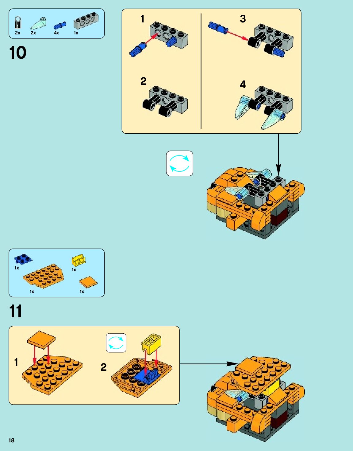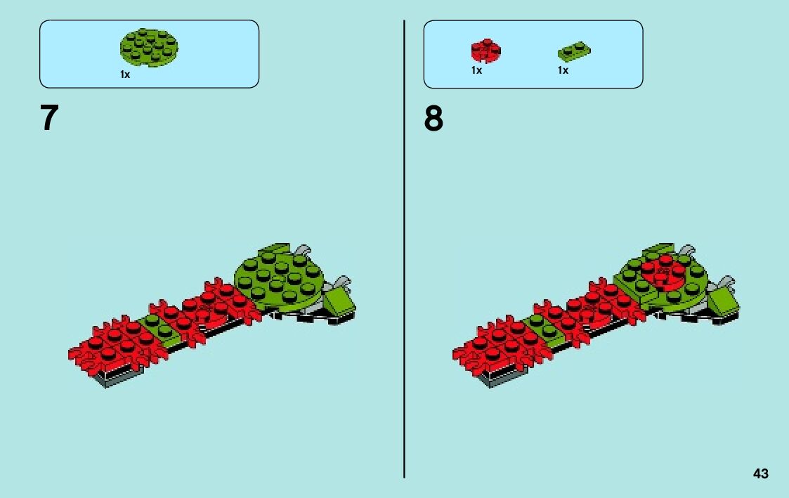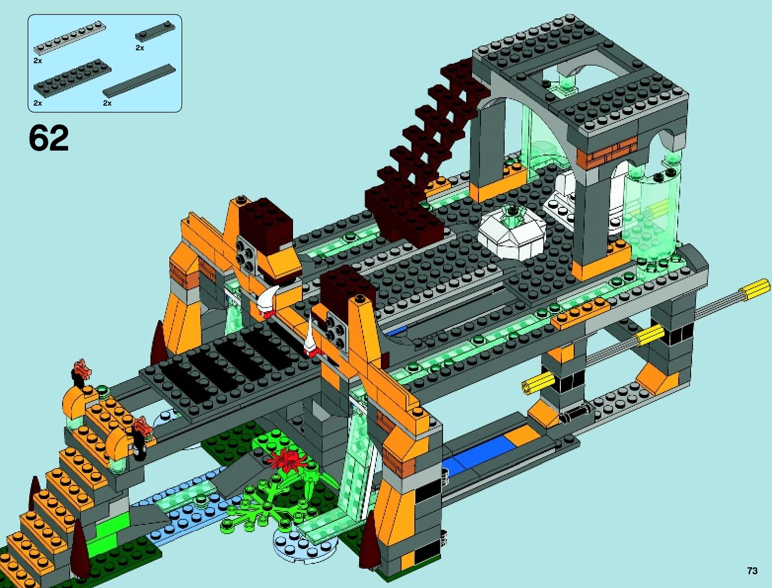 The assembly guide is prepared in a very understandable way for children and adult LEGO enthusiasts. A total of 848 picture galleries are shown, explaining the step-by-step construction stages for 3 different structures.