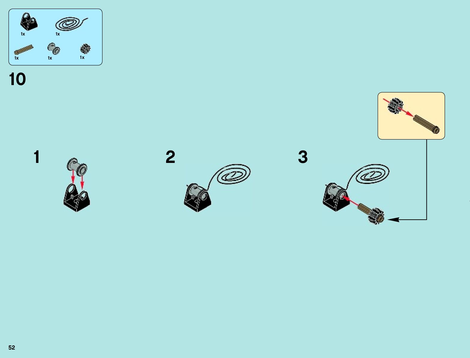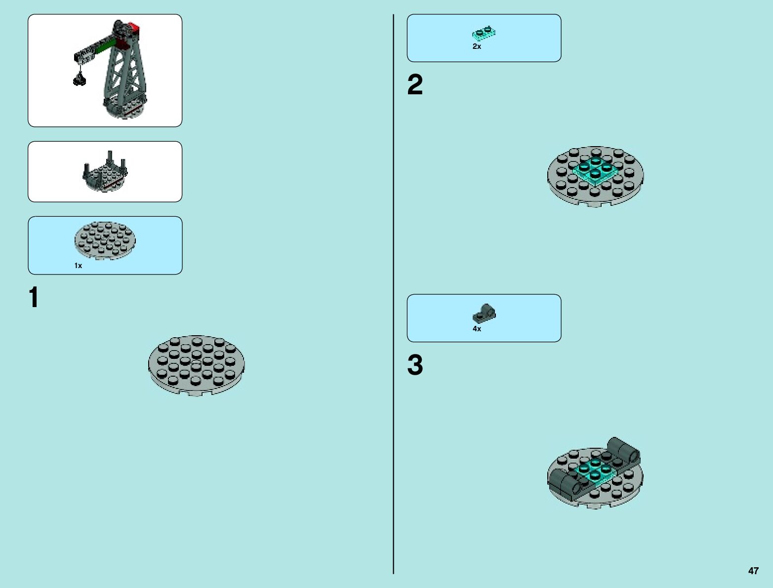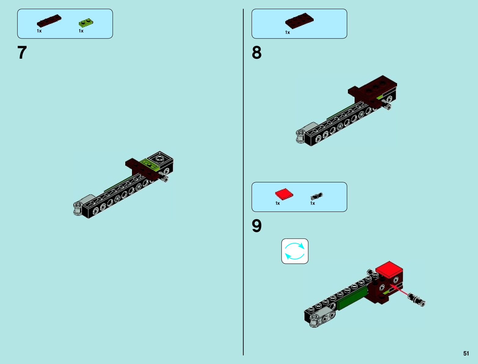 The assembly guide is prepared in a very understandable way for children and adult LEGO enthusiasts. A total of 688 picture galleries are shown, explaining the step-by-step construction stages for 3 different structures.