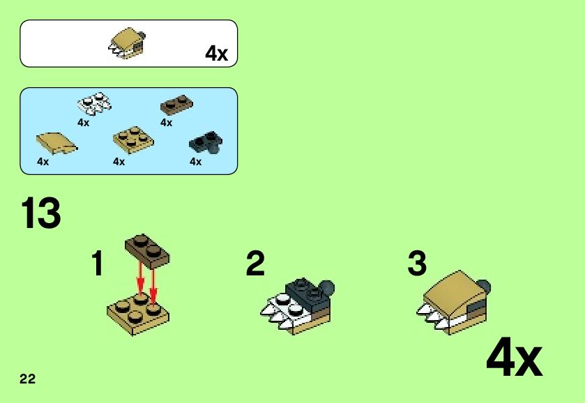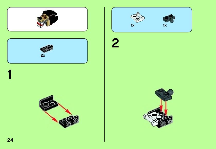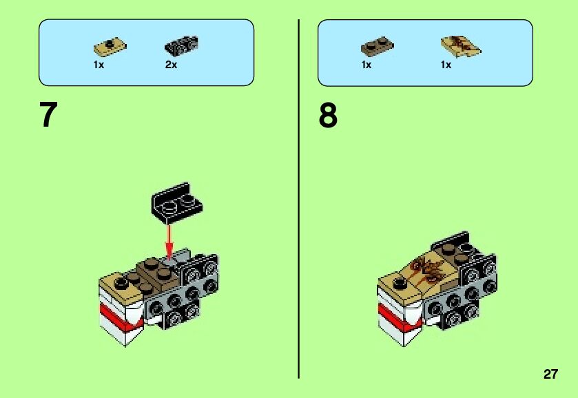 The assembly guide is prepared in a very understandable way for children and adult LEGO enthusiasts. A total of 335 picture galleries are shown, explaining the step-by-step construction stages for 2 different structures.