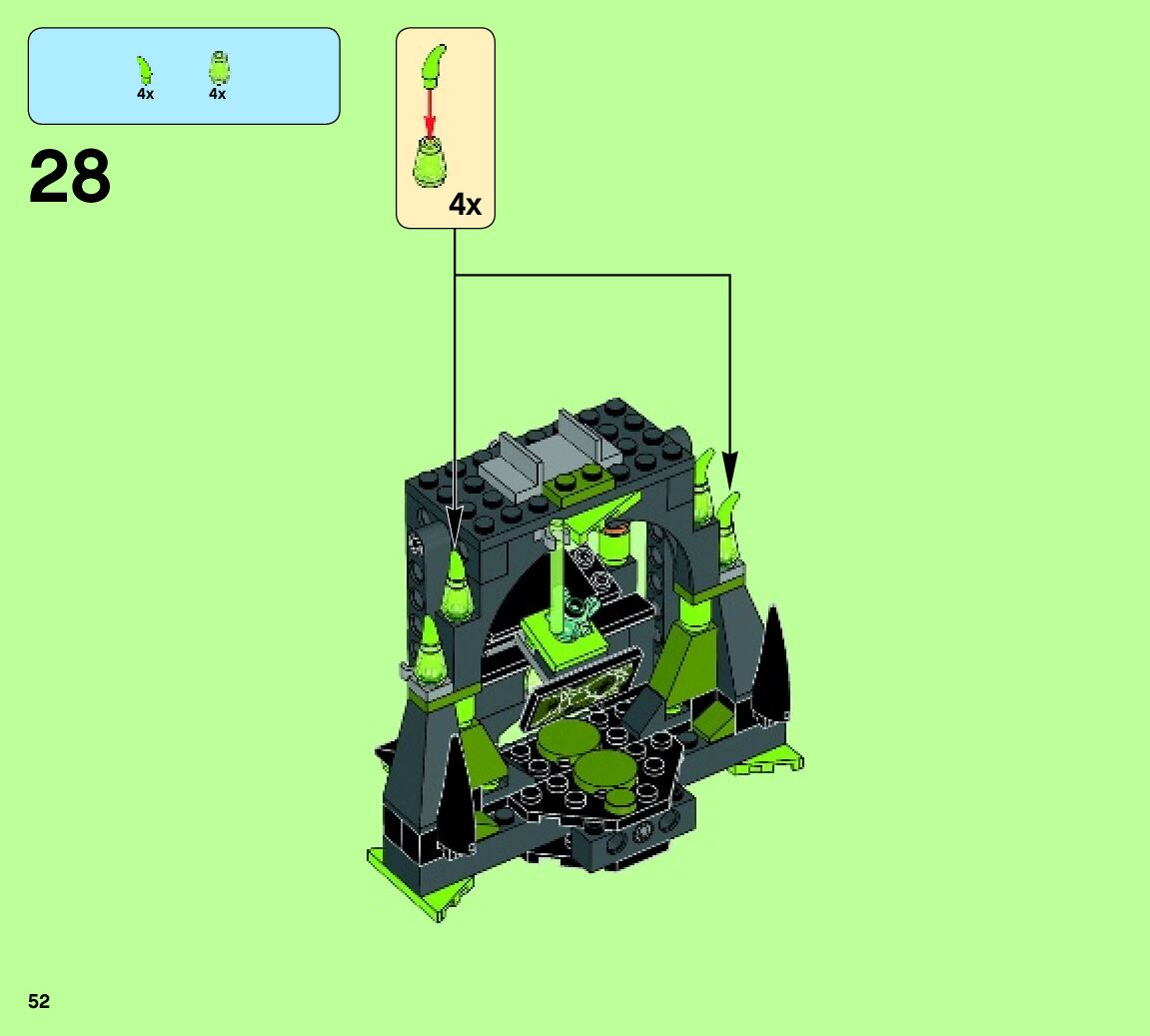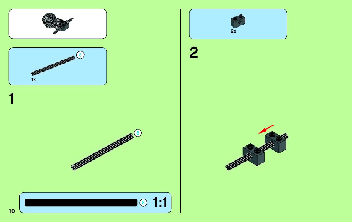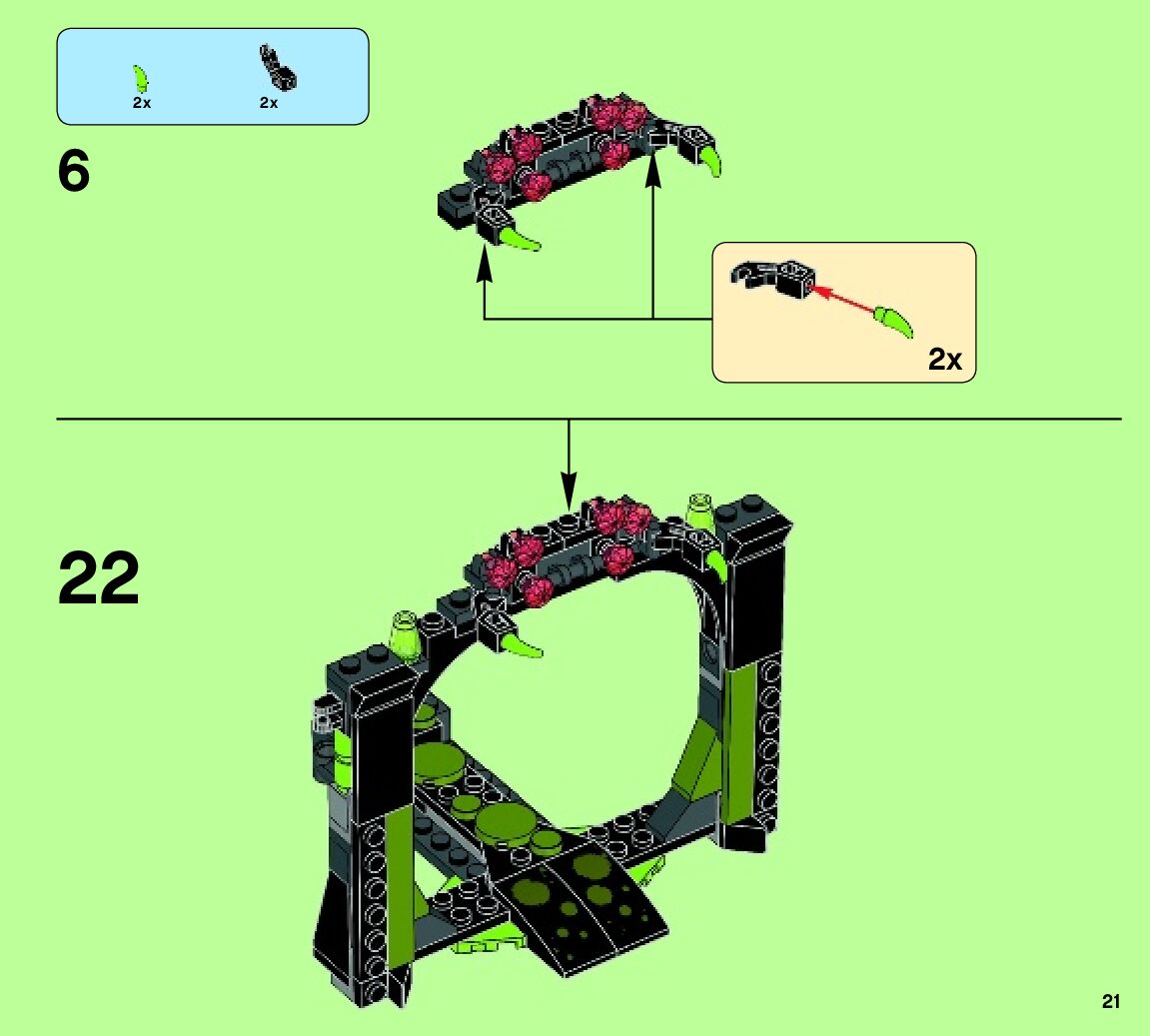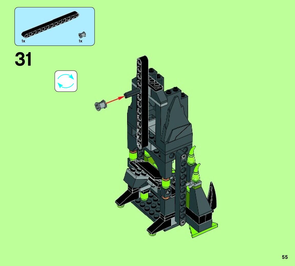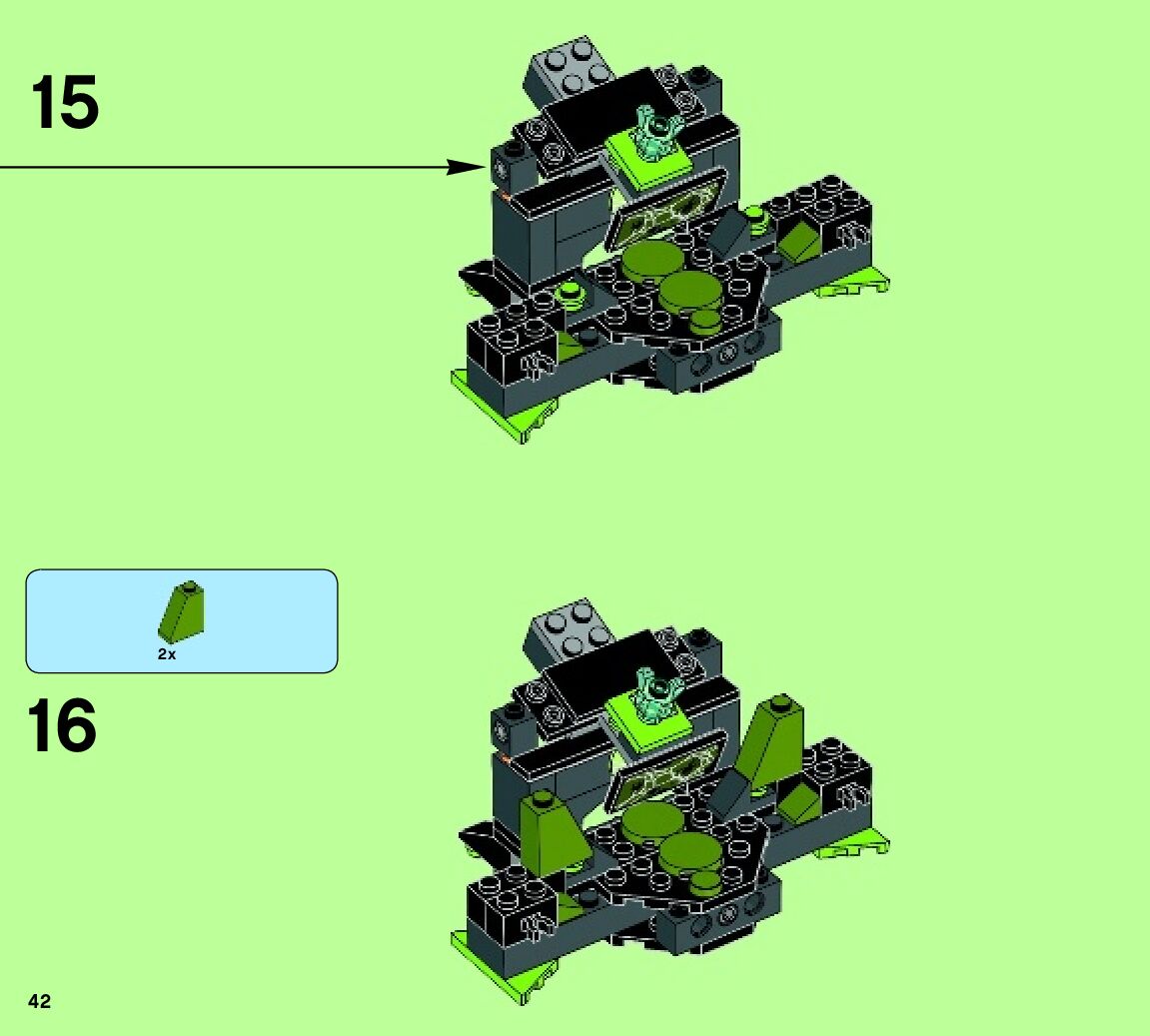 The assembly guide is prepared in a very understandable way for children and adult LEGO enthusiasts. A total of 108 picture galleries are shown, explaining the step-by-step construction stages for 2 different structures.