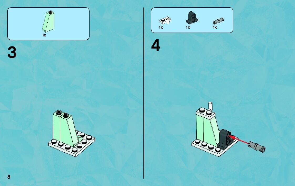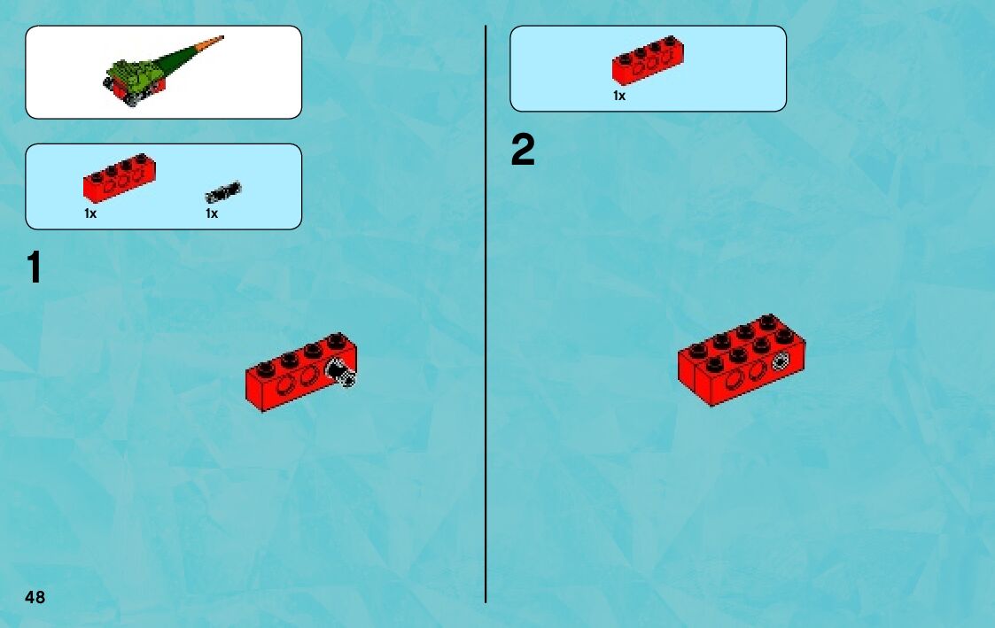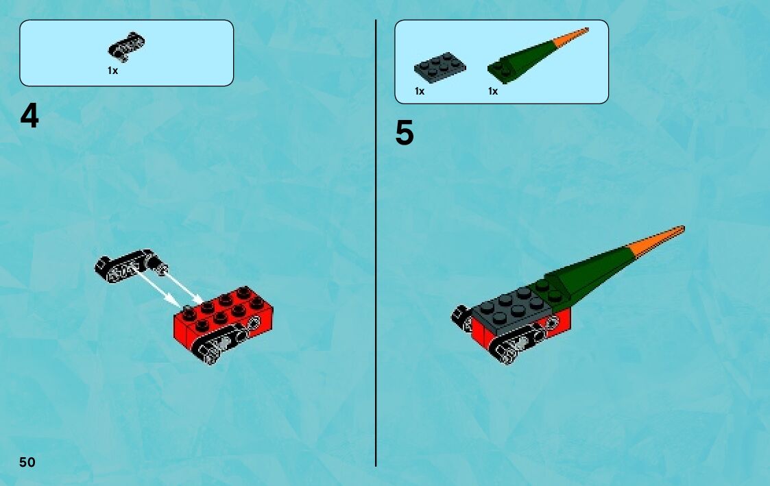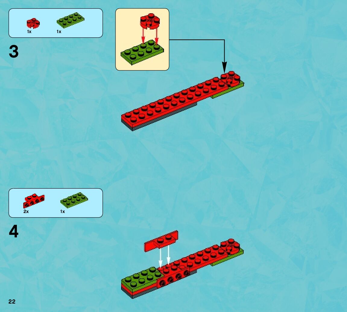 The assembly guide is prepared in a very understandable way for children and adult LEGO enthusiasts. A total of 116 picture galleries are shown, explaining the step-by-step construction stages for 2 different structures.