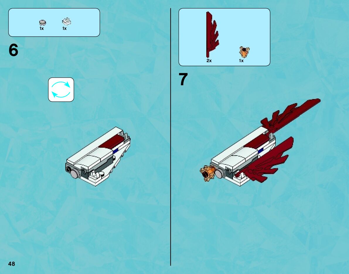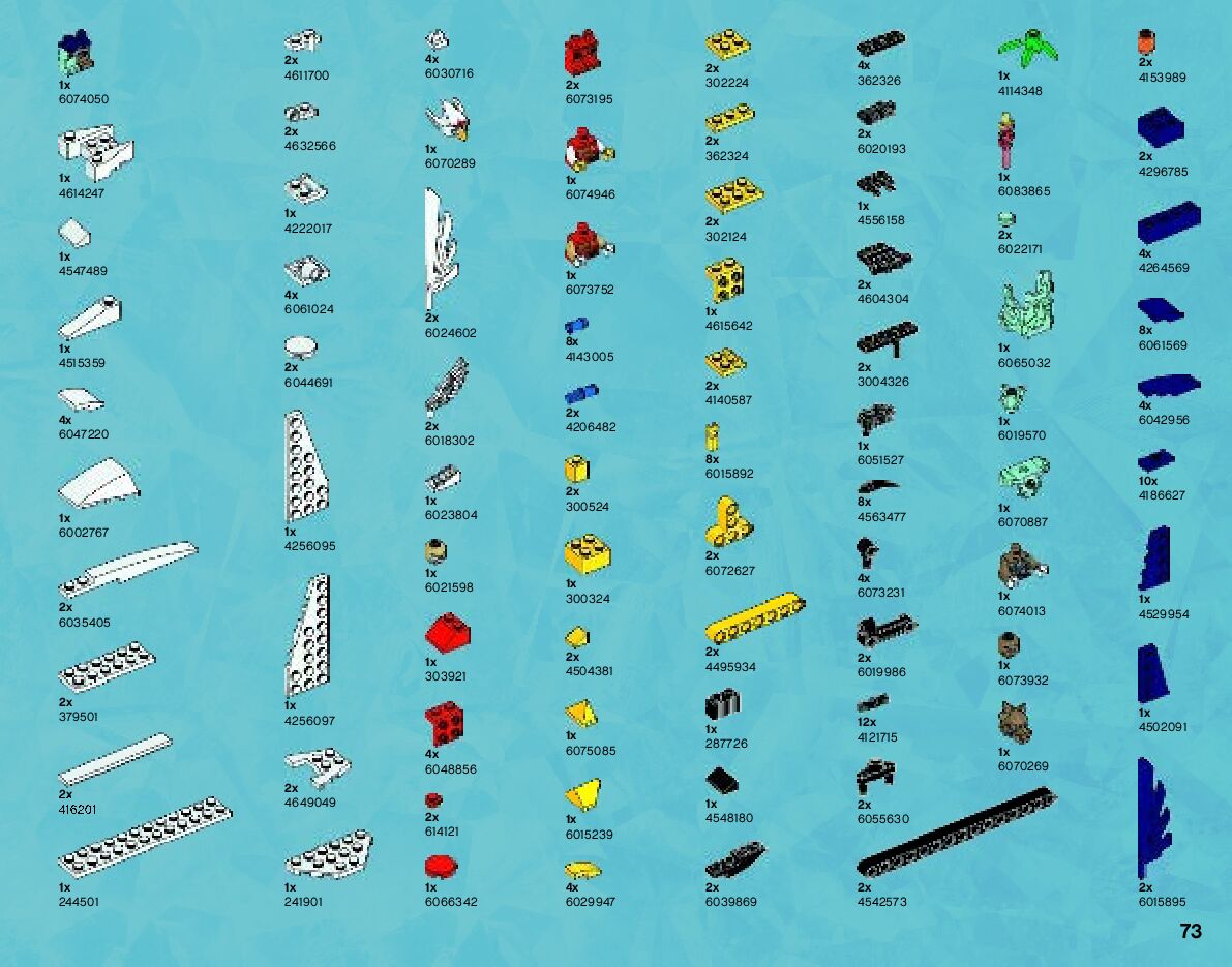 The assembly guide is prepared in a very understandable way for children and adult LEGO enthusiasts. A total of 84 picture galleries are shown, explaining the step-by-step construction stages for 1 different structures.