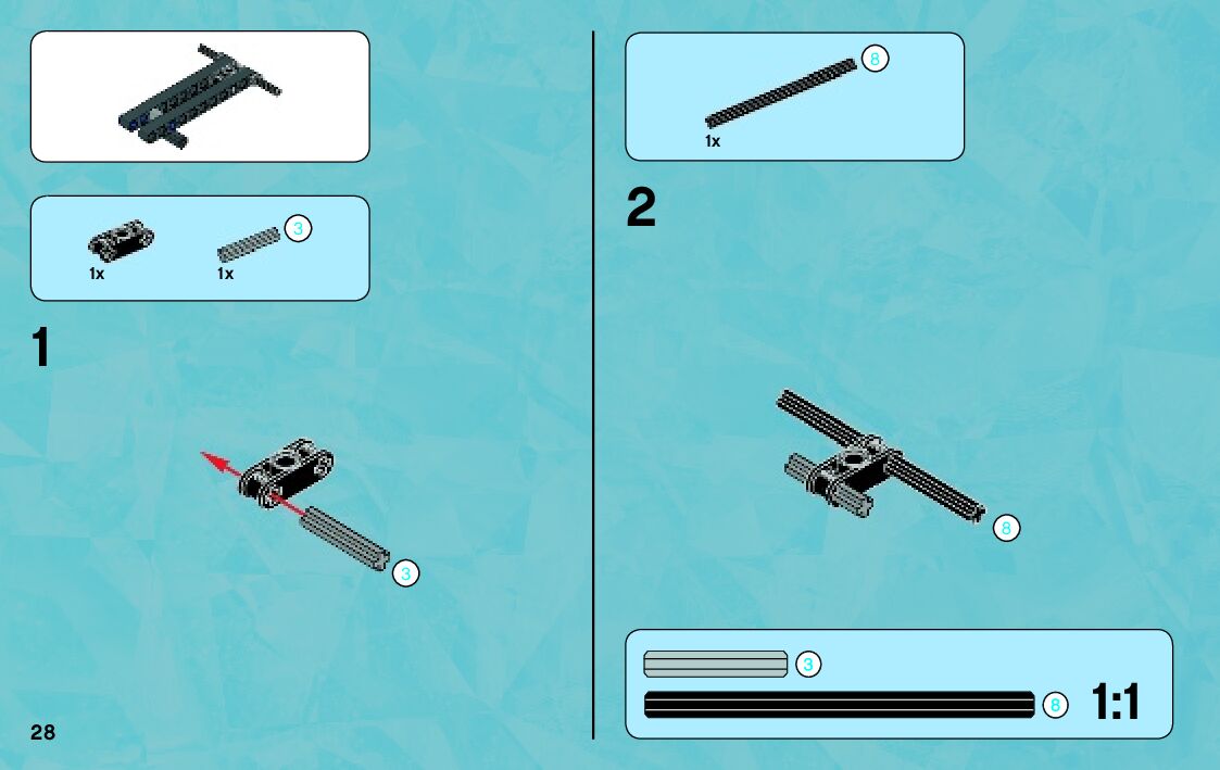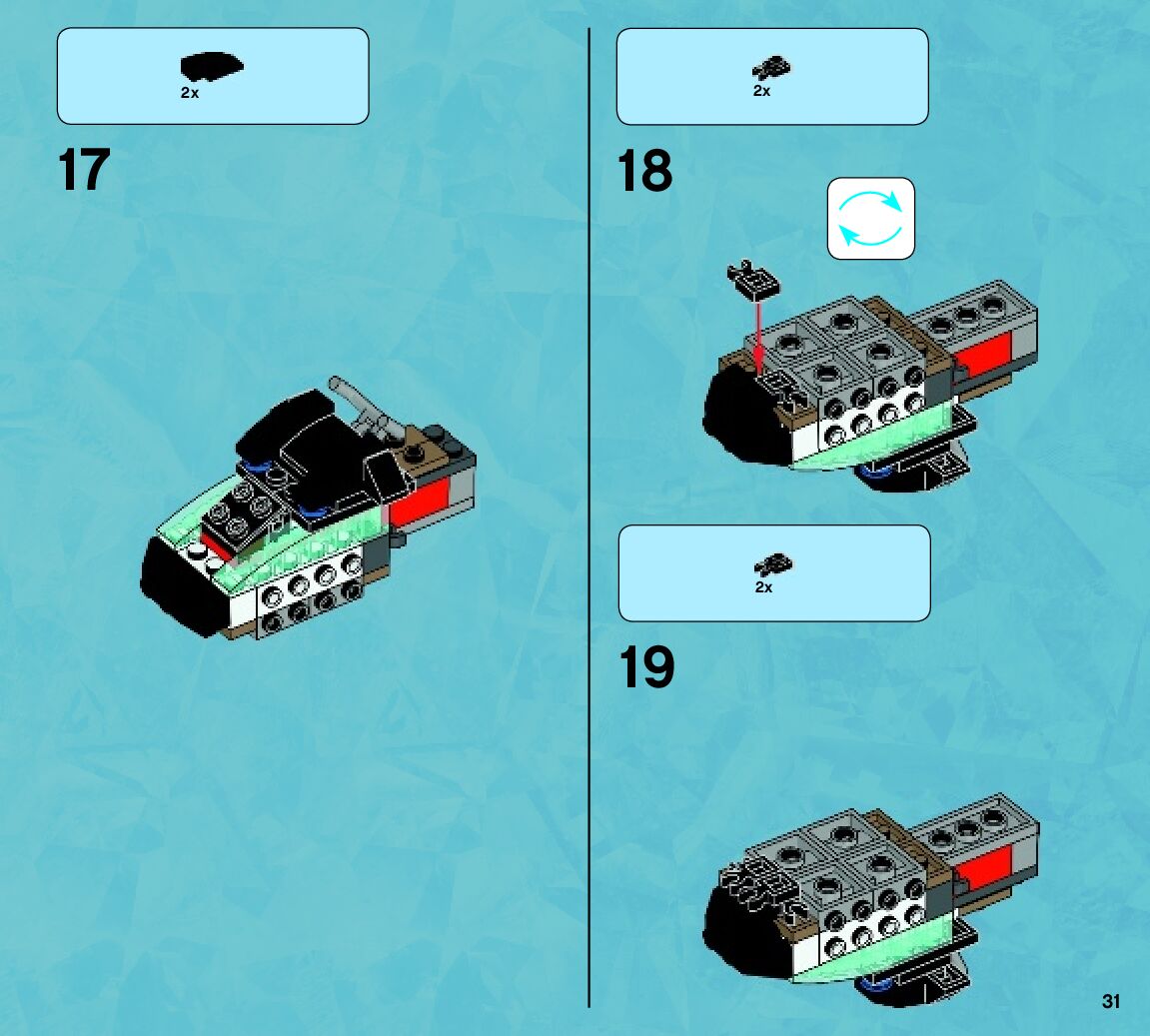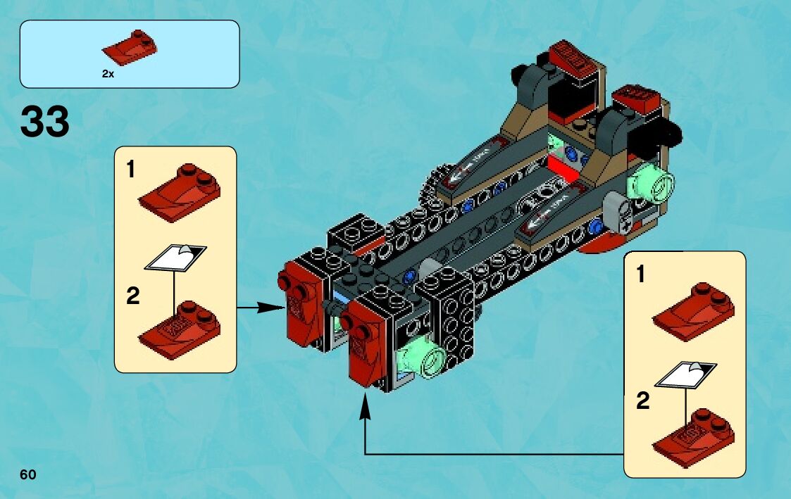 The assembly guide is prepared in a very understandable way for children and adult LEGO enthusiasts. A total of 132 picture galleries are shown, explaining the step-by-step construction stages for 2 different structures.