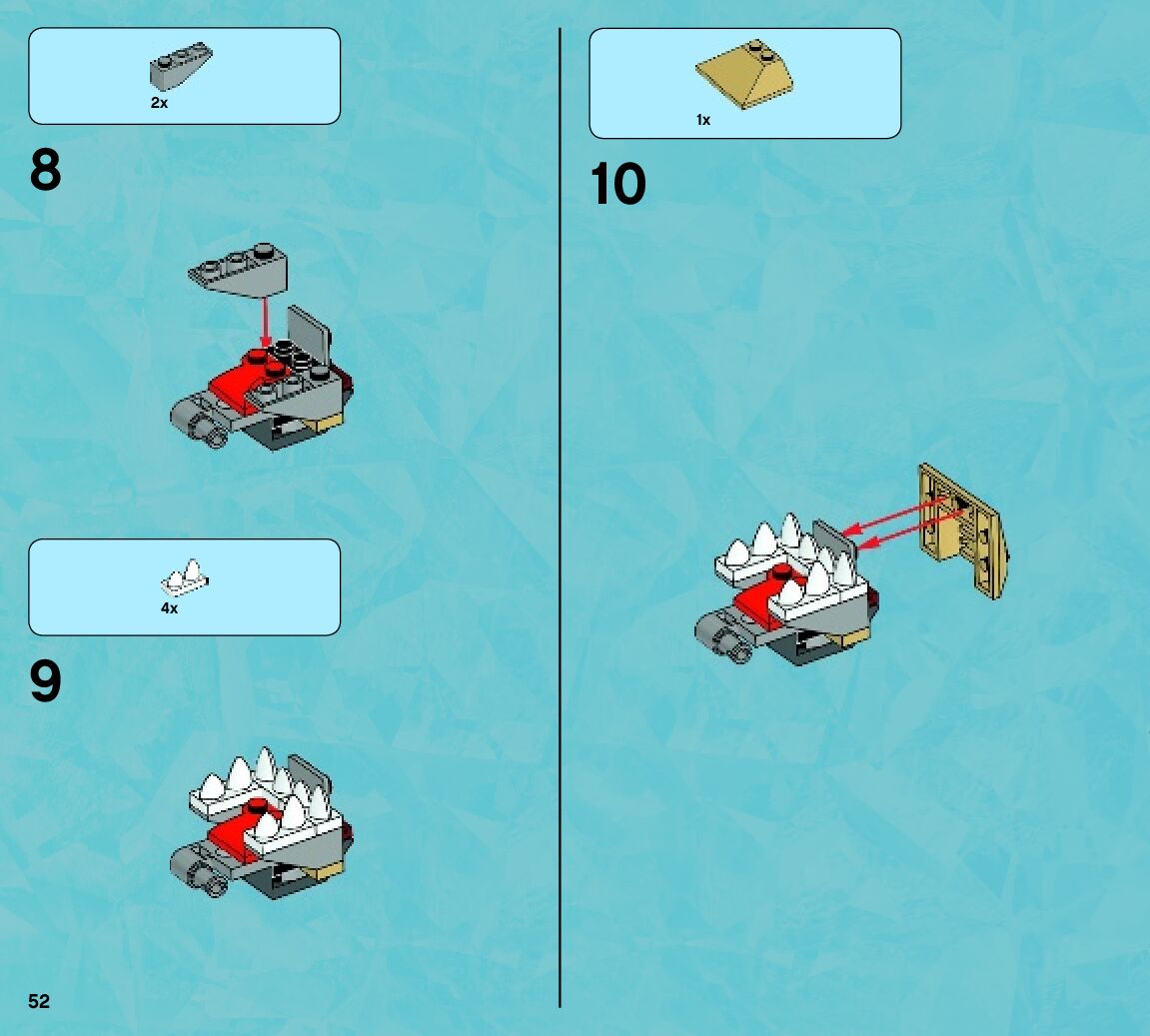 The assembly guide is prepared in a very understandable way for children and adult LEGO enthusiasts. A total of 720 picture galleries are shown, explaining the step-by-step construction stages for 2 different structures.