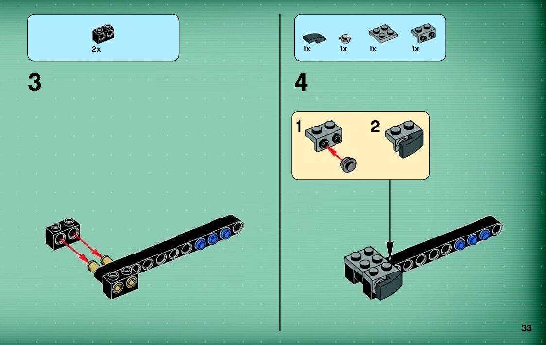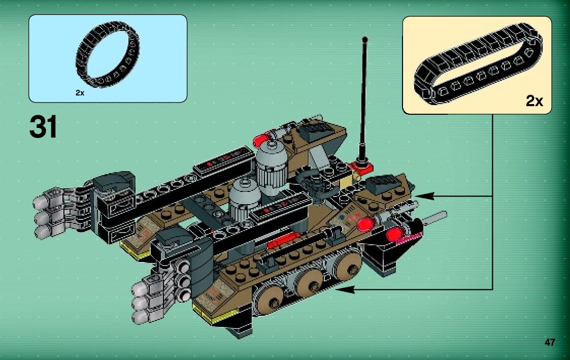 The assembly guide is prepared in a very understandable way for children and adult LEGO enthusiasts. A total of 68 picture galleries are shown, explaining the step-by-step construction stages for 2 different structures.