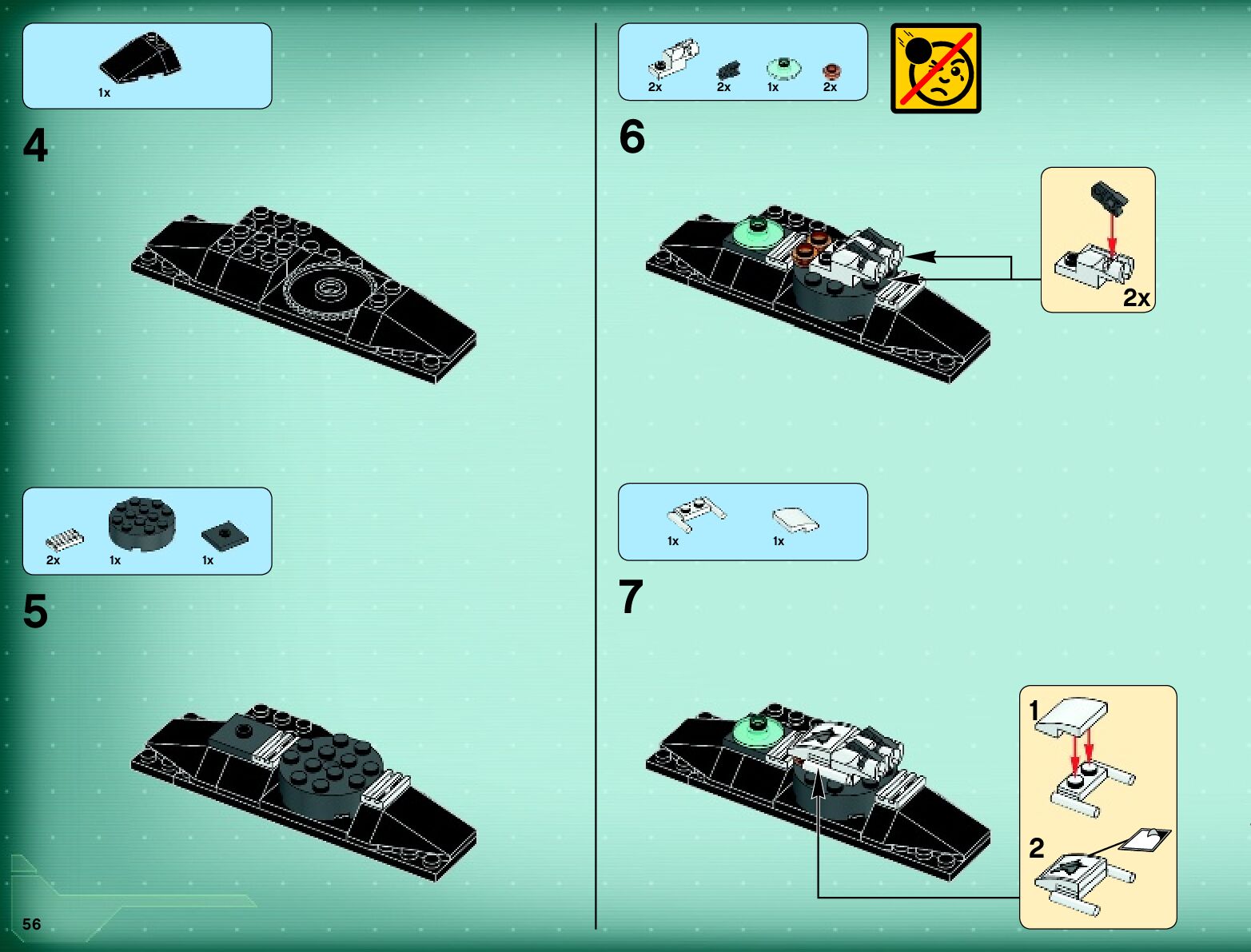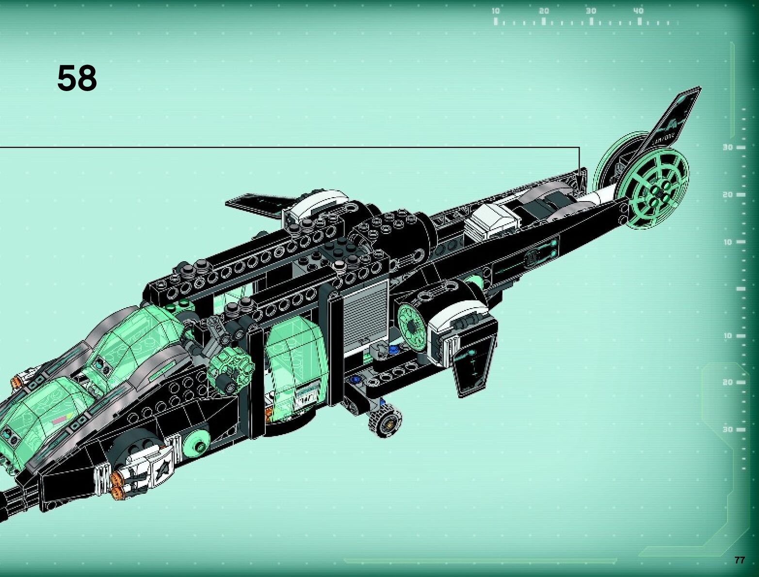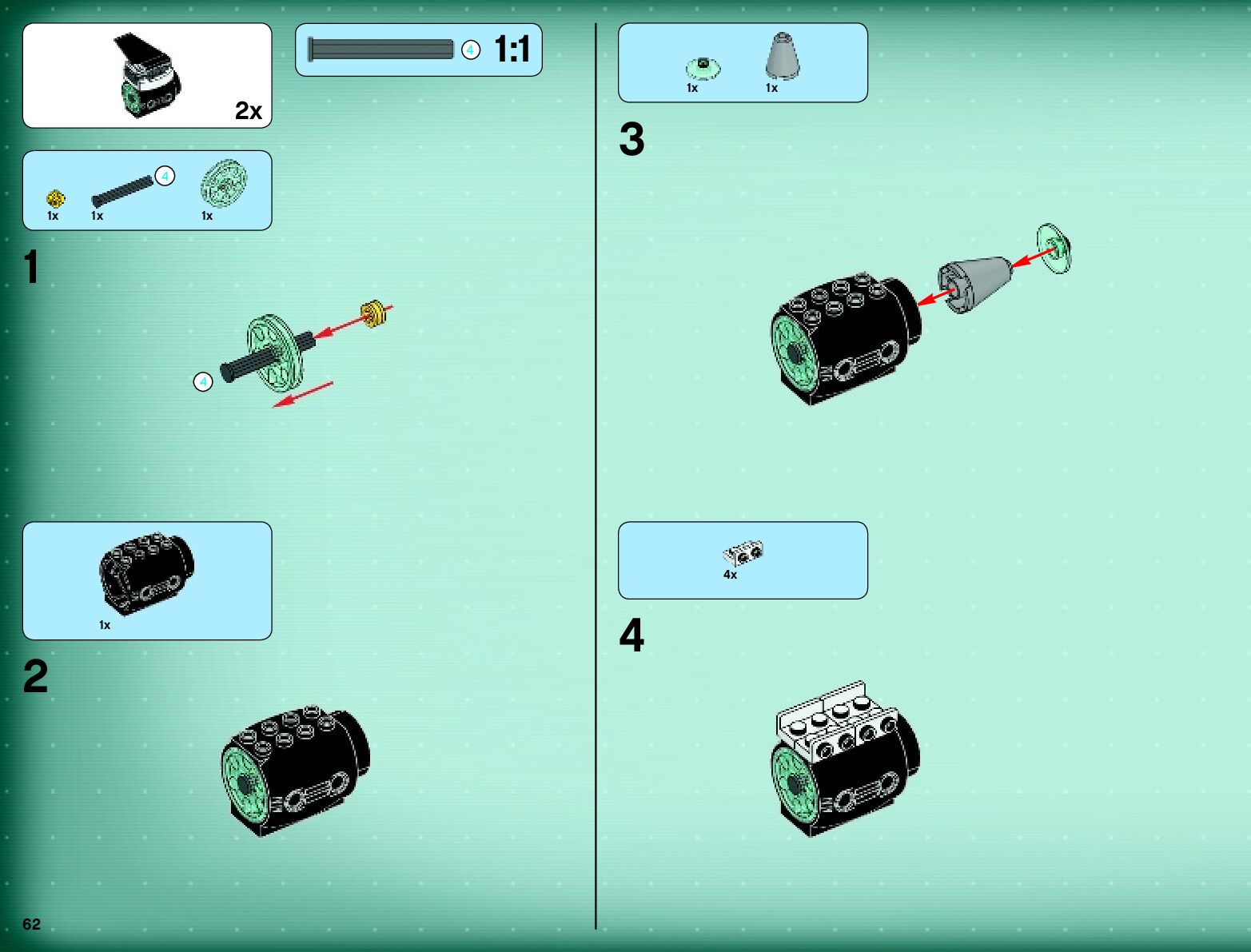 The assembly guide is prepared in a very understandable way for children and adult LEGO enthusiasts. A total of 104 picture galleries are shown, explaining the step-by-step construction stages for 1 different structures.