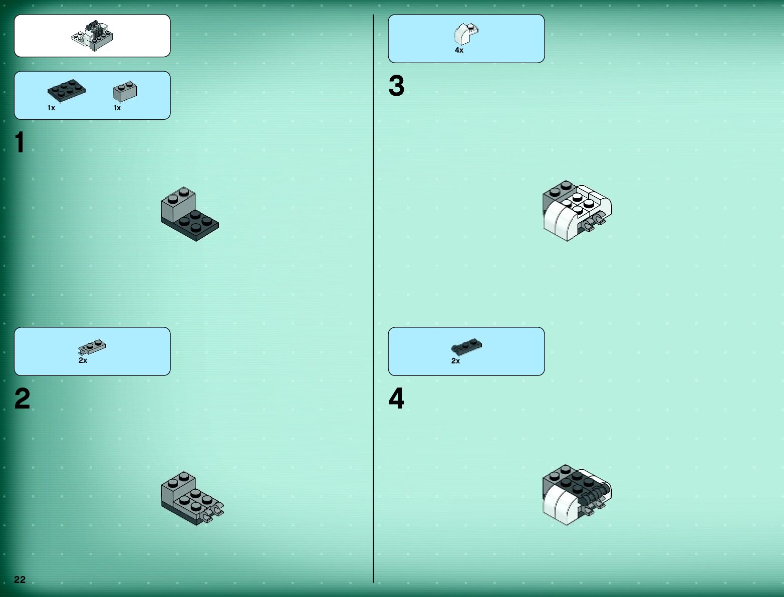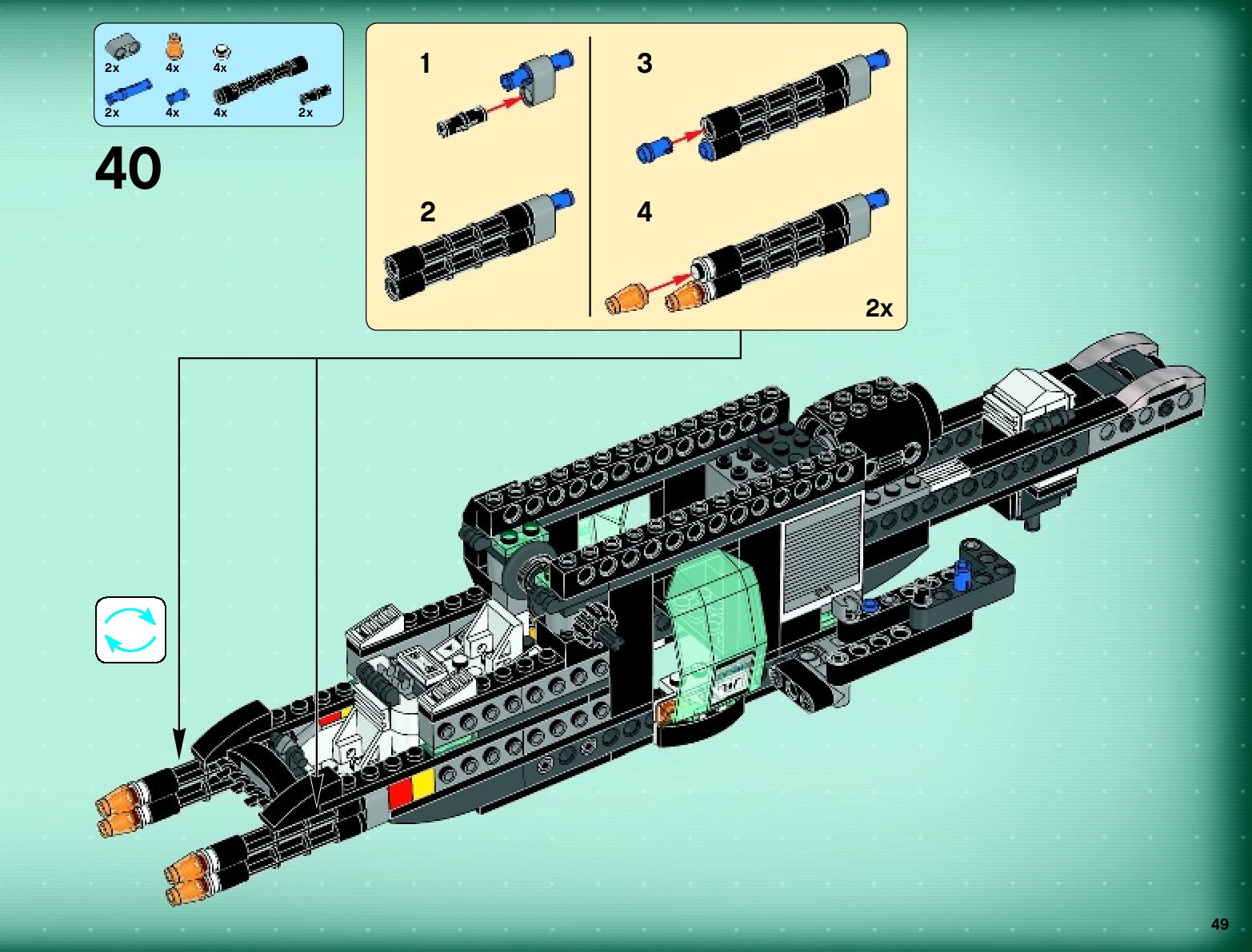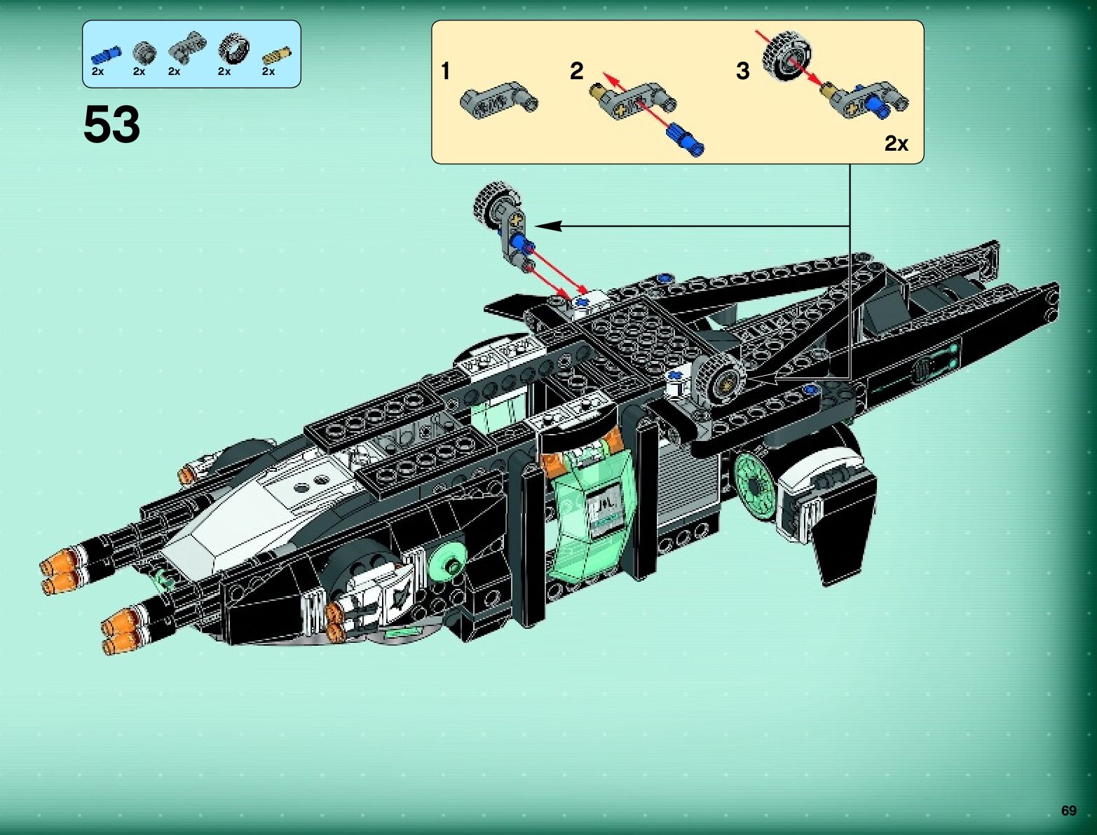 The assembly guide is prepared in a very understandable way for children and adult LEGO enthusiasts. A total of 104 picture galleries are shown, explaining the step-by-step construction stages for 1 different structures.