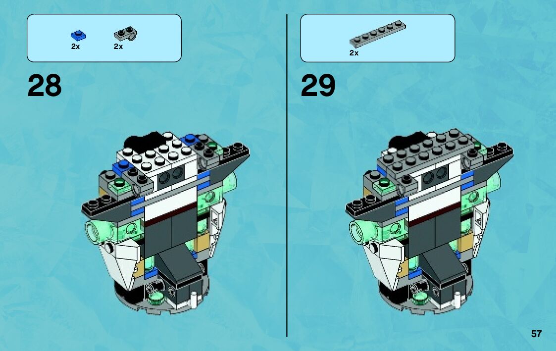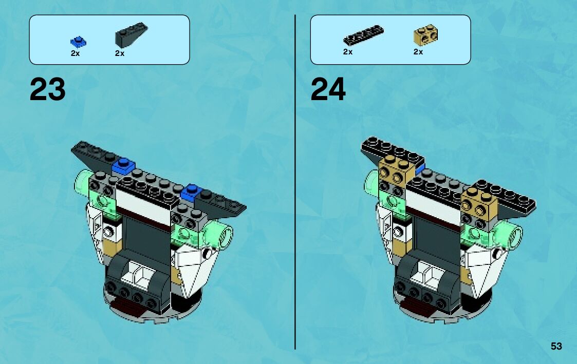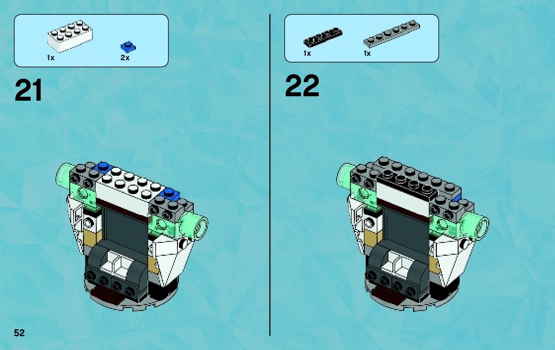 The assembly guide is prepared in a very understandable way for children and adult LEGO enthusiasts. A total of 680 picture galleries are shown, explaining the step-by-step construction stages for 2 different structures.