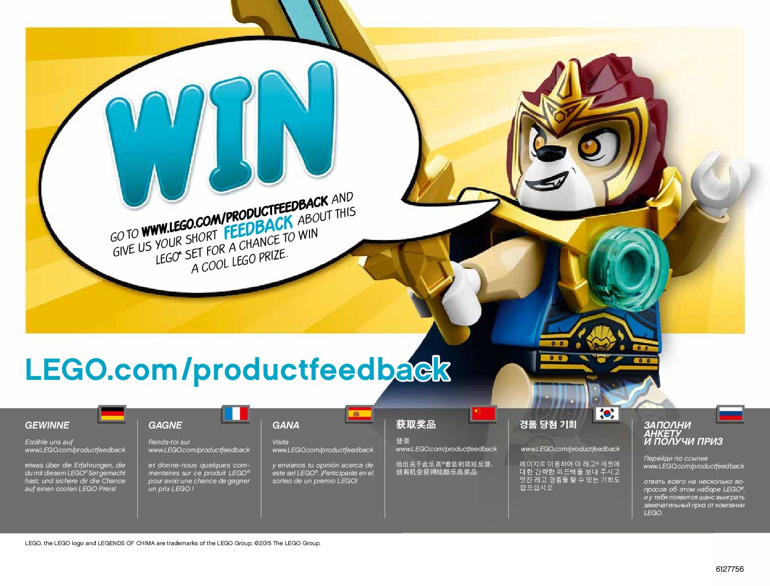 On this page you can find the original construction manual for the LEGO 70227 set. With the assembly manual you can easily learn how to build the 70227 King Crominus' Rescue step by step. The set was released in 2015.