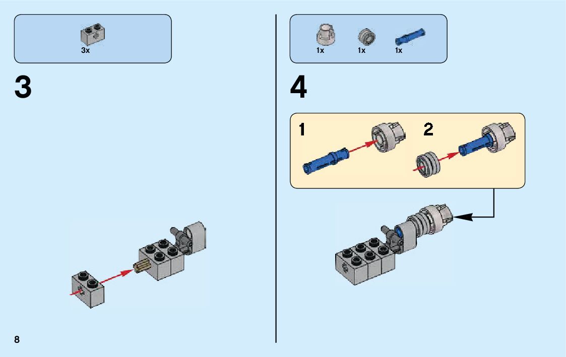 The assembly guide is prepared in a very understandable way for children and adult LEGO enthusiasts. A total of 520 picture galleries are shown, explaining the step-by-step construction stages for 2 different structures.