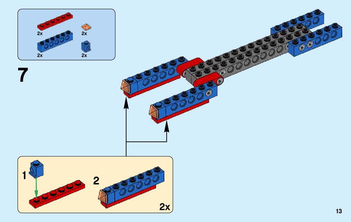 The assembly guide is prepared in a very understandable way for children and adult LEGO enthusiasts. A total of 76 picture galleries are shown, explaining the step-by-step construction stages for 2 different structures.