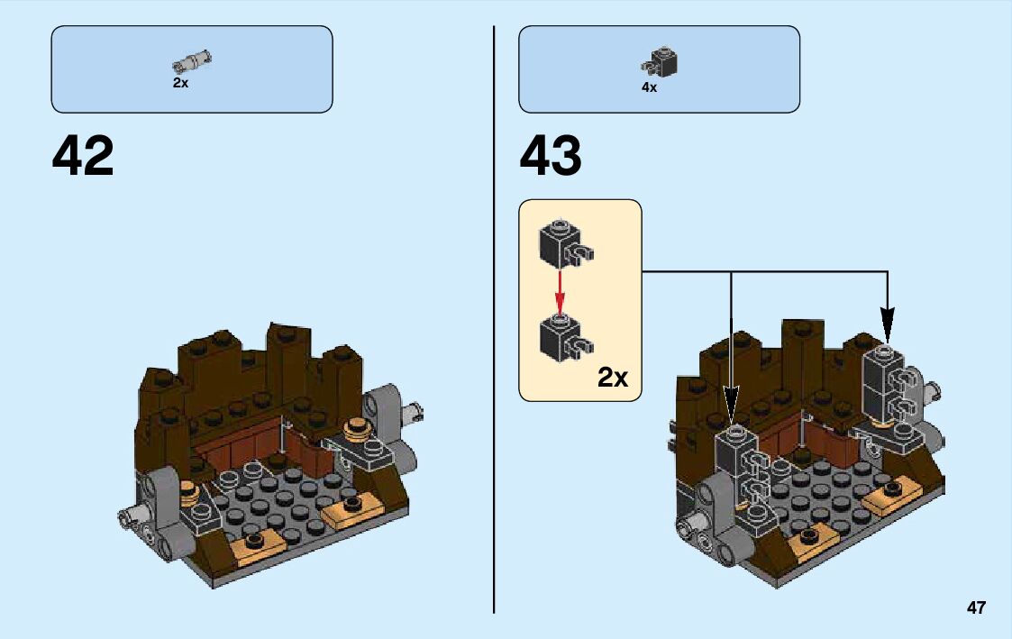 The assembly guide is prepared in a very understandable way for children and adult LEGO enthusiasts. A total of 864 picture galleries are shown, explaining the step-by-step construction stages for 2 different structures.