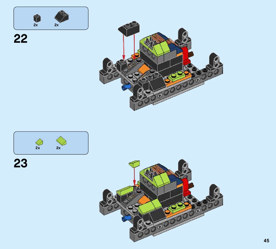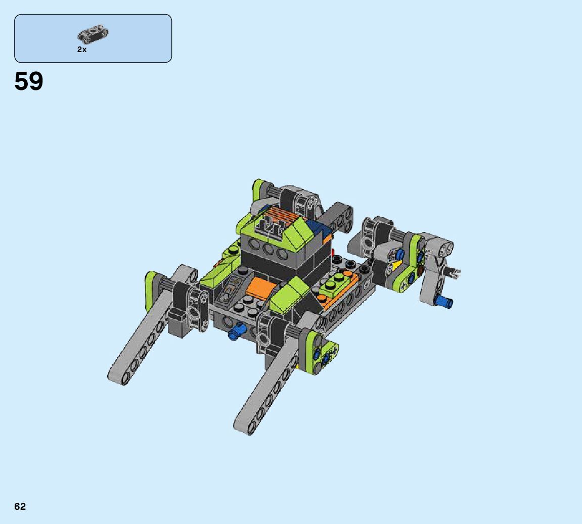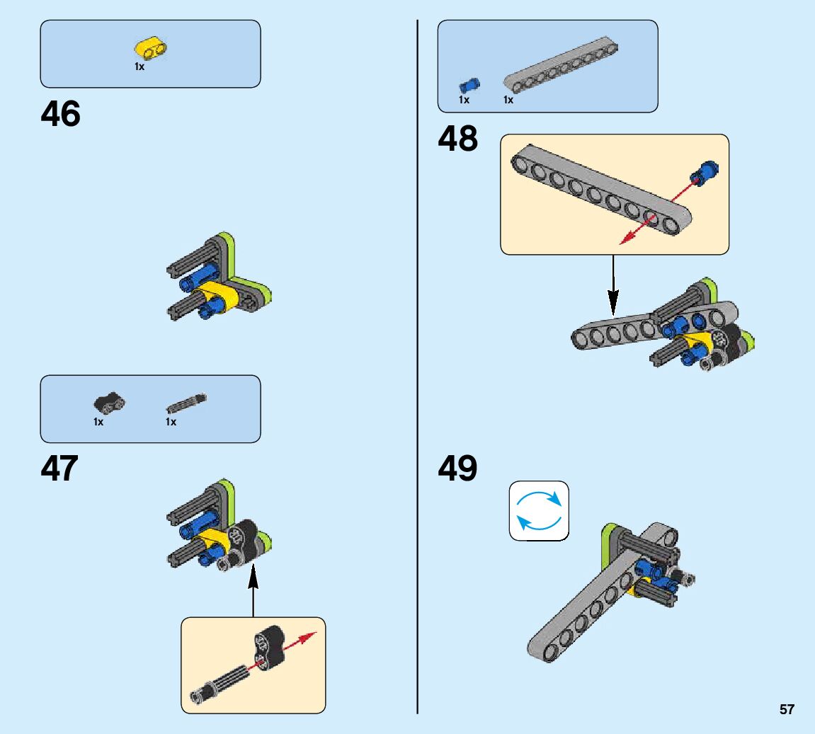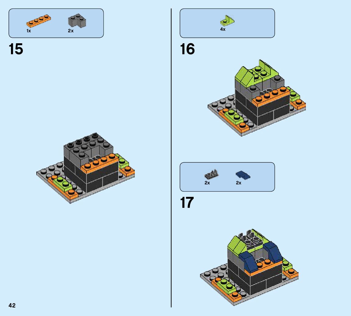 The assembly guide is prepared in a very understandable way for children and adult LEGO enthusiasts. A total of 136 picture galleries are shown, explaining the step-by-step construction stages for 2 different structures.