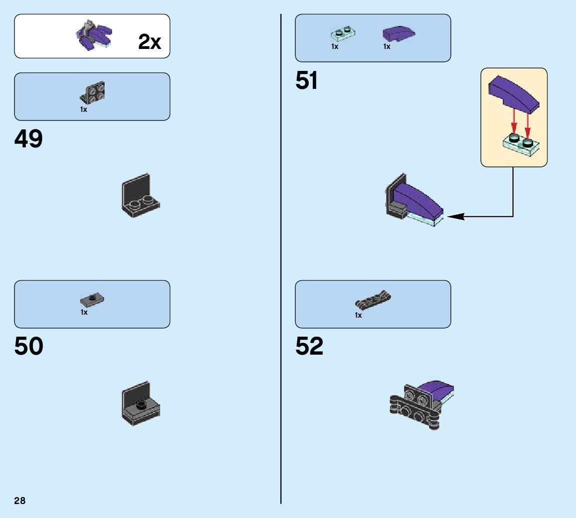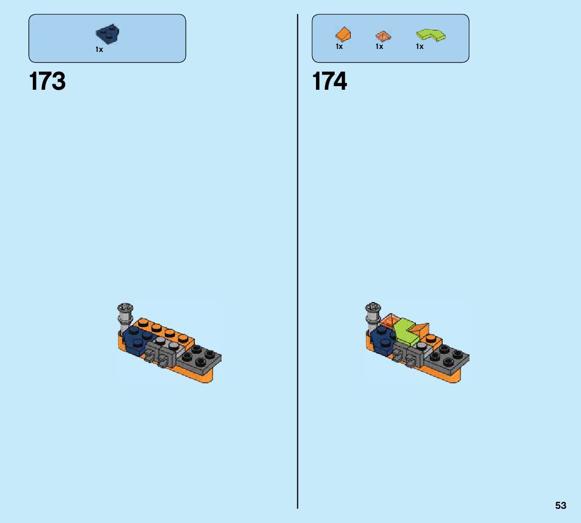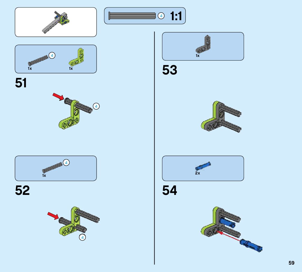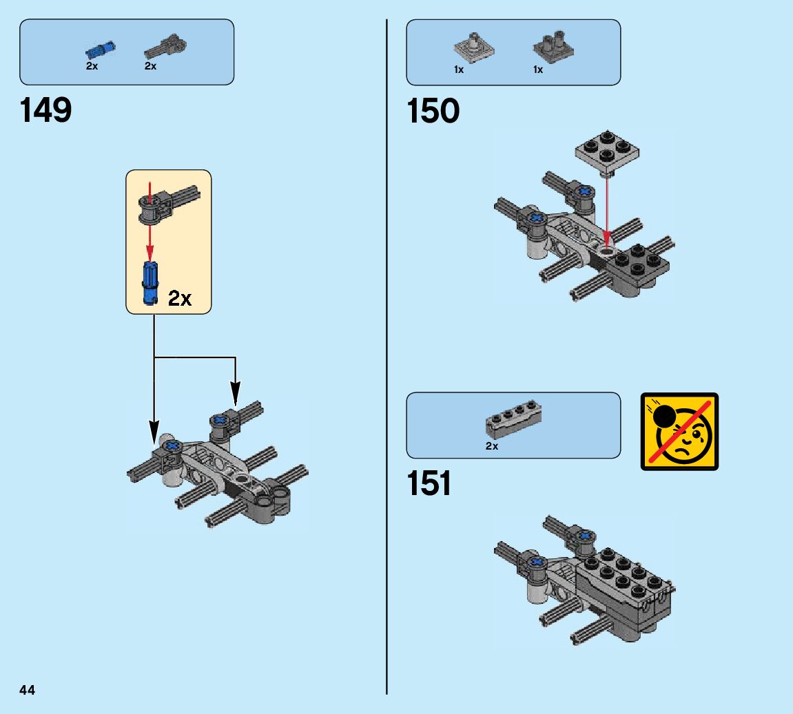 The assembly guide is prepared in a very understandable way for children and adult LEGO enthusiasts. A total of 136 picture galleries are shown, explaining the step-by-step construction stages for 2 different structures.