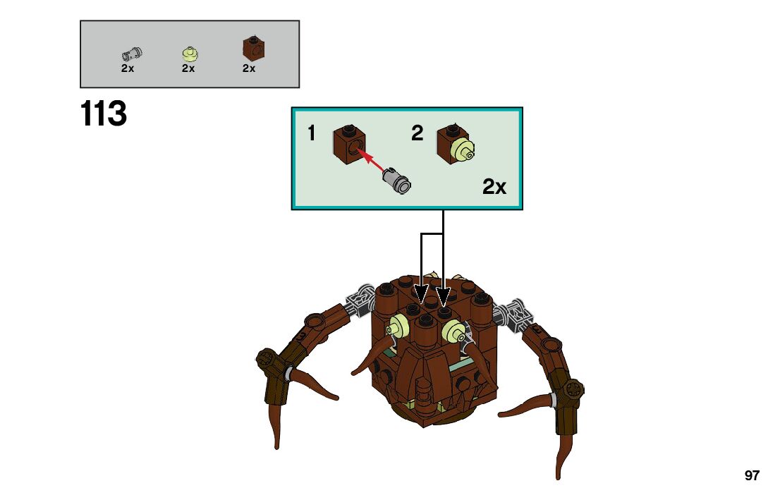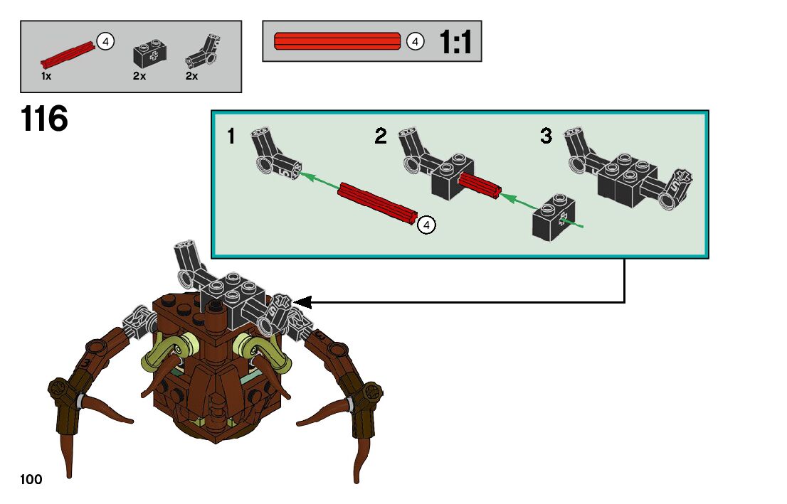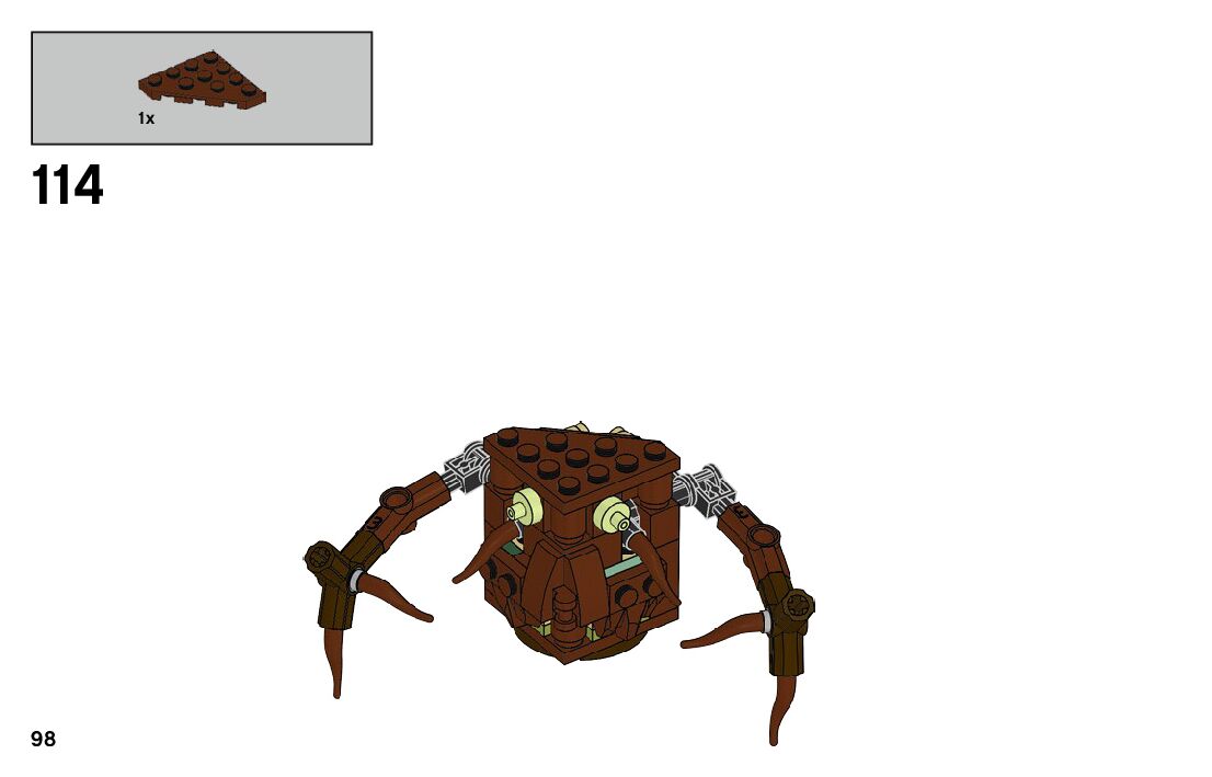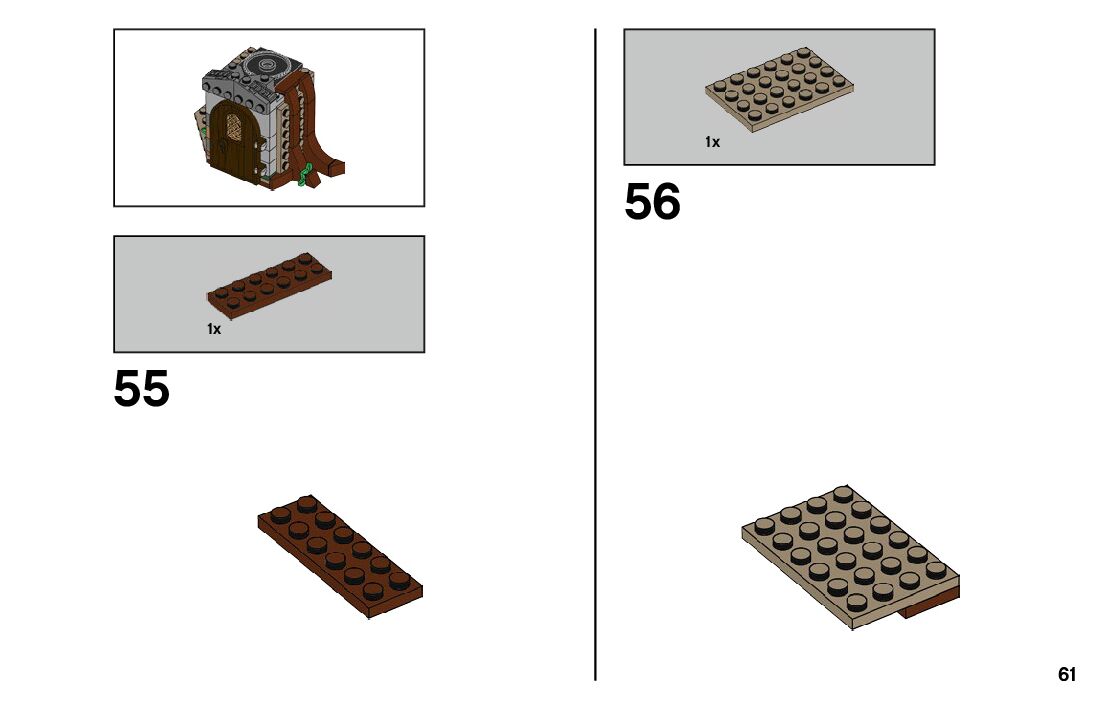 The assembly guide is prepared in a very understandable way for children and adult LEGO enthusiasts. A total of 112 picture galleries are shown, explaining the step-by-step construction stages for 1 different structures.