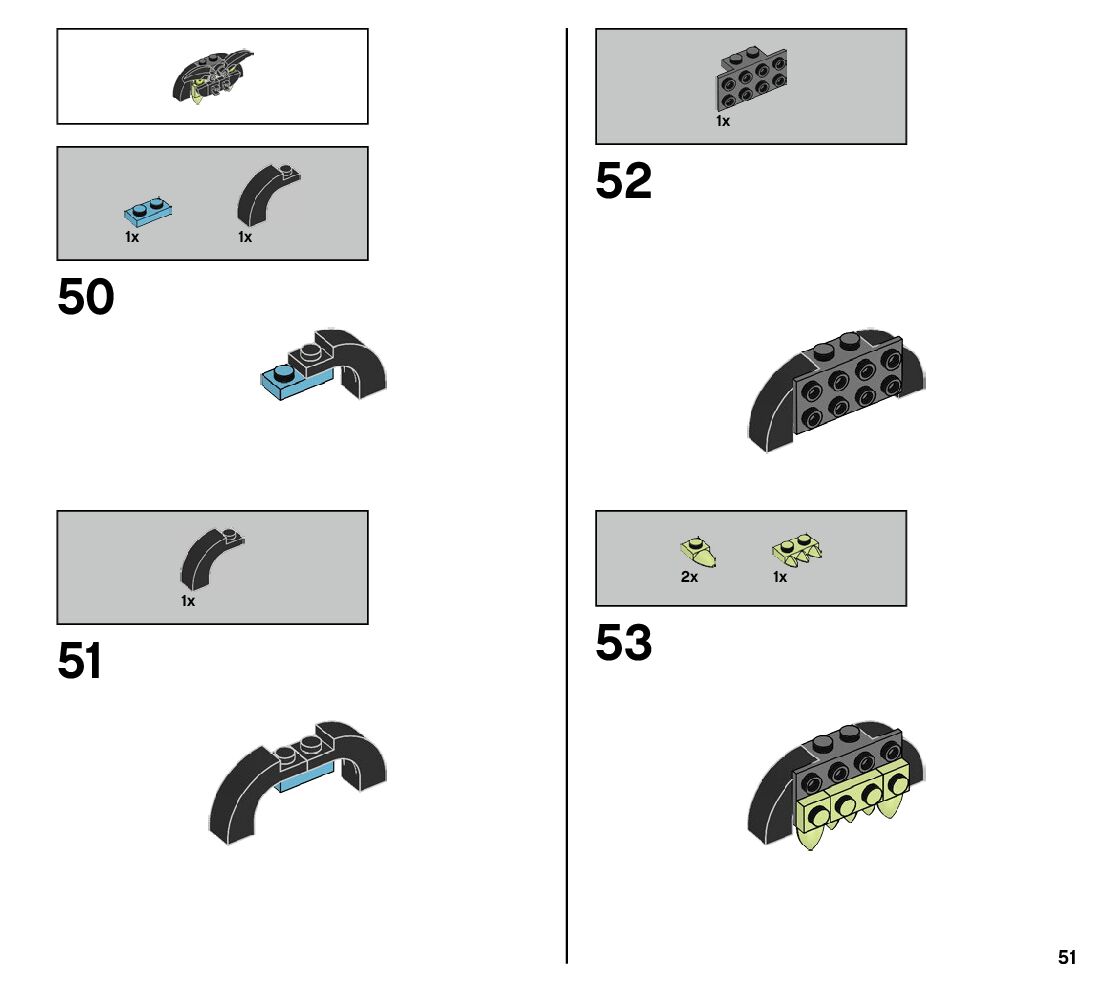 The assembly guide is prepared in a very understandable way for children and adult LEGO enthusiasts. A total of 68 picture galleries are shown, explaining the step-by-step construction stages for 1 different structures.
