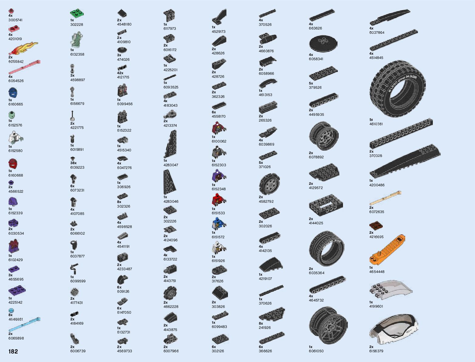The assembly guide is prepared in a very understandable way for children and adult LEGO enthusiasts. A total of 184 picture galleries are shown, explaining the step-by-step construction stages for 1 different structures.