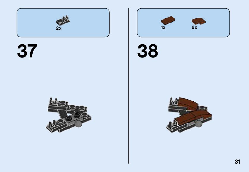 The assembly guide is prepared in a very understandable way for children and adult LEGO enthusiasts. A total of 40 picture galleries are shown, explaining the step-by-step construction stages for 1 different structures.