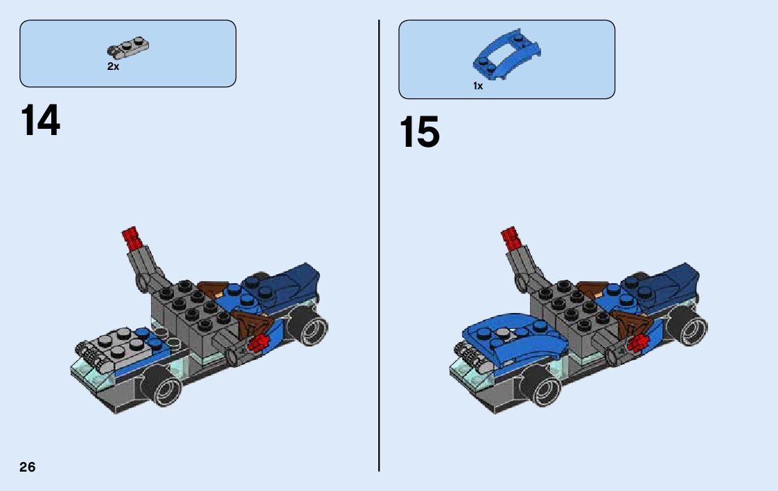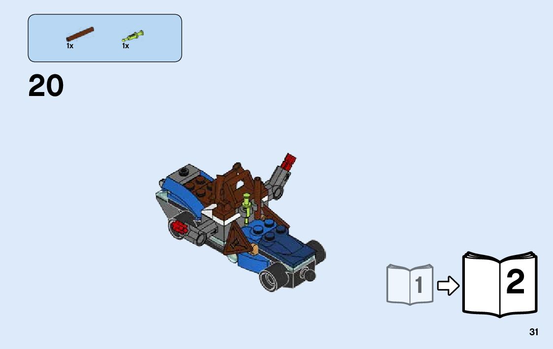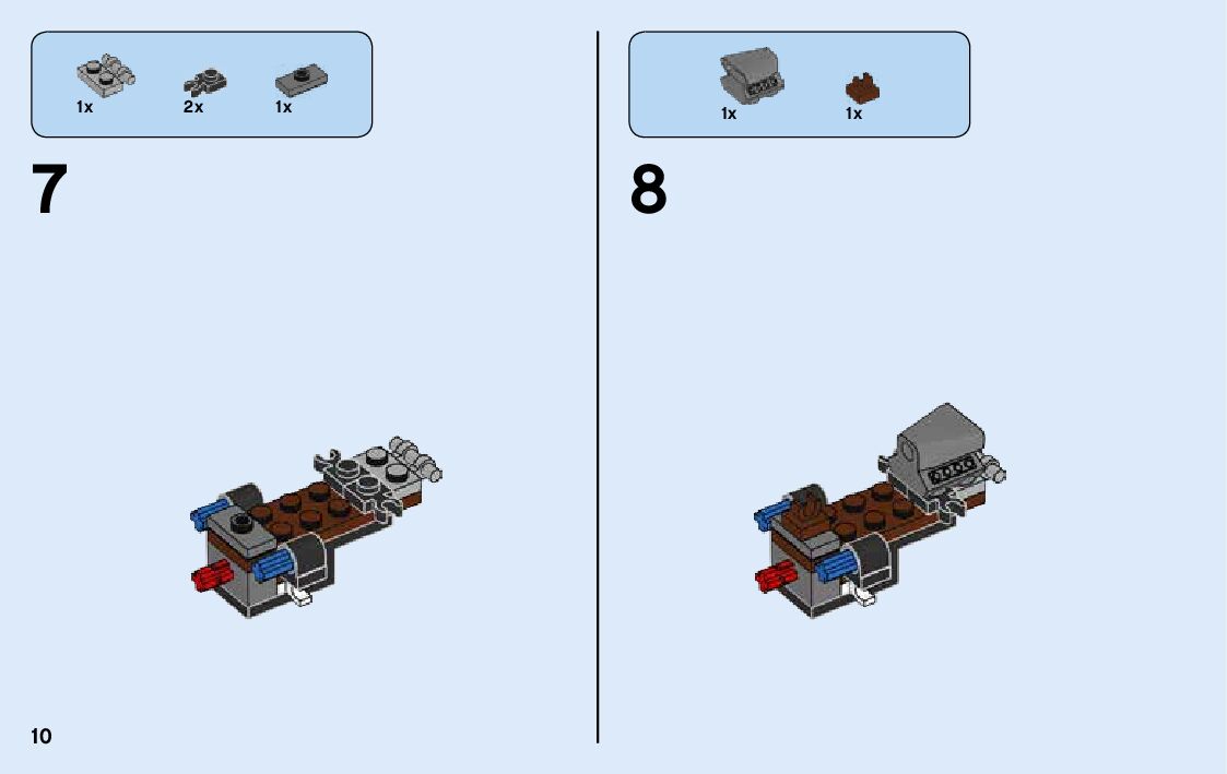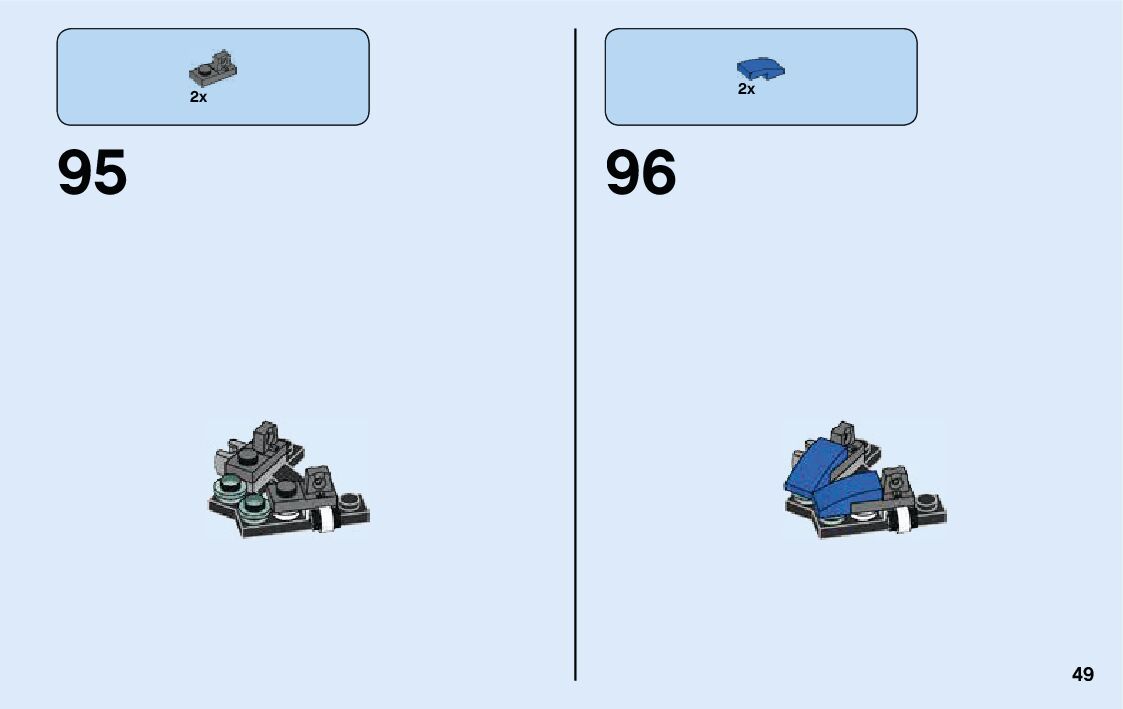 The assembly guide is prepared in a very understandable way for children and adult LEGO enthusiasts. A total of 100 picture galleries are shown, explaining the step-by-step construction stages for 2 different structures.