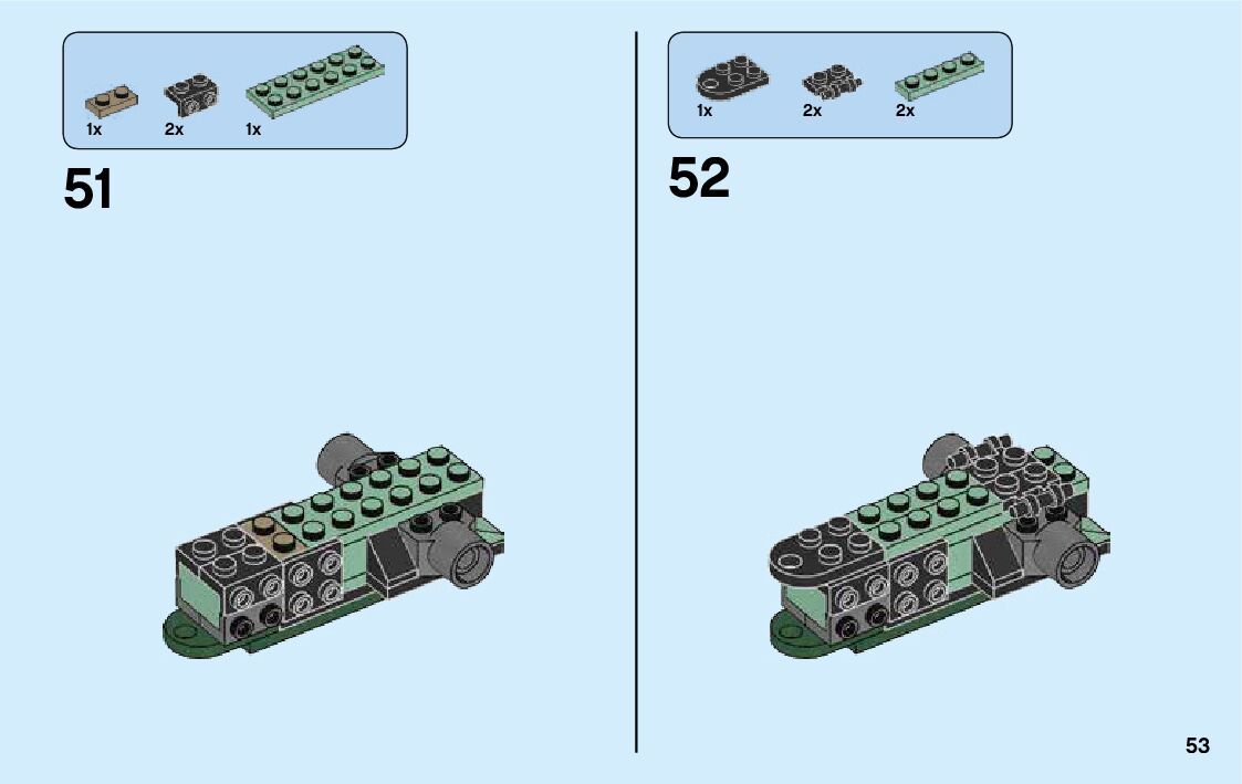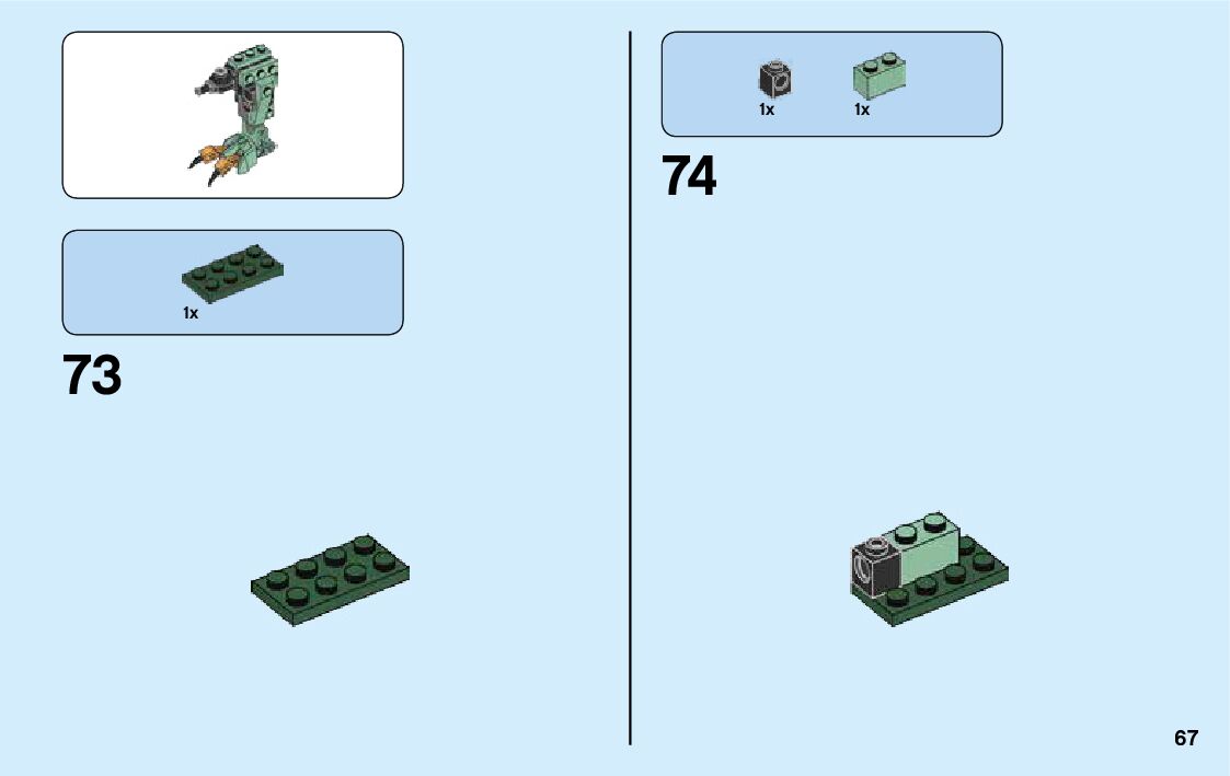 The assembly guide is prepared in a very understandable way for children and adult LEGO enthusiasts. A total of 740 picture galleries are shown, explaining the step-by-step construction stages for 2 different structures.