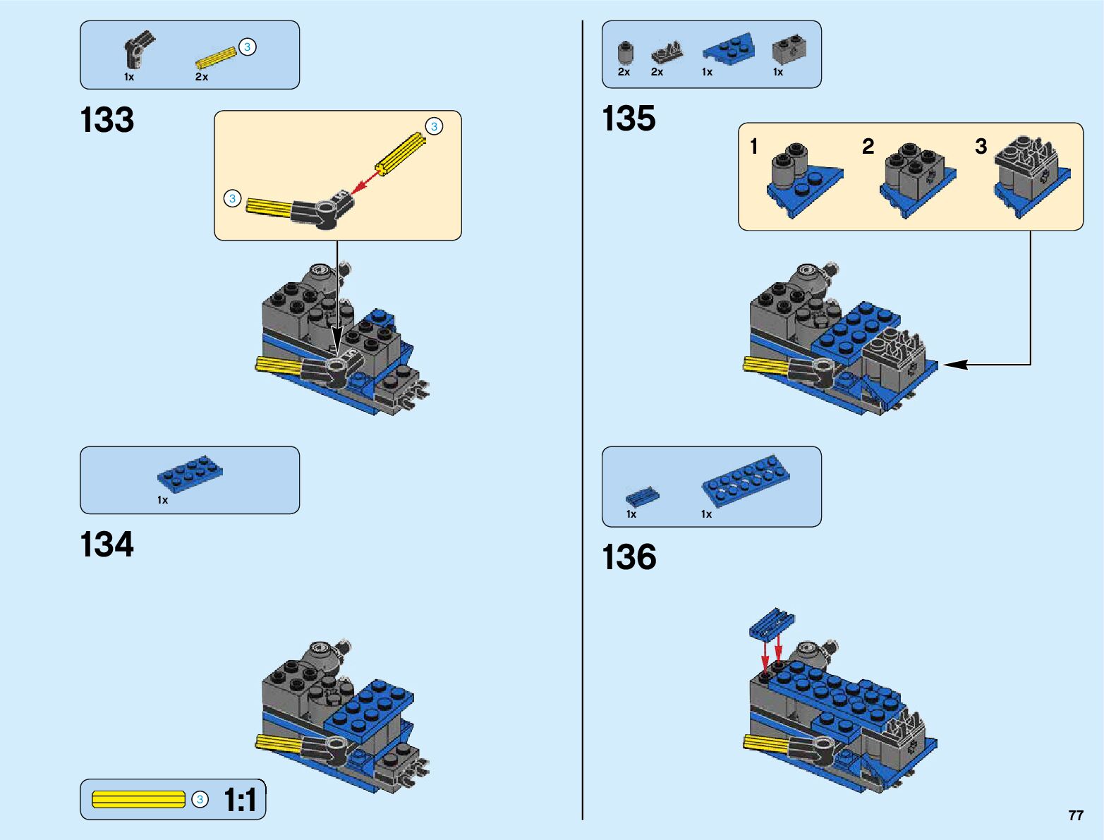 The assembly guide is prepared in a very understandable way for children and adult LEGO enthusiasts. A total of 600 picture galleries are shown, explaining the step-by-step construction stages for 1 different structures.
