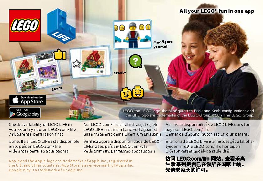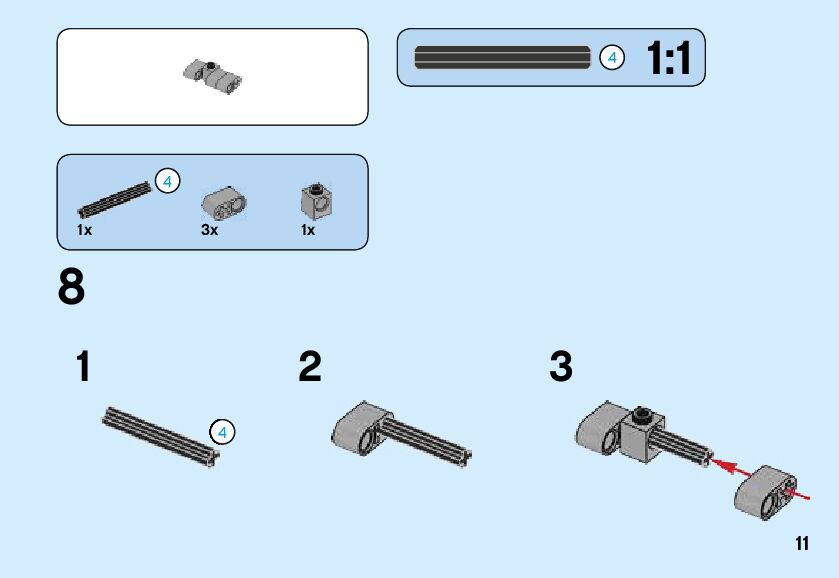The assembly guide is prepared in a very understandable way for children and adult LEGO enthusiasts. A total of 40 picture galleries are shown, explaining the step-by-step construction stages for 1 different structures.