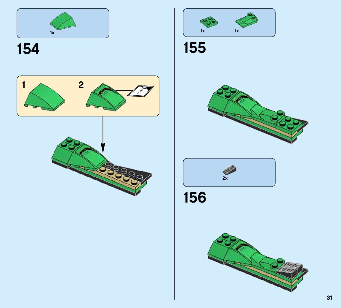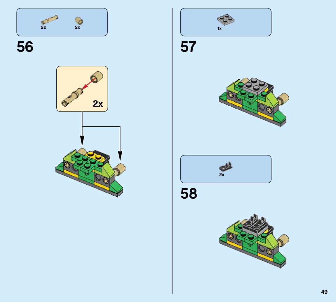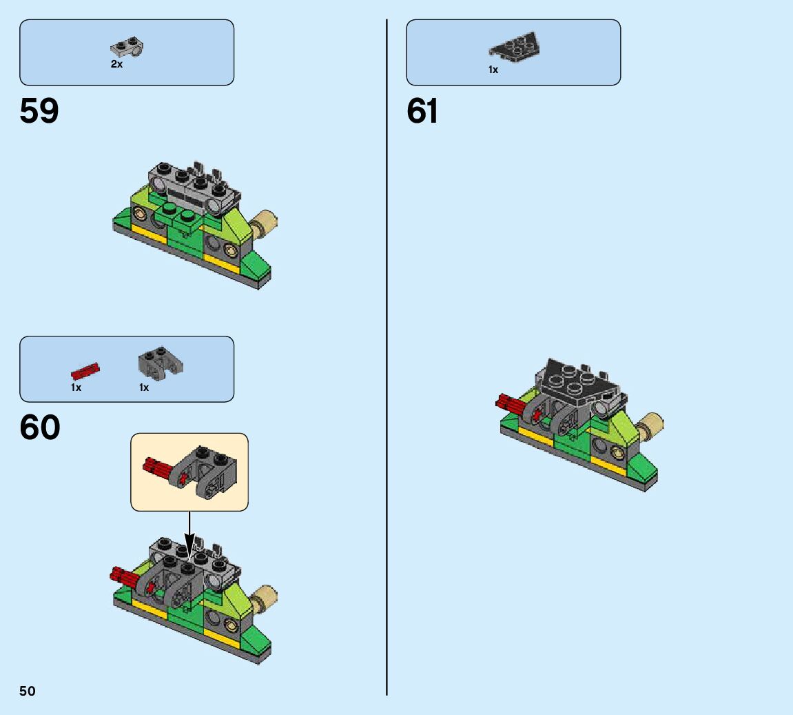 The assembly guide is prepared in a very understandable way for children and adult LEGO enthusiasts. A total of 124 picture galleries are shown, explaining the step-by-step construction stages for 2 different structures.